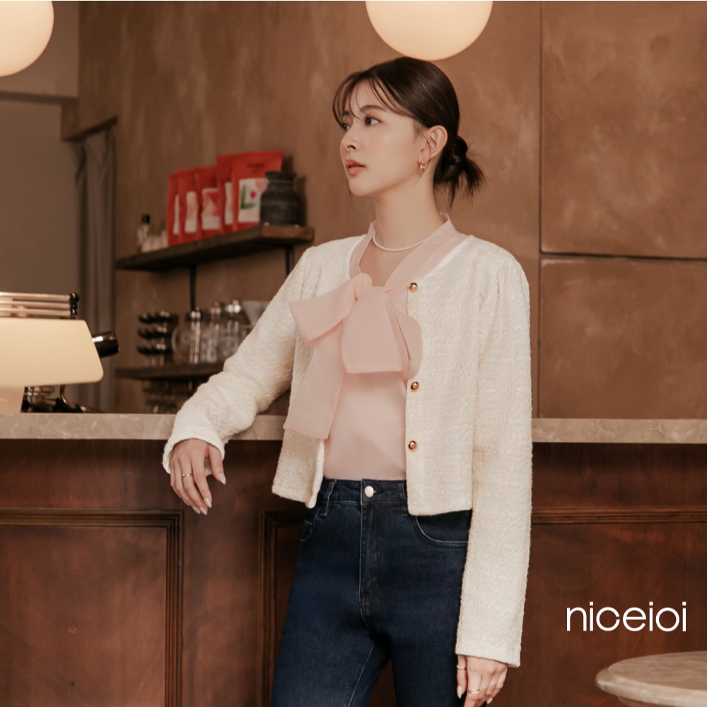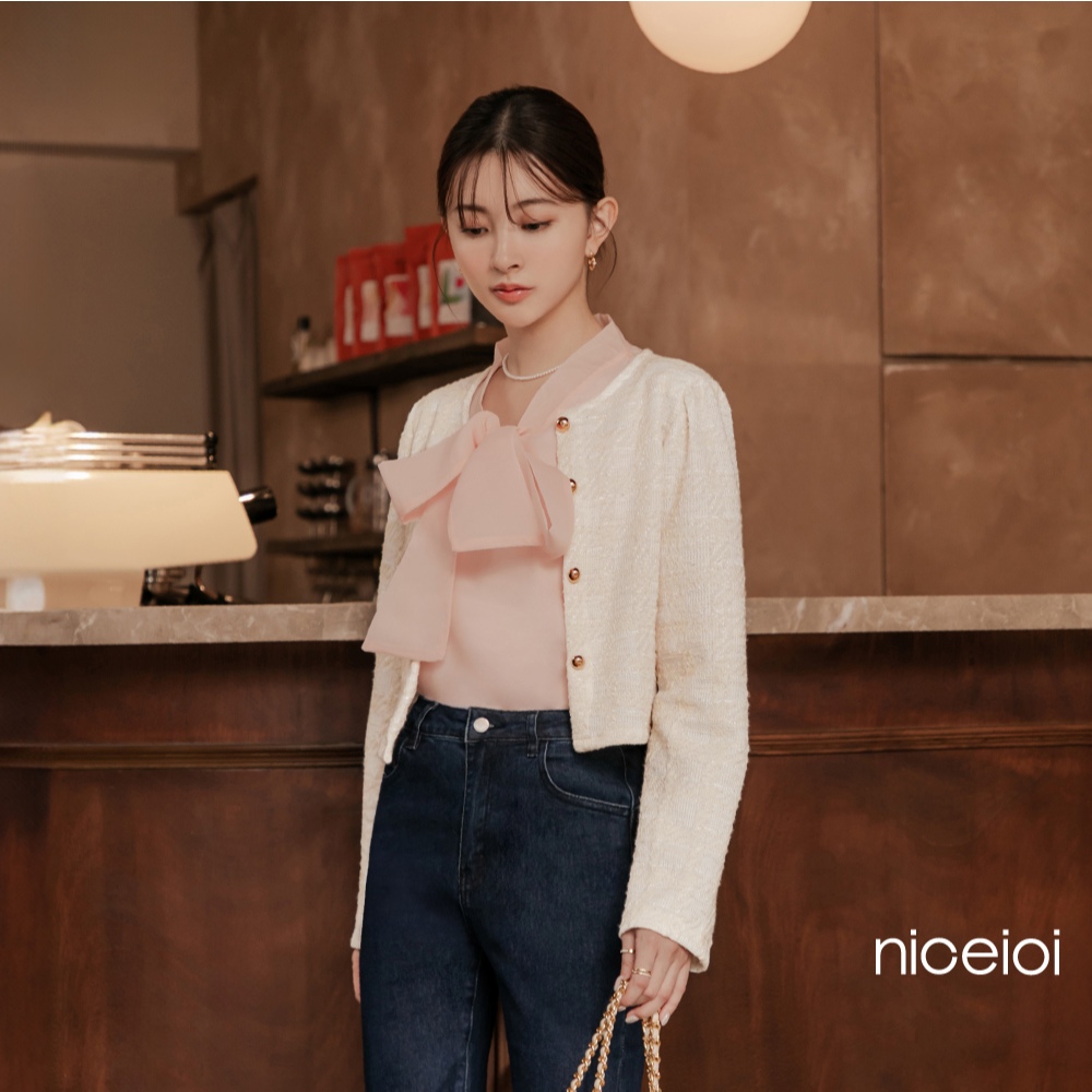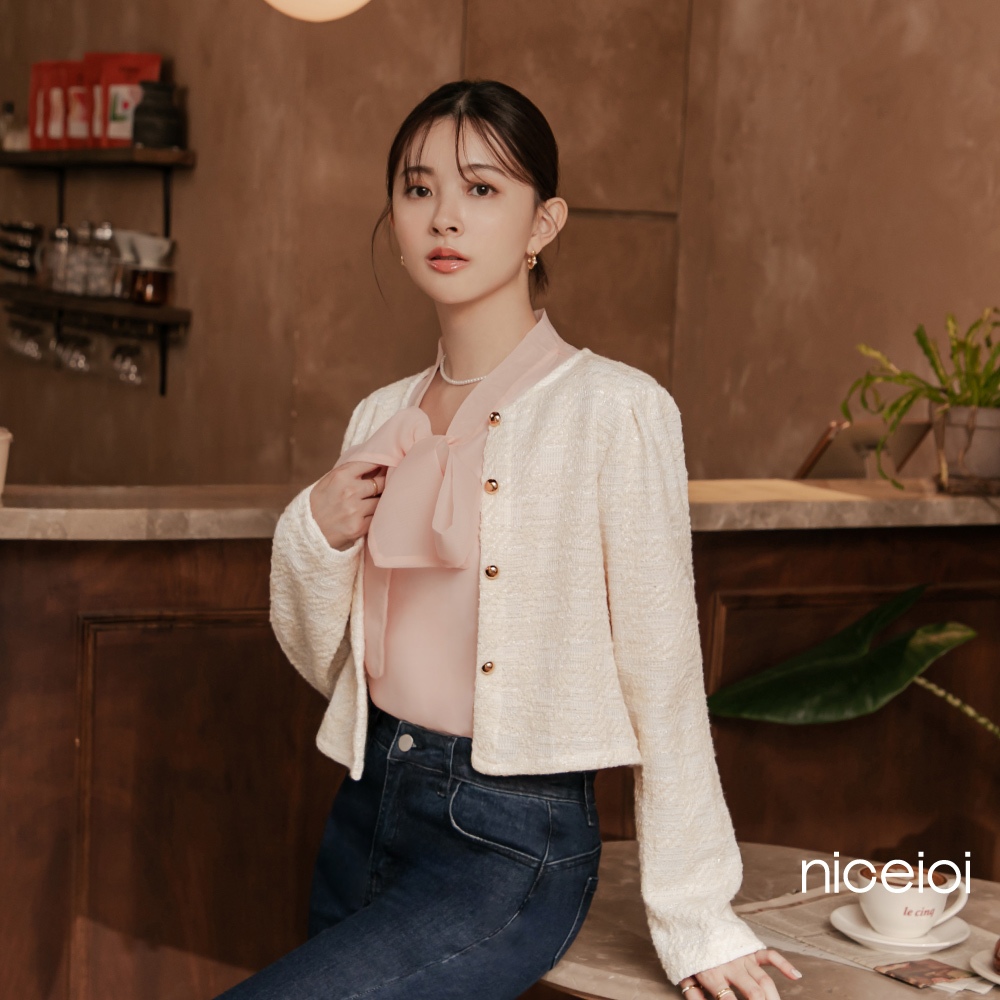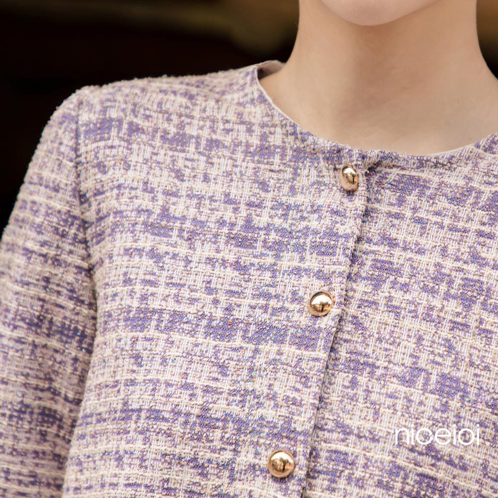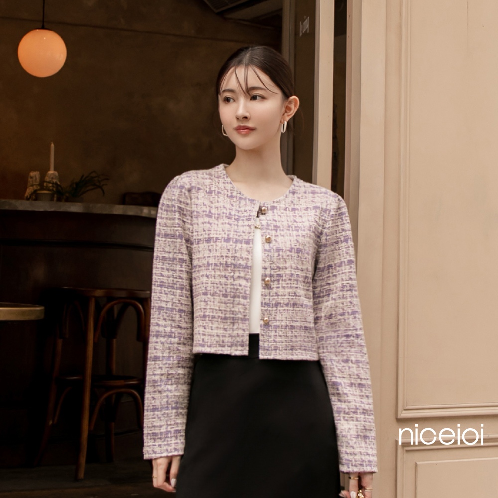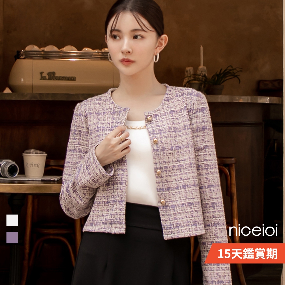 niceioi【特惠】小香風外套 短版外套 無領外套 粉色 [浪漫輕雅小香金釦短版外套] 女裝小香風短版外套-米白色,F|小香風短版外套-紫色,FOthersniceioi 官方旗艦店