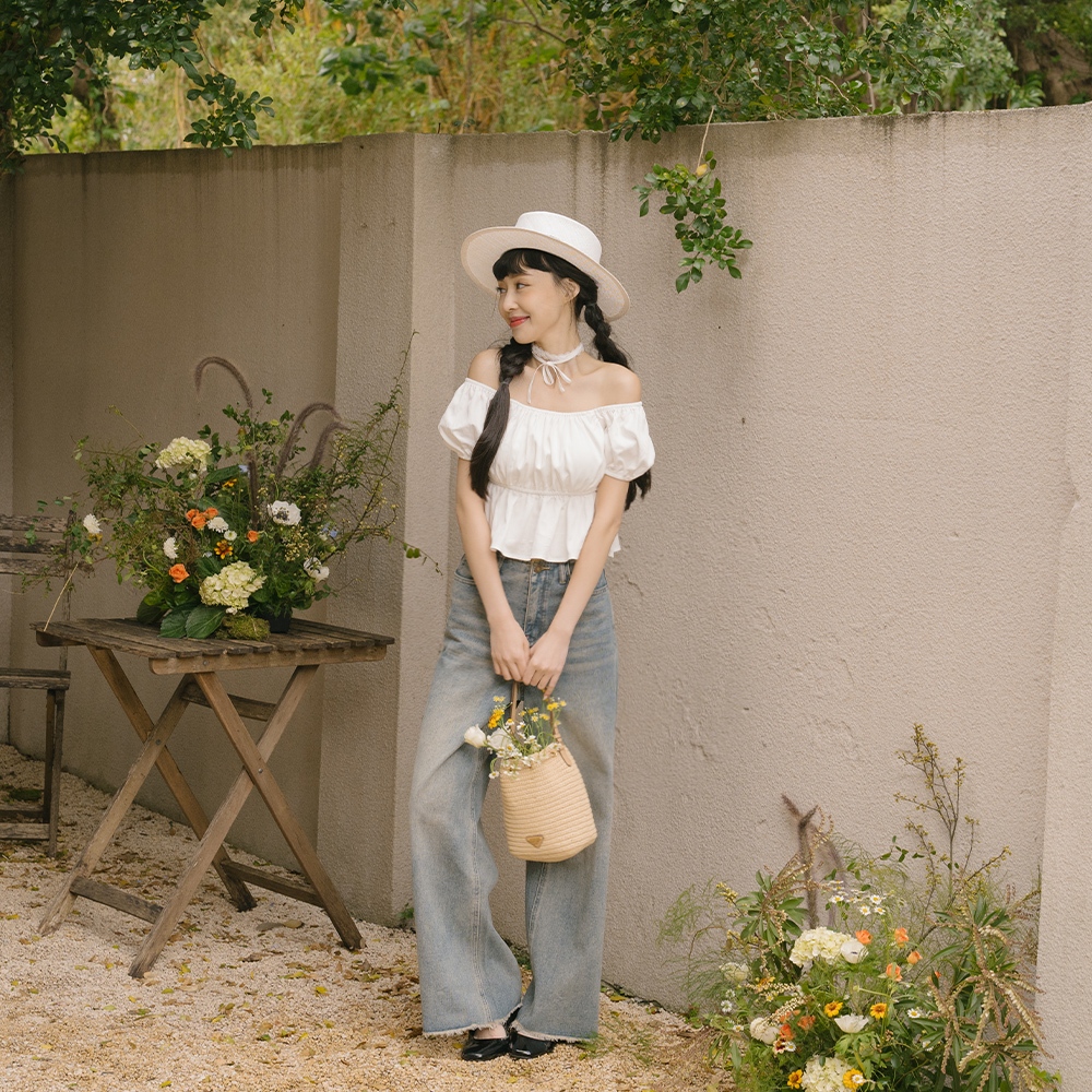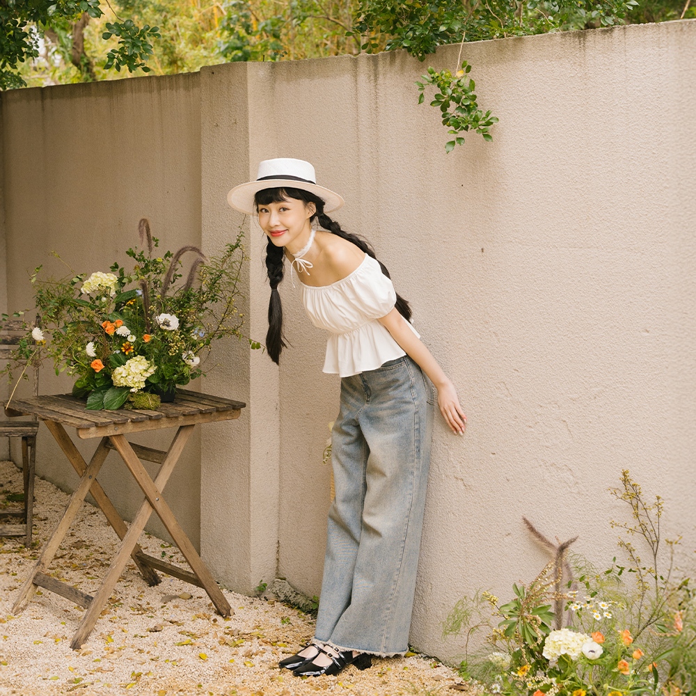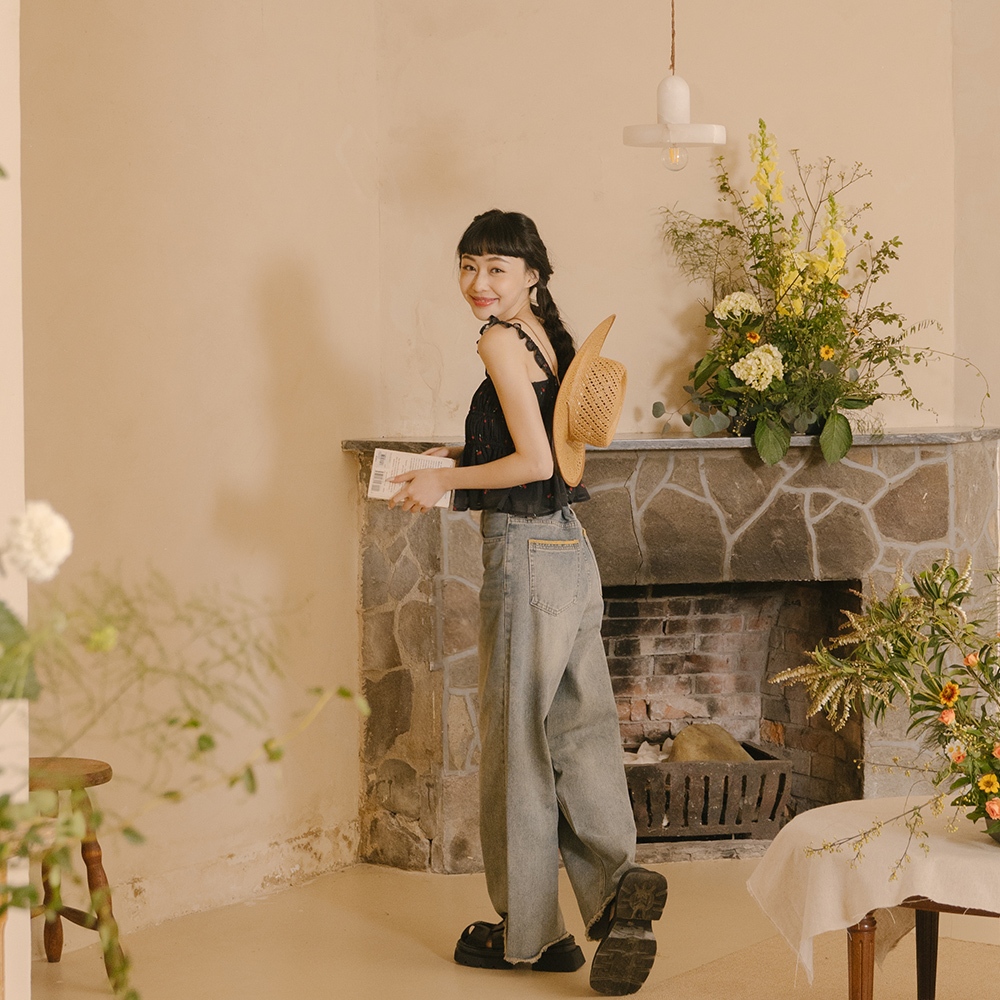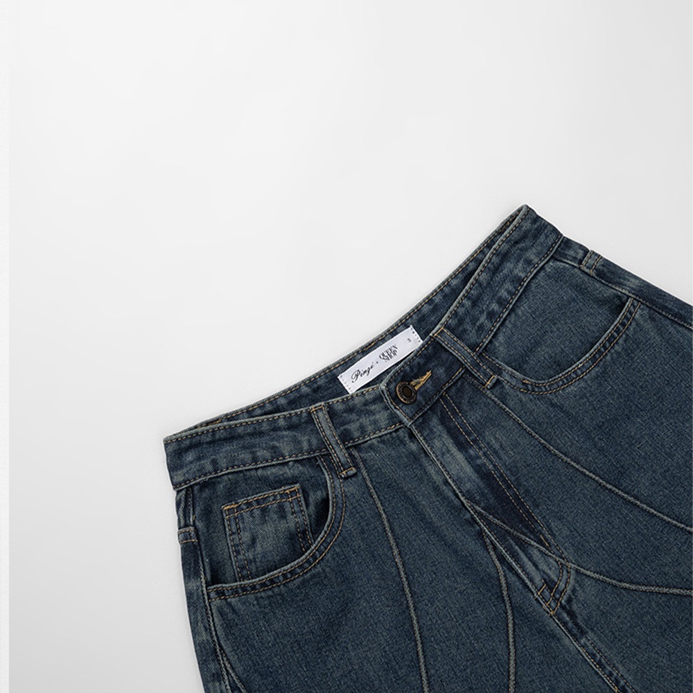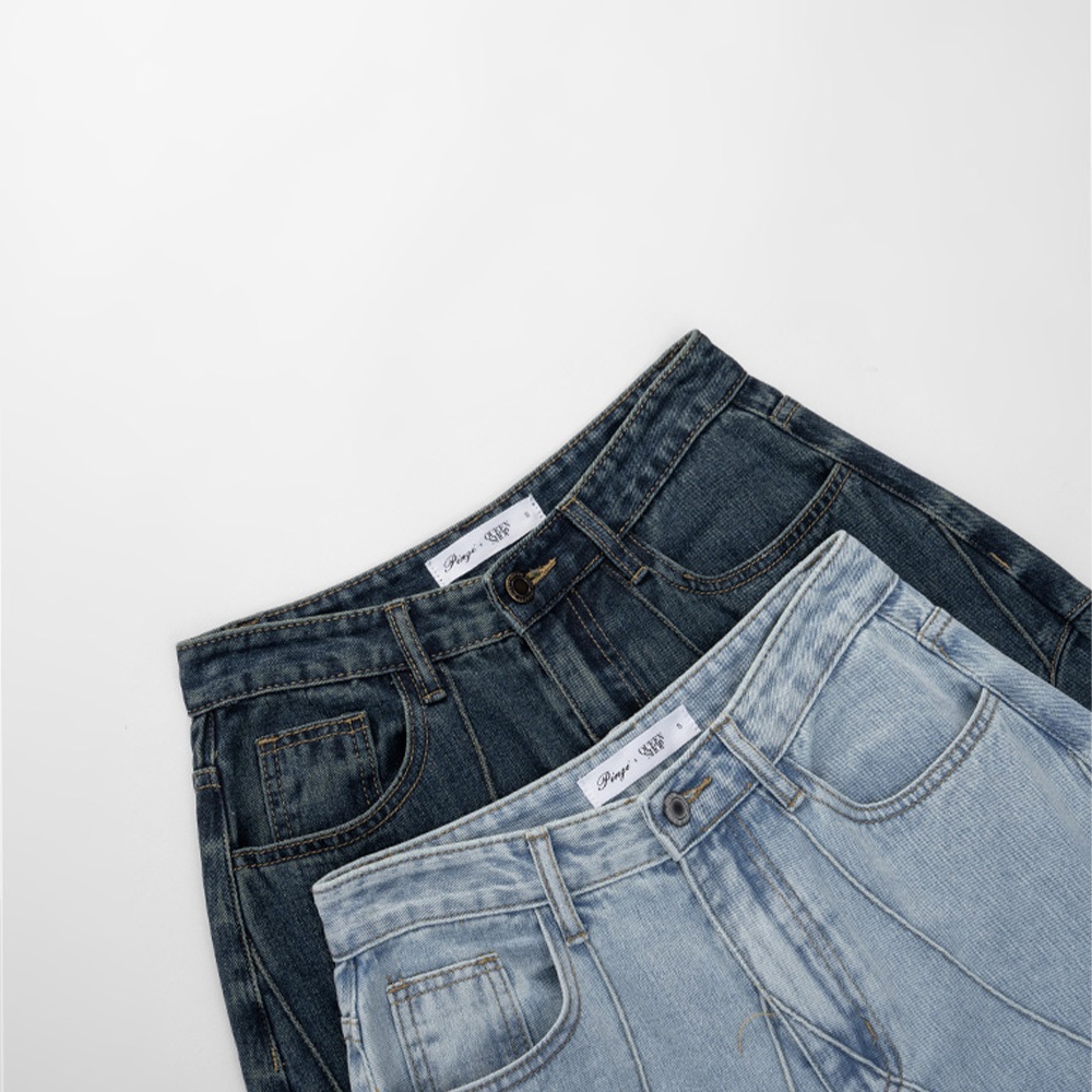 QUEENSHOP_ S 品子聯名 剪接設計繭型牛仔長褲-淺藍 S/M/L 現+預 【04011833】淺藍S|淺藍M|淺藍LQUEENSHOP