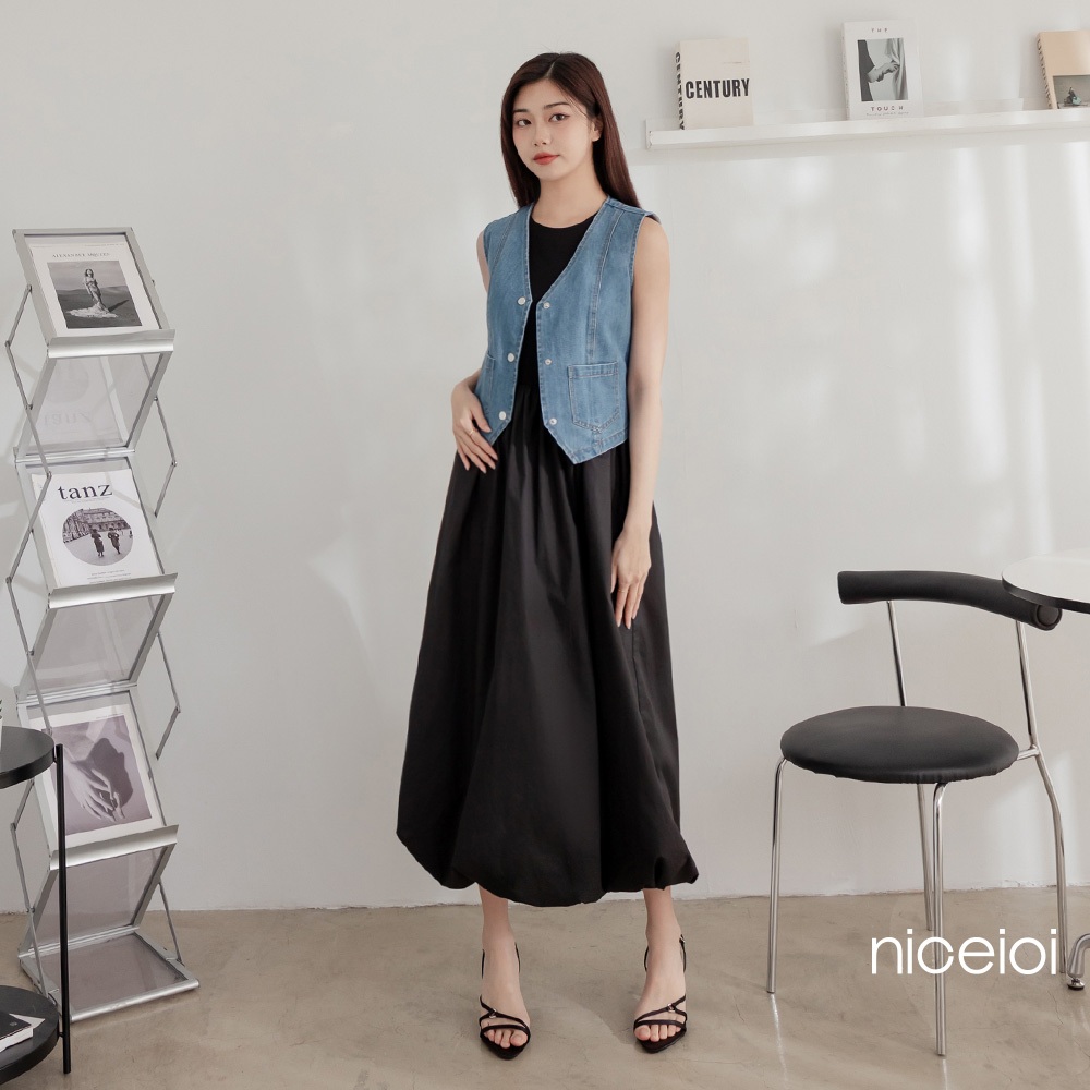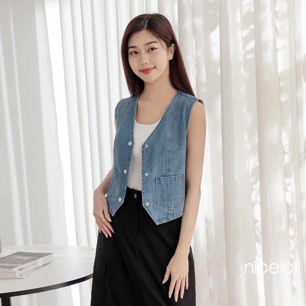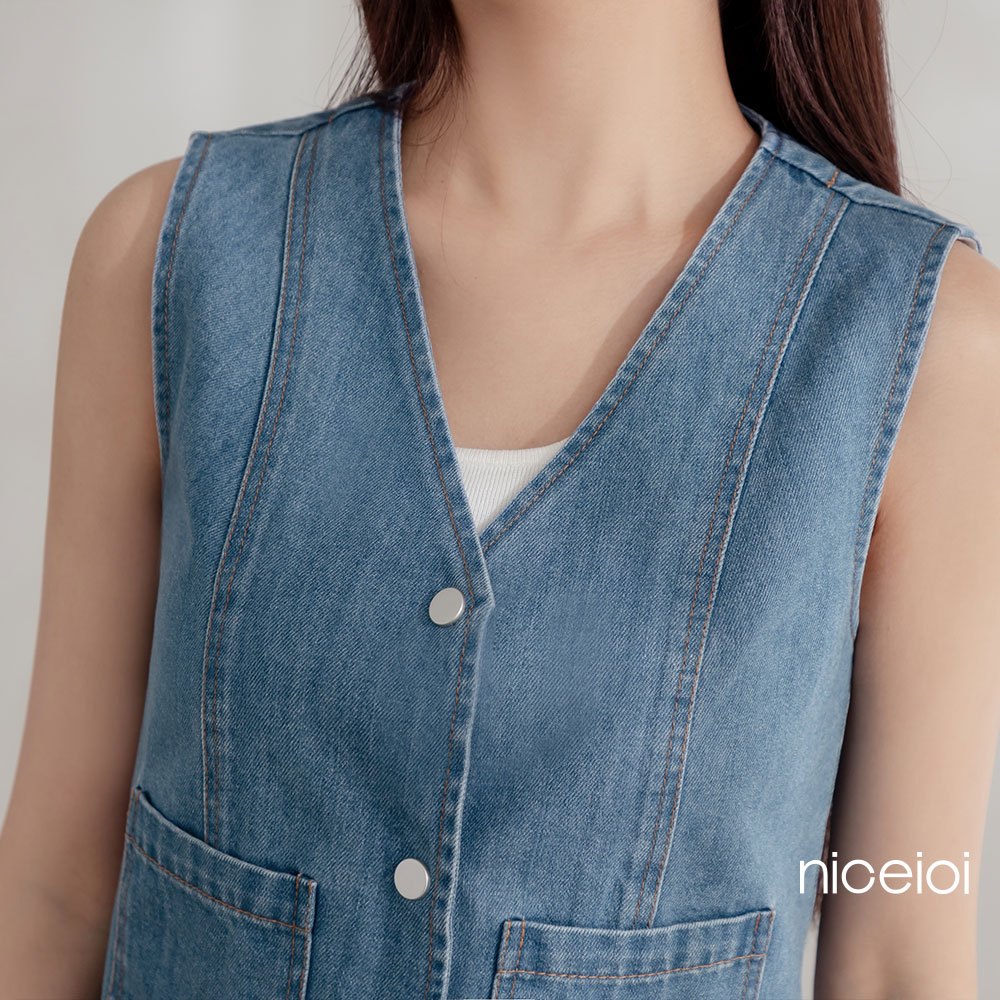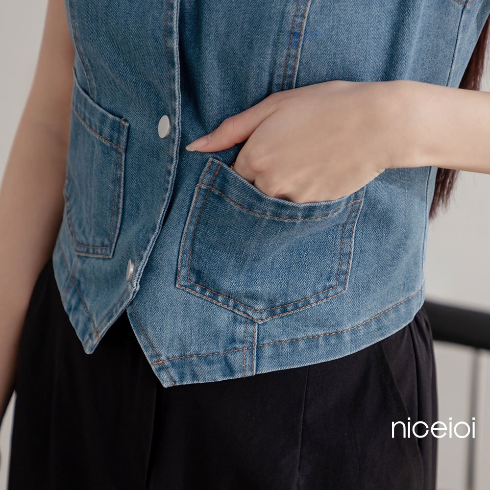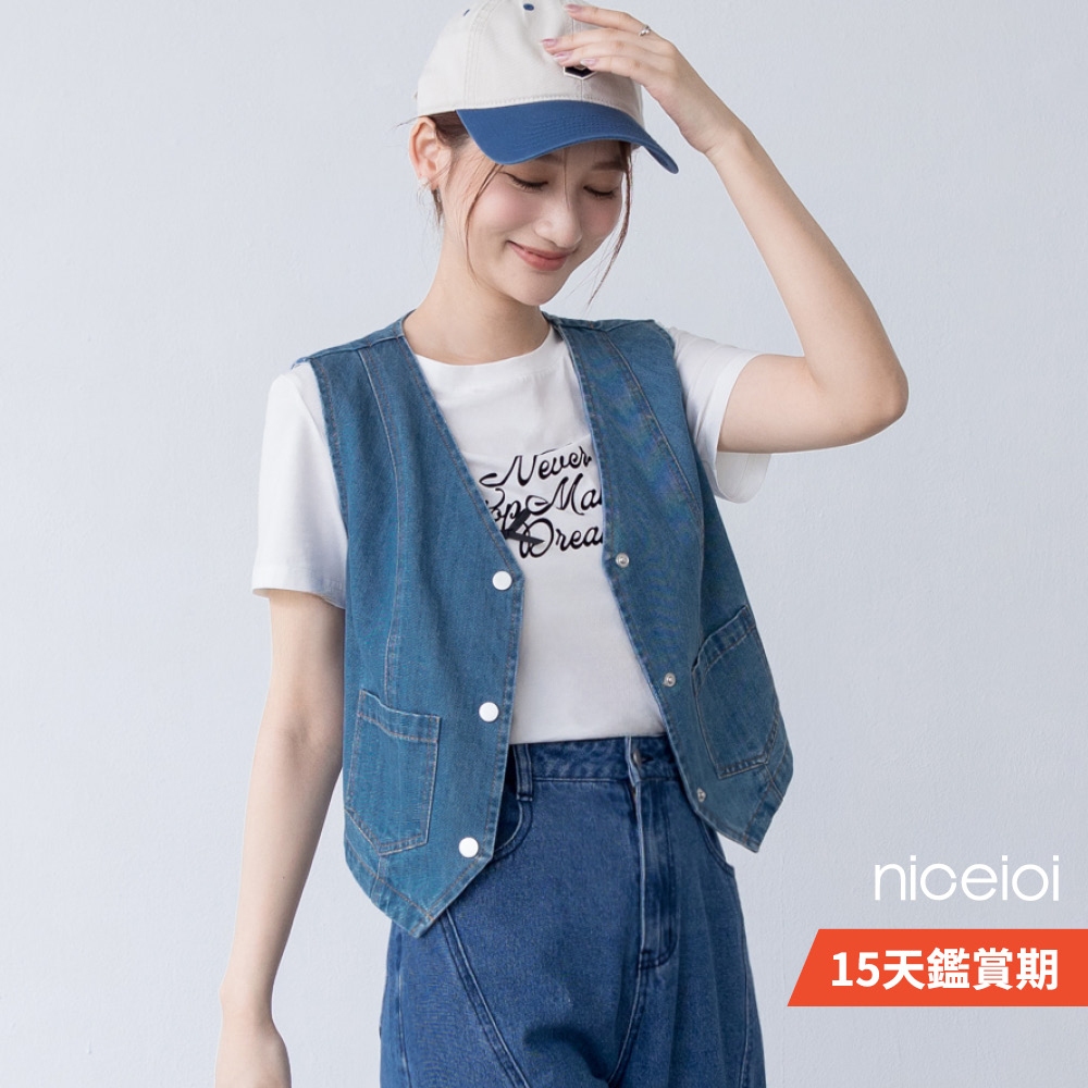 niceioi 酷甜女孩丹寧排釦背心 女裝藍,S|藍,M|藍,L|藍,XLOthersniceioi 官方旗艦店