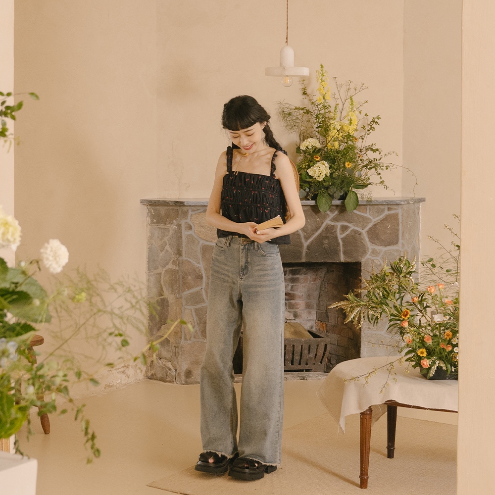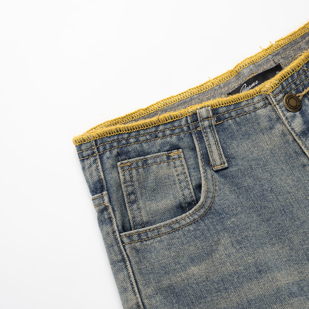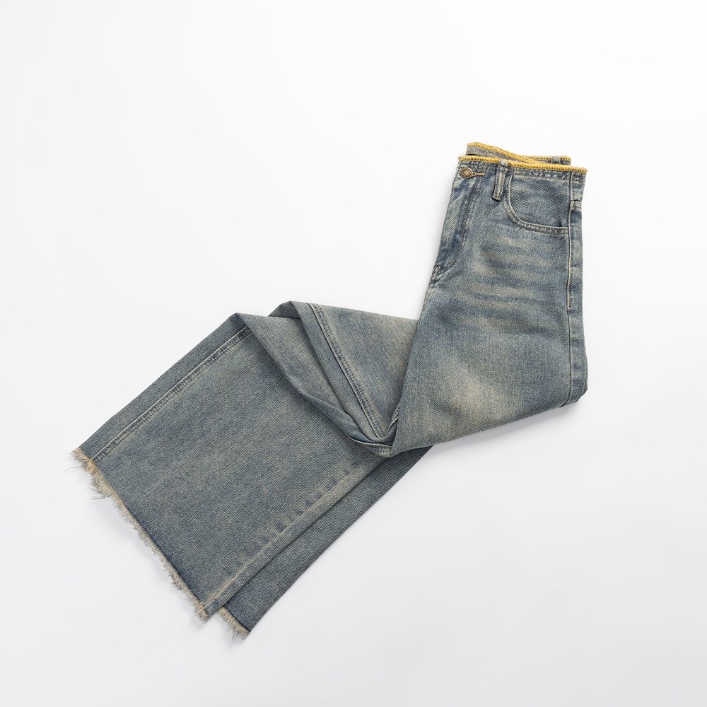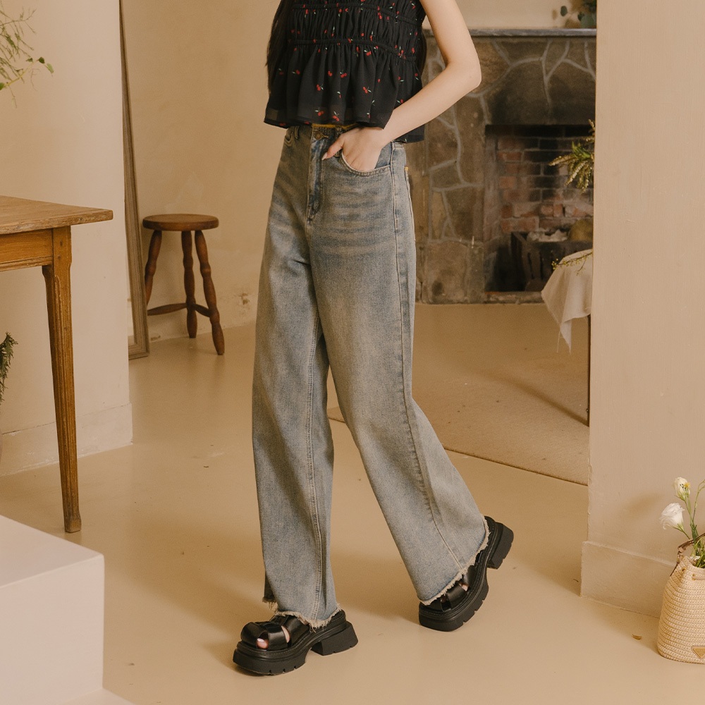 QUEENSHOP_ S 女裝 柏心聯名 撞色鬚邊刷色低腰牛仔褲 S/M/L 現+預 【04011815】S|M|LQUEENSHOP
