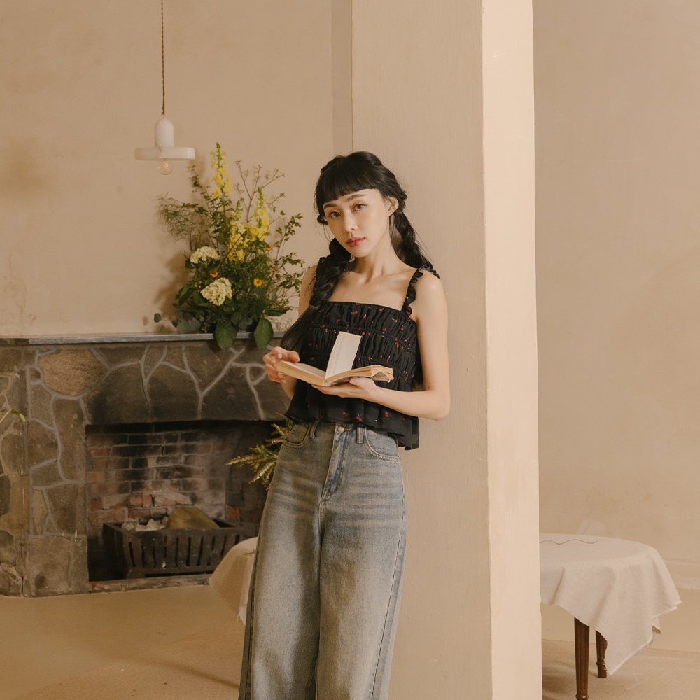 QUEENSHOP_ S 女裝 前雙綁帶格紋荷葉造型外搭背心 兩色售 現+預 【01098410】