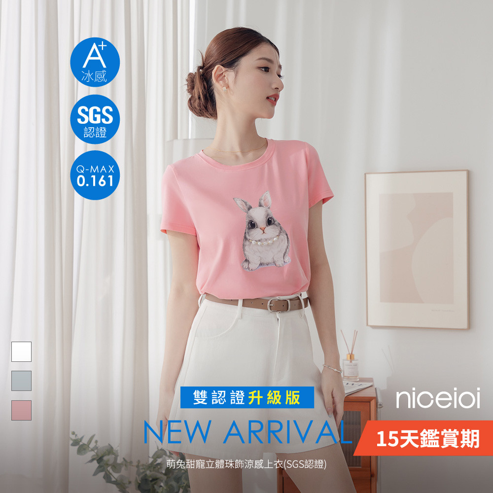 niceioi 涼感上衣 短袖 圓領上衣 粉色 [萌兔甜寵立體珠飾涼感上衣] (SGS認證) 冰瓷棉 印花圖T 女裝涼感上衣-藍,L|涼感上衣-白,XL|涼感上衣-粉,S|涼感上衣-粉,XL|涼感上衣-藍,S|涼感上衣-藍,M|涼感上衣-藍,XL|涼感上衣-白,S|涼感上衣-白,M|涼感上衣-白,L|涼感上衣-粉,M|涼感上衣-粉,LT-shirtsniceioi 官方旗艦店