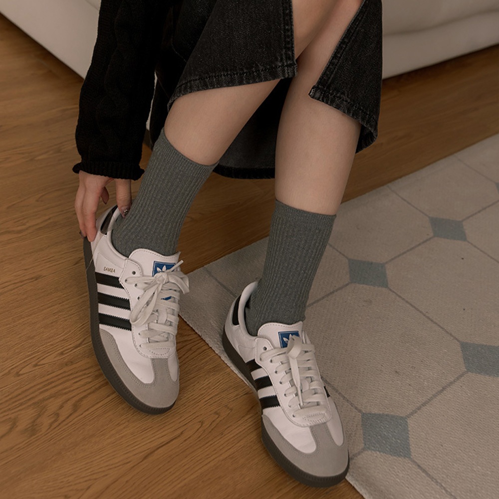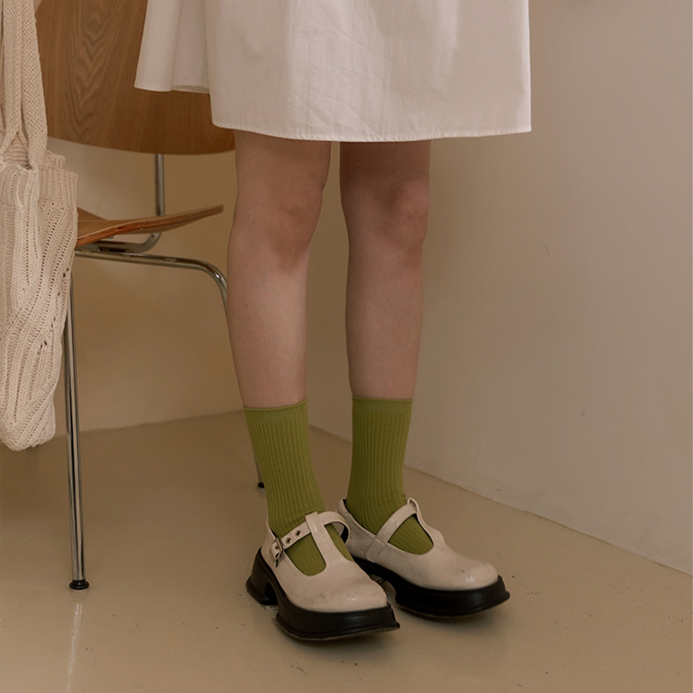 QUEENSHOP_ V 女裝 正韓 多色螺紋素面造型中筒襪 十色售 現+預 【07110527】黑|灰|白|粉|藍|杏|芥黃|駝|淺紫|淺綠SocksQUEENSHOP