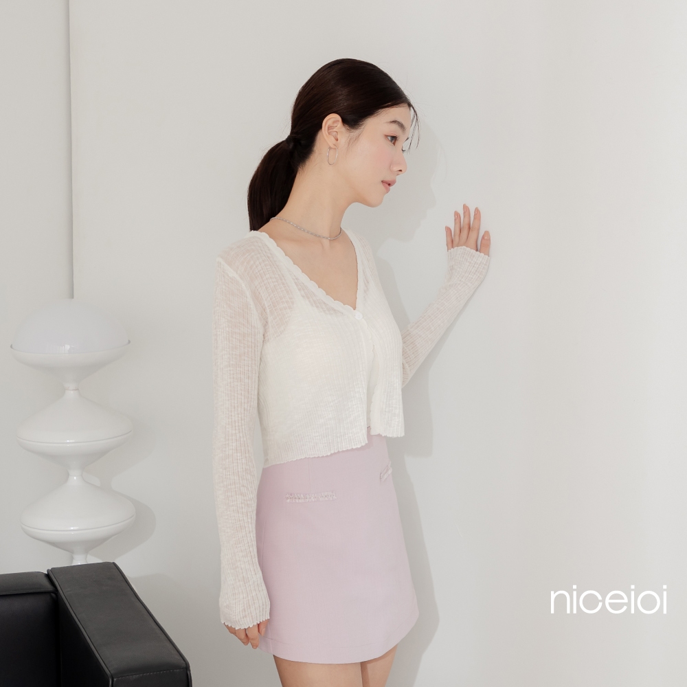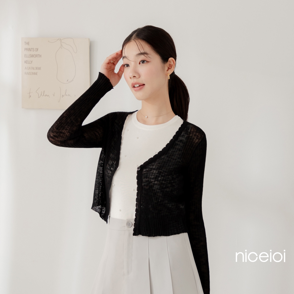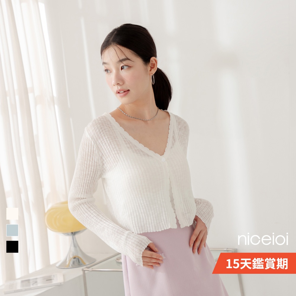 niceioi【特惠】針織外套 外套 短版外套 白色 [韓系花邊短版直坑條針織外套] 女裝白,F|黑,F|藍,FOthersniceioi 官方旗艦店