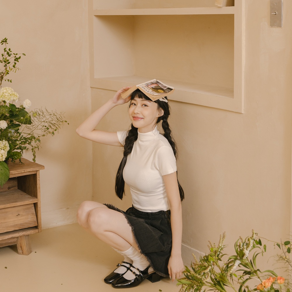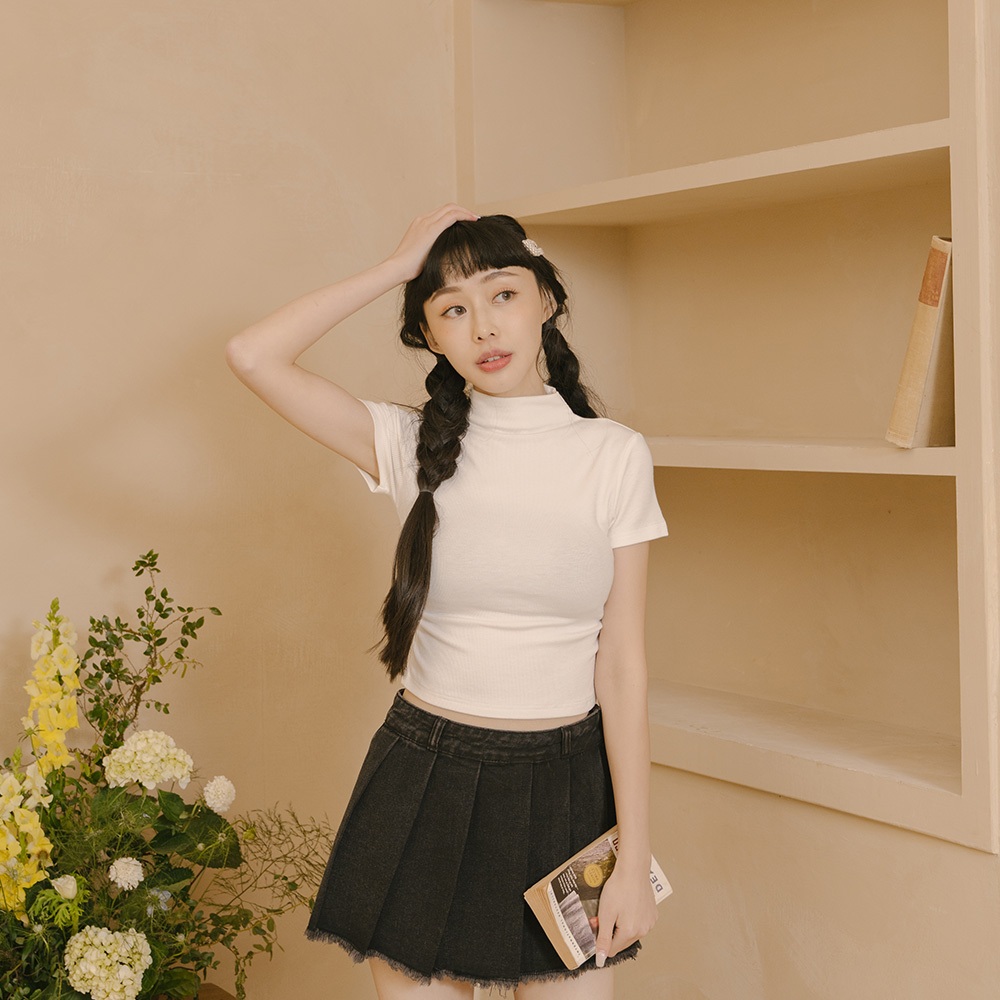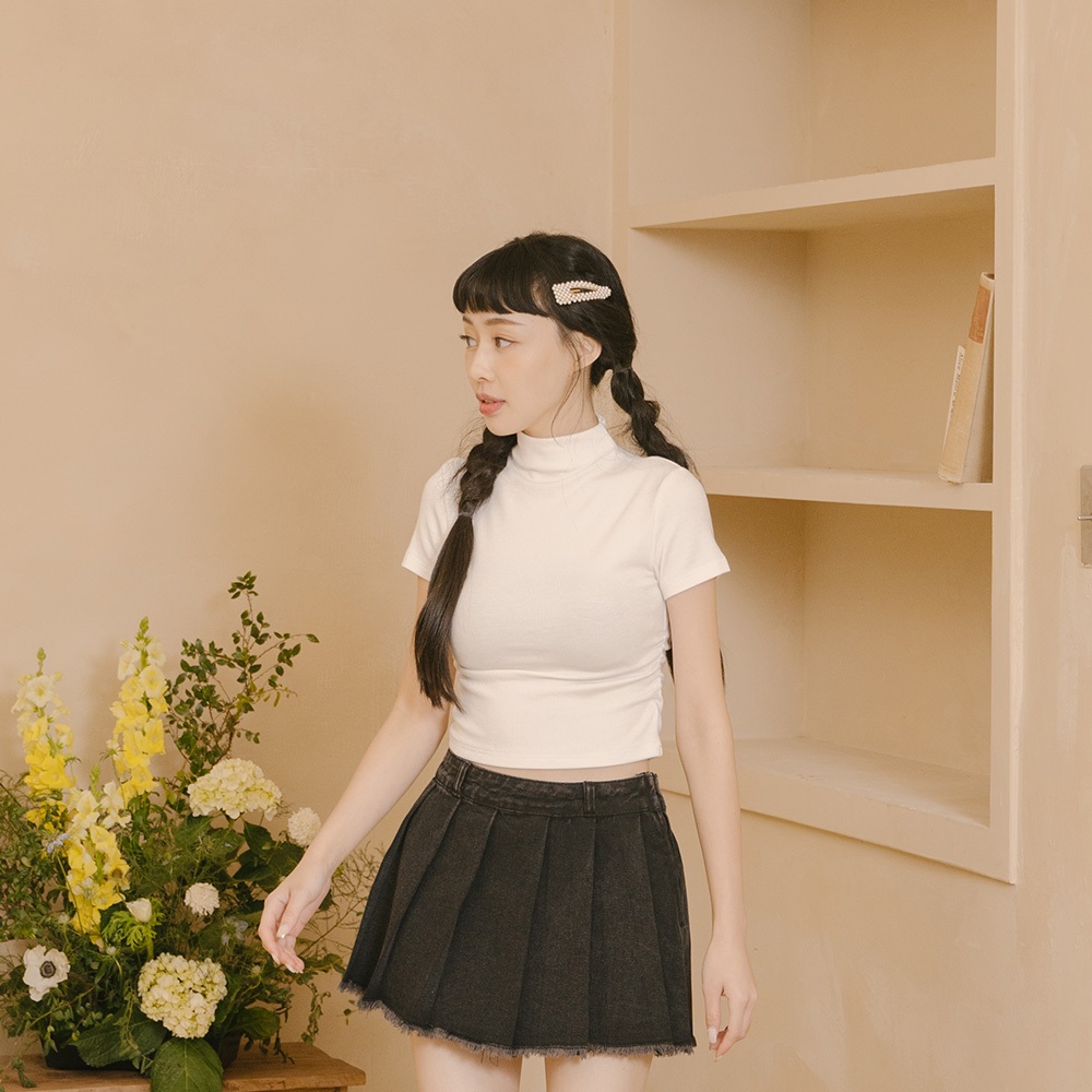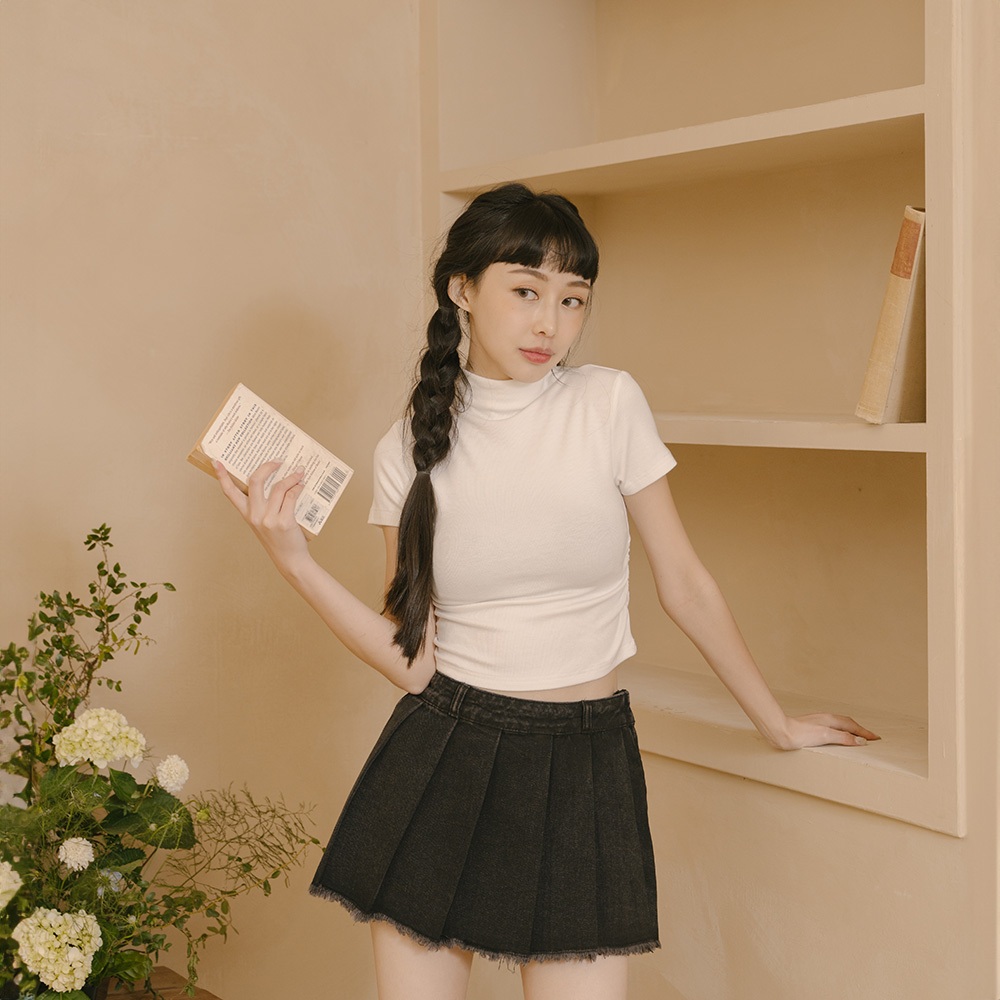 QUEENSHOP_ S 女裝 短袖 柏心聯名 微高領側抓皺短版合身上衣-白 S/M 現+預 【01098897】白S|白MOthersQUEENSHOP