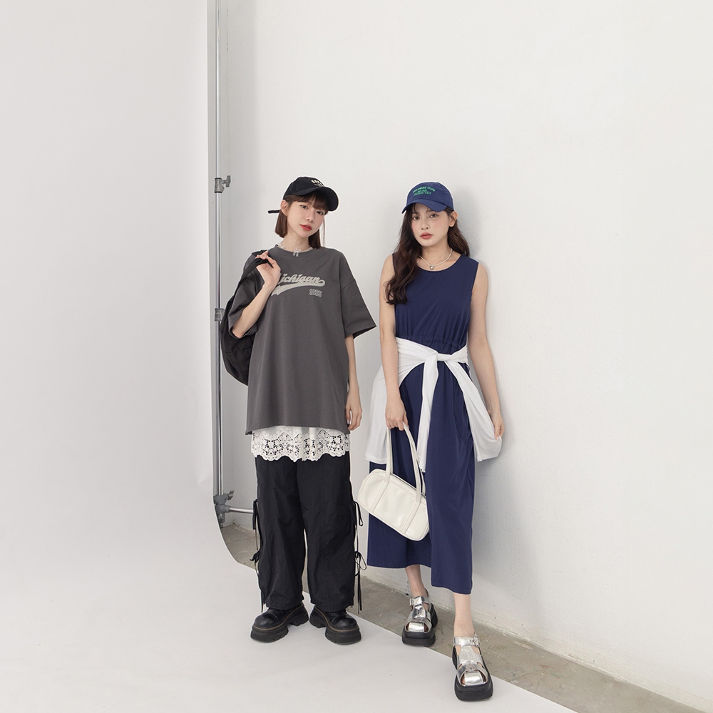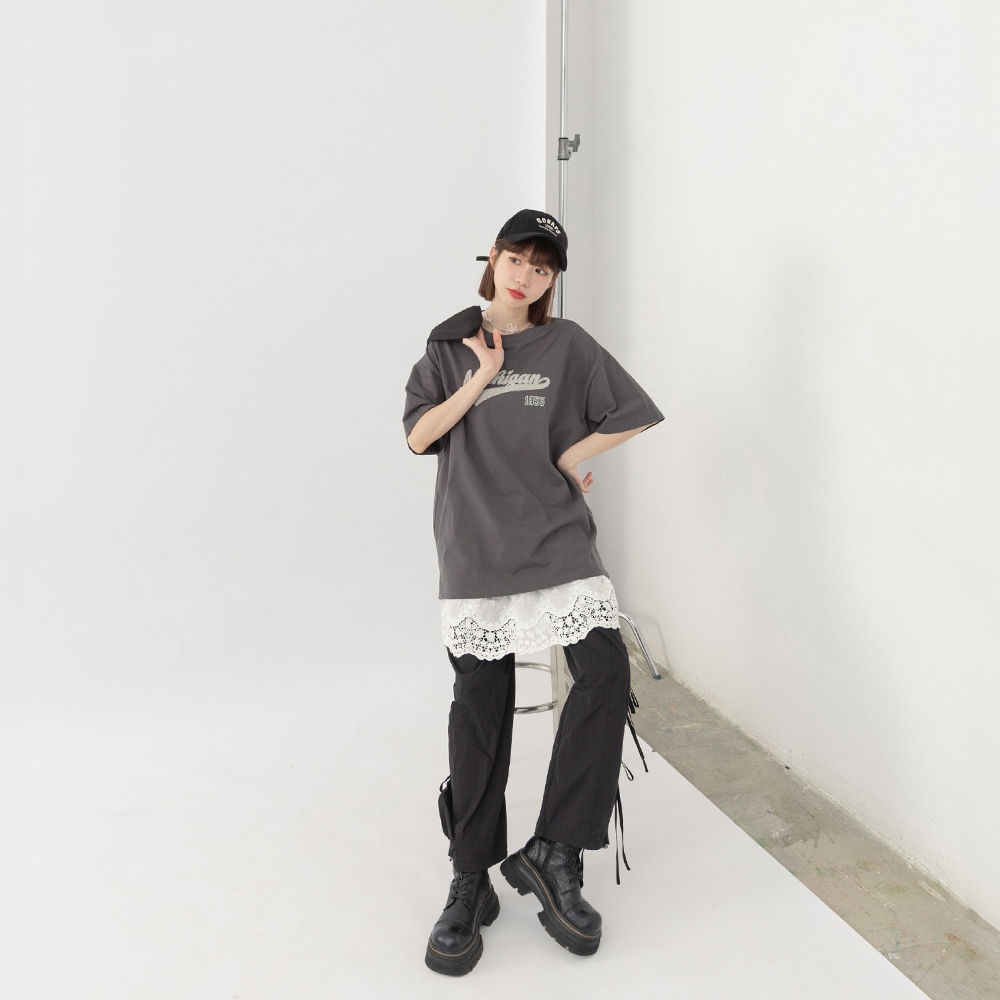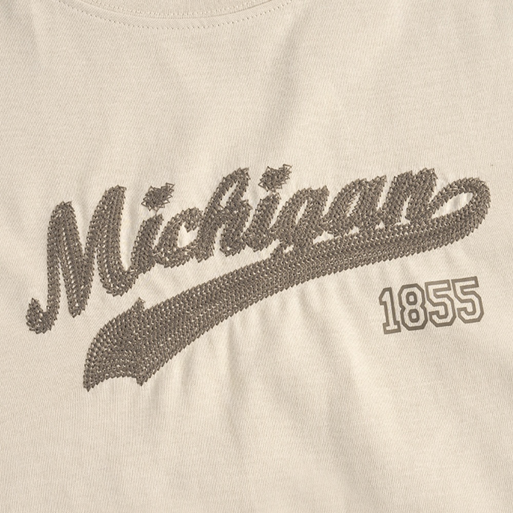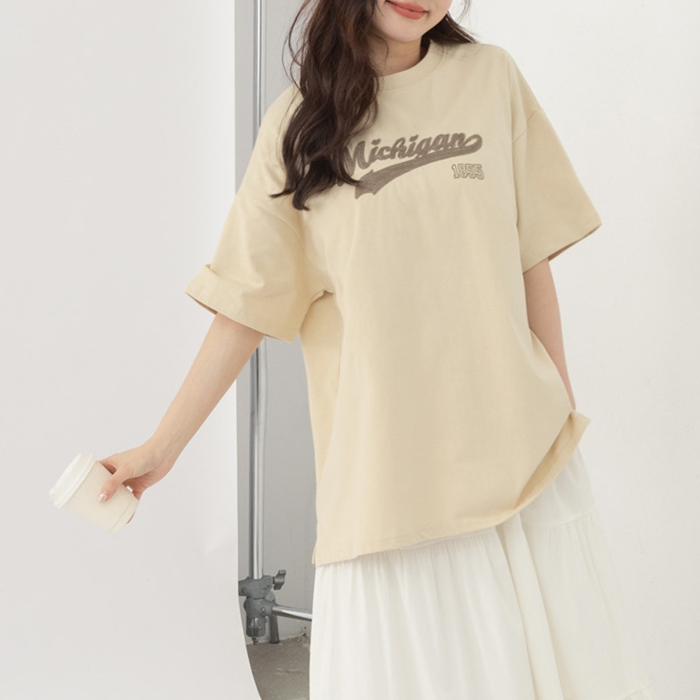 QUEENSHOP_ S 女裝 短袖 美式1855刺繡字短袖上衣 兩色售 現+預 【01190196】深灰|卡其T-shirtsQUEENSHOP