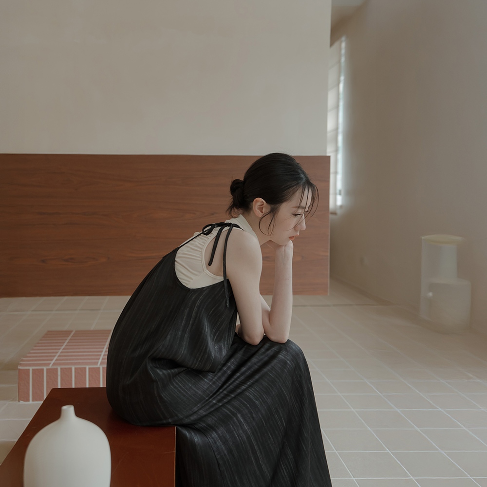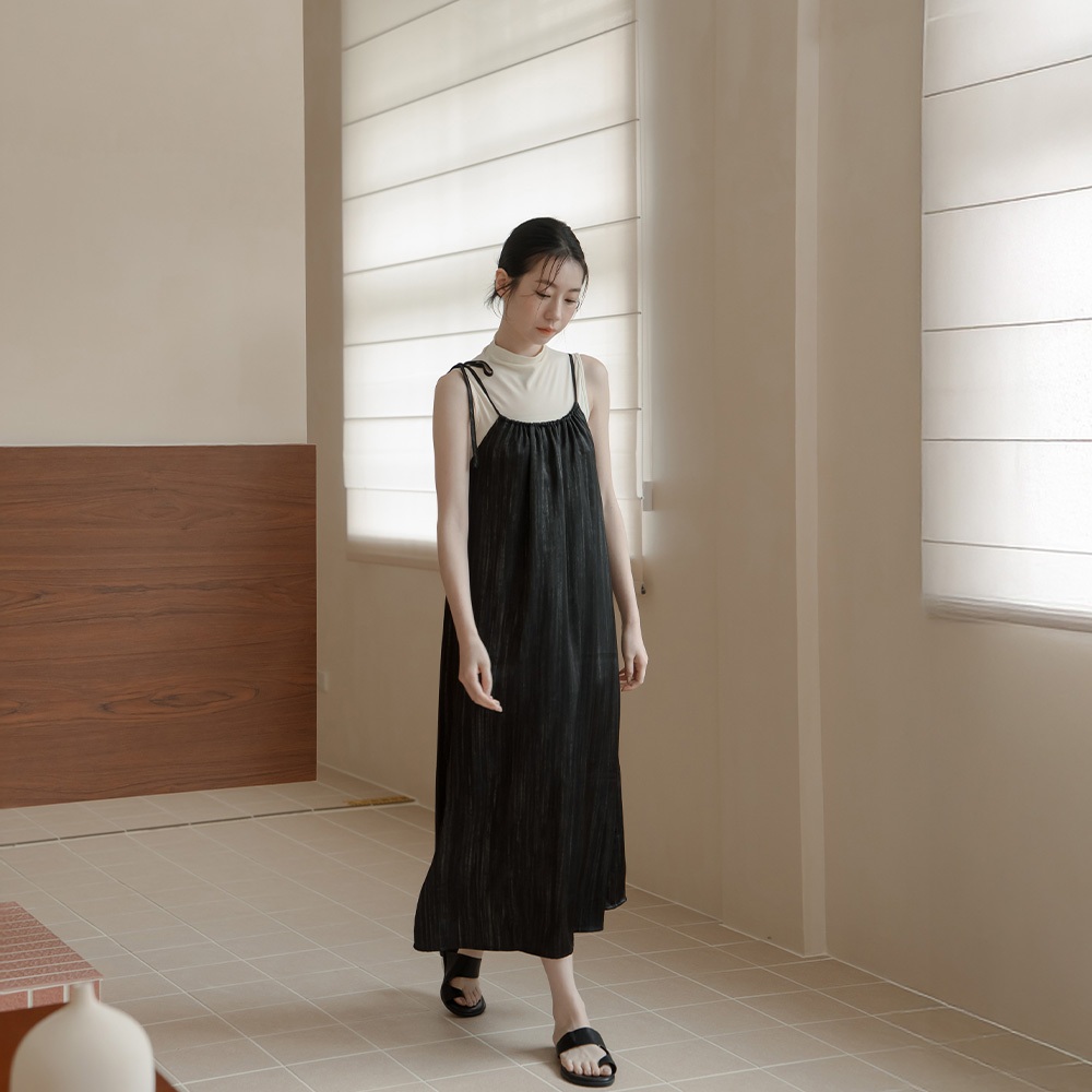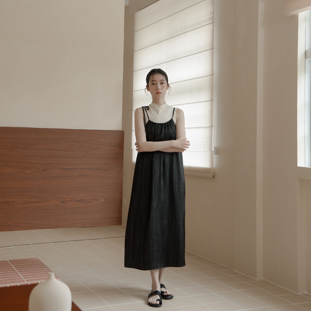 QUEENSHOP_ S 女裝 光澤暈染單綁帶細肩長洋裝-黑 現+預 【01087062】黑QUEENSHOP
