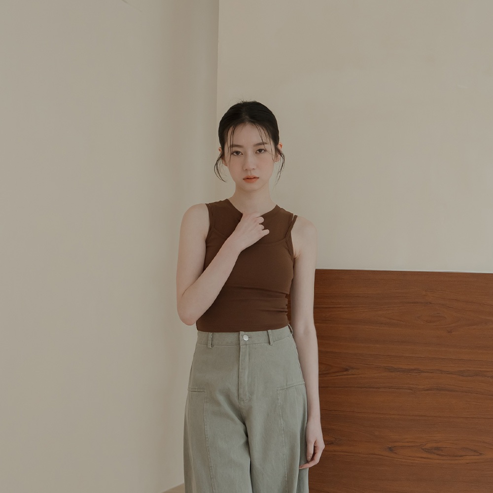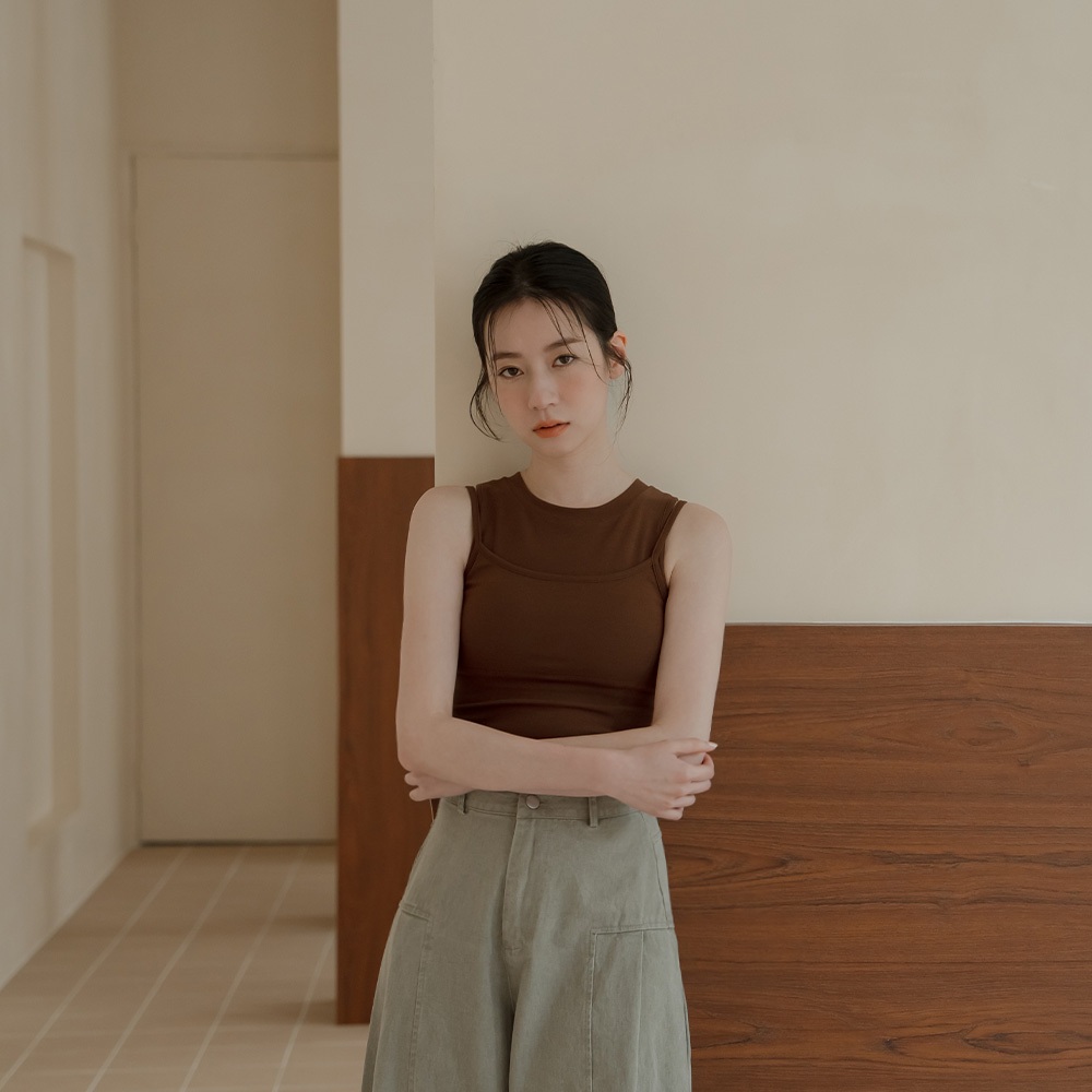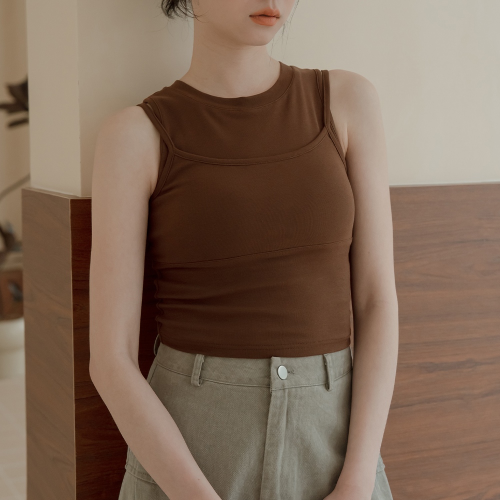 QUEENSHOP_ S 女裝 質感假兩件削肩Bra Top背心-咖啡 現+預 【01041906】咖啡Tanks & CamisolesQUEENSHOP