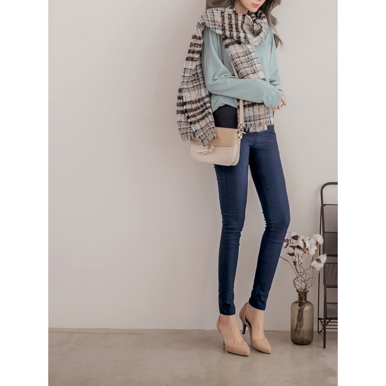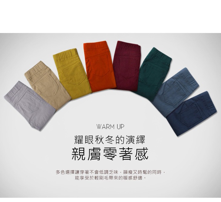 OB嚴選 腰鬆緊輕刷毛彈力窄管色褲 《BA1154》(寶藍/牛藍/深藍/紫咖/卡其/芥黃)