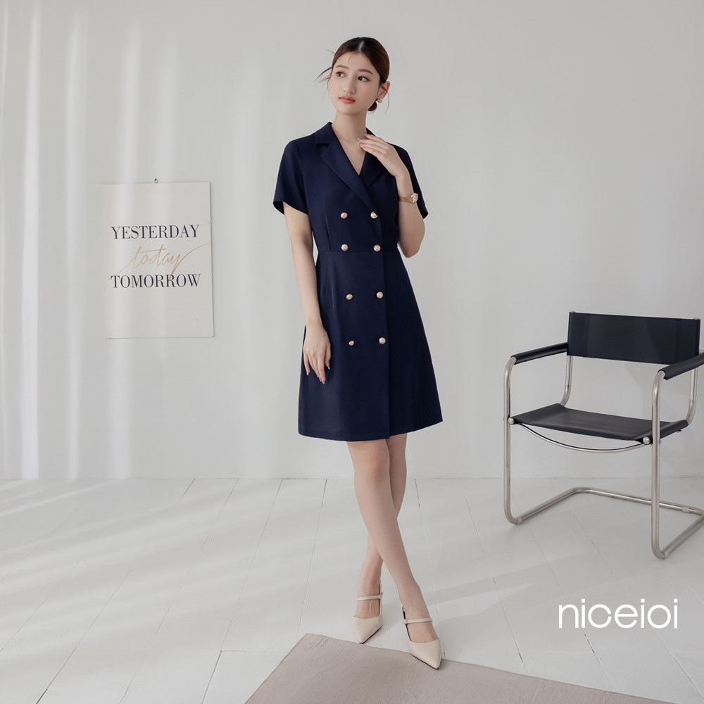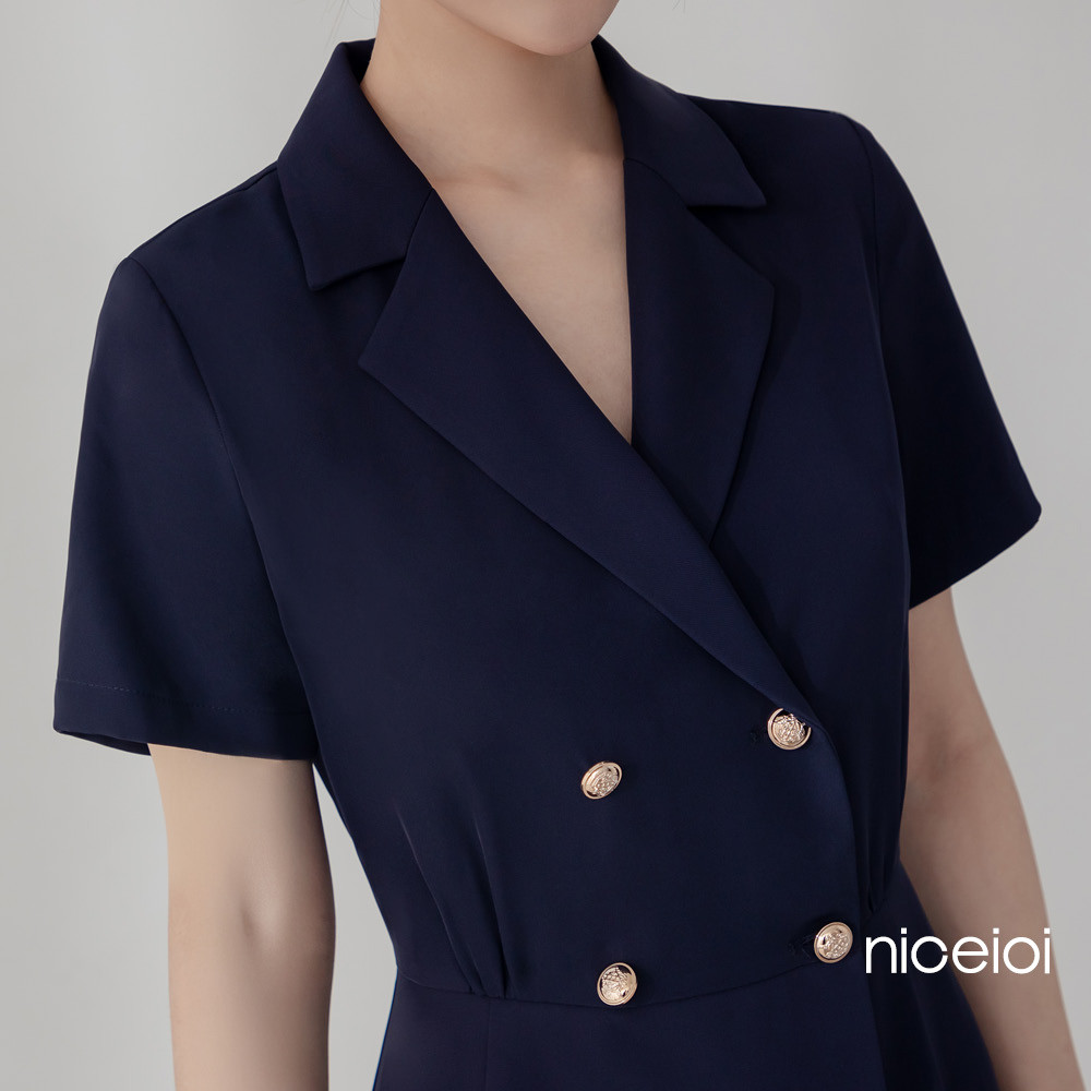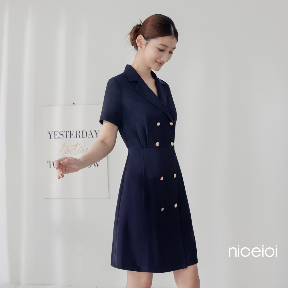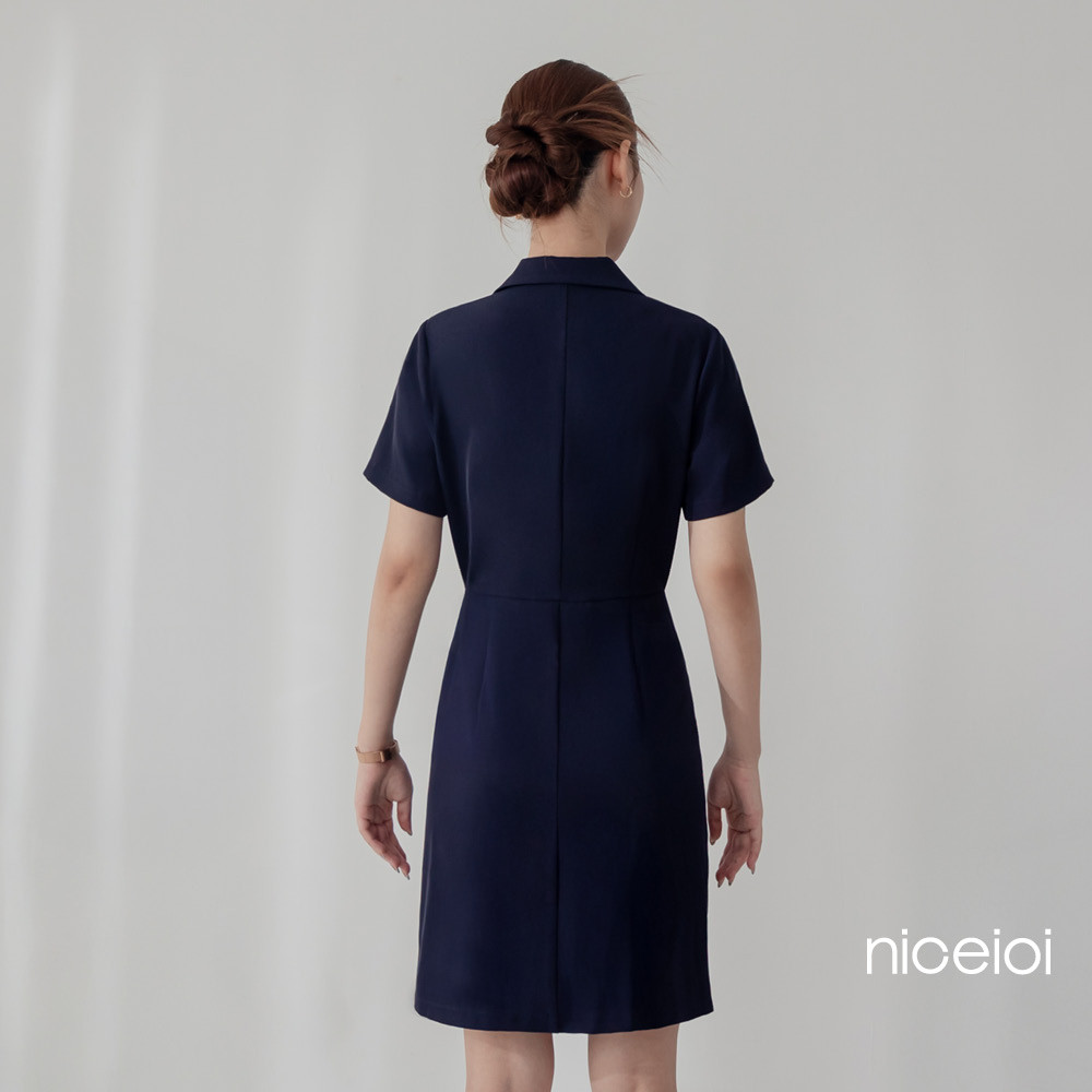 niceioi v領洋裝 短洋裝 襯衫洋裝 深藍色 [紐約知性派雙排釦翻領洋裝] 正式洋裝 女裝v領襯衫短洋裝-深藍,S|v領襯衫短洋裝-深藍,M|v領襯衫短洋裝-深藍,L|v領襯衫短洋裝-深藍,XLniceioi 官方旗艦店