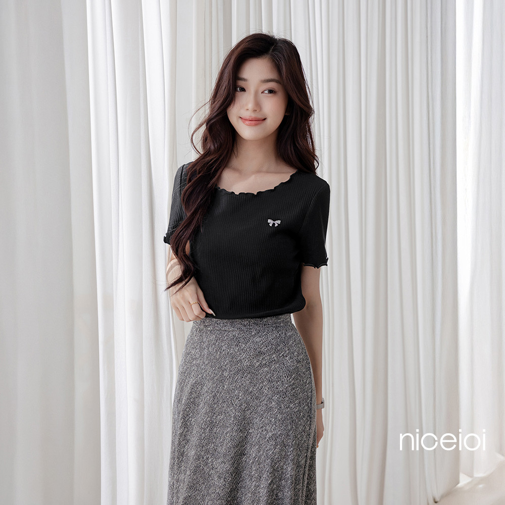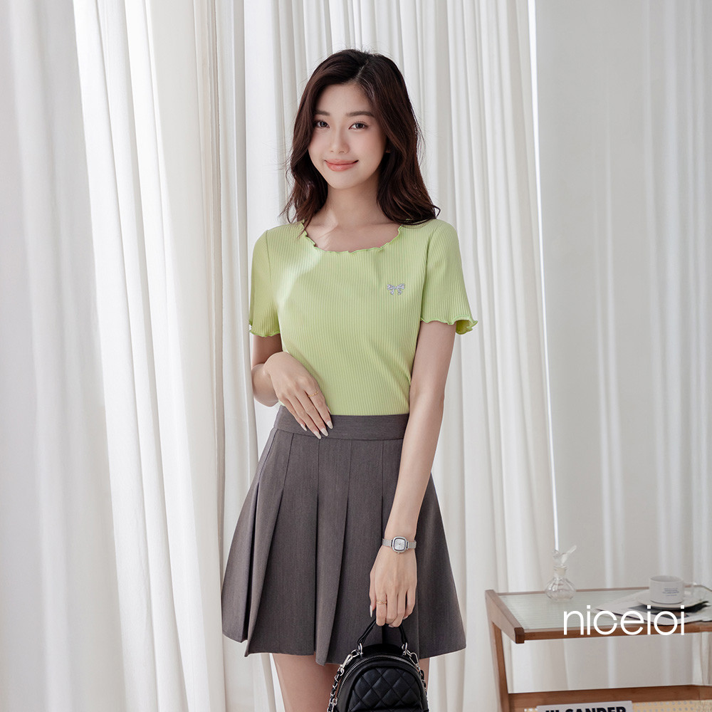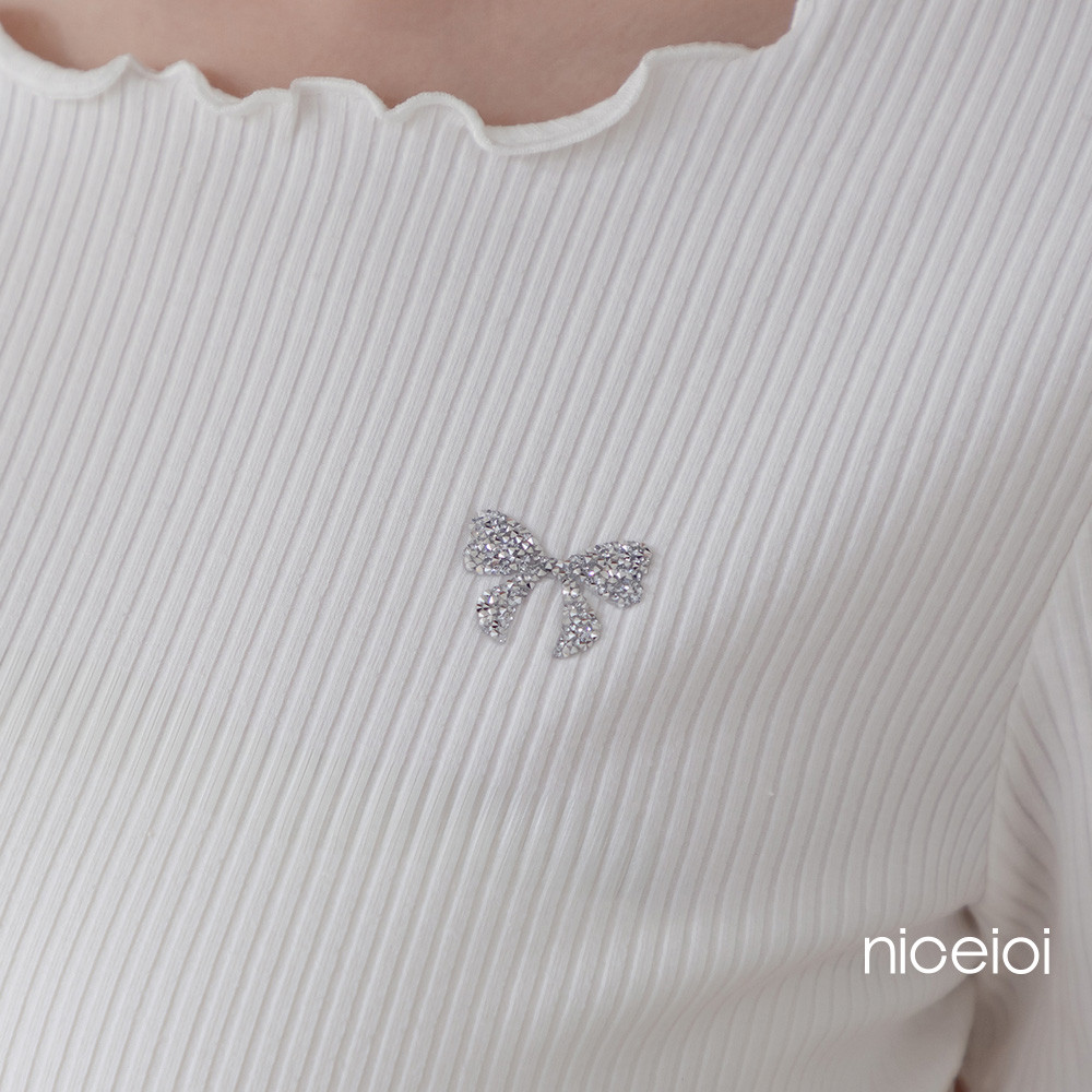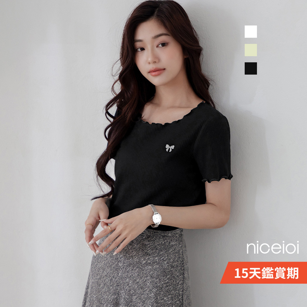 niceioi 韓系水鑽蝴蝶結荷葉邊修身上衣 (共3色) 女裝白,M|白,L|白,XXL|綠,M|綠,XL|黑,M|黑,XL|綠,S|綠,L|黑,S|白,XL|白,S|黑,L|黑,XXL|綠,XXLT-shirtsniceioi 官方旗艦店