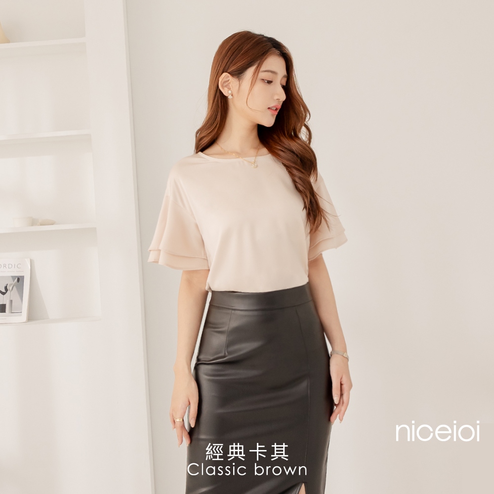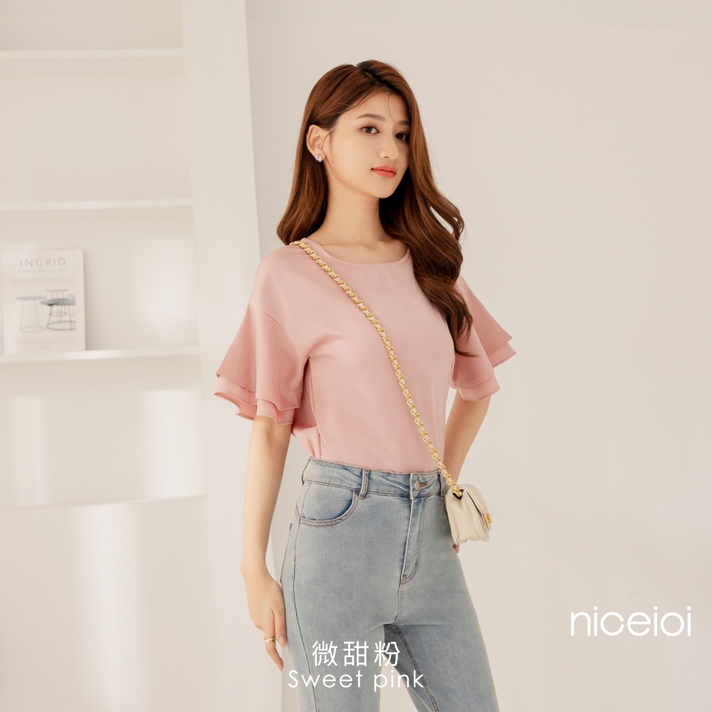 niceioi【特惠】仙女光澤荷葉寬袖上衣 (共3色) 女裝卡其,S|卡其,M|粉,S|粉,M|藍,S|藍,MOthersniceioi 官方旗艦店