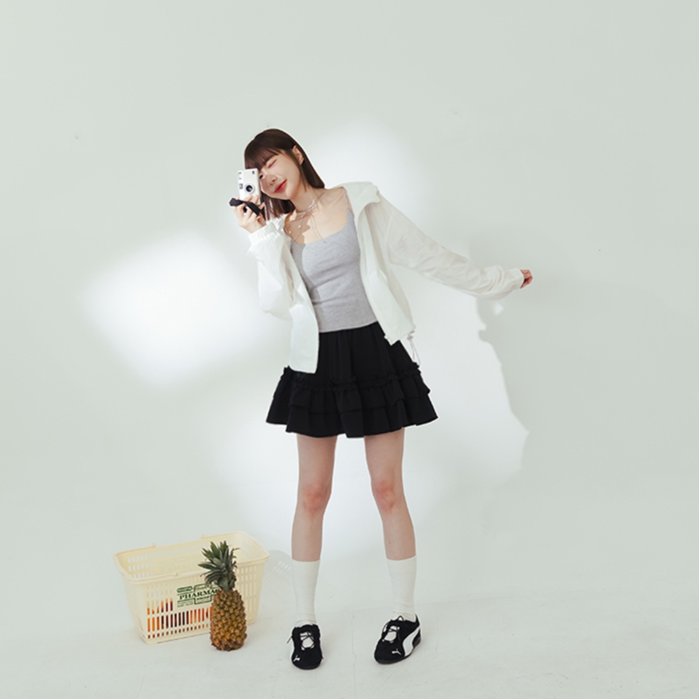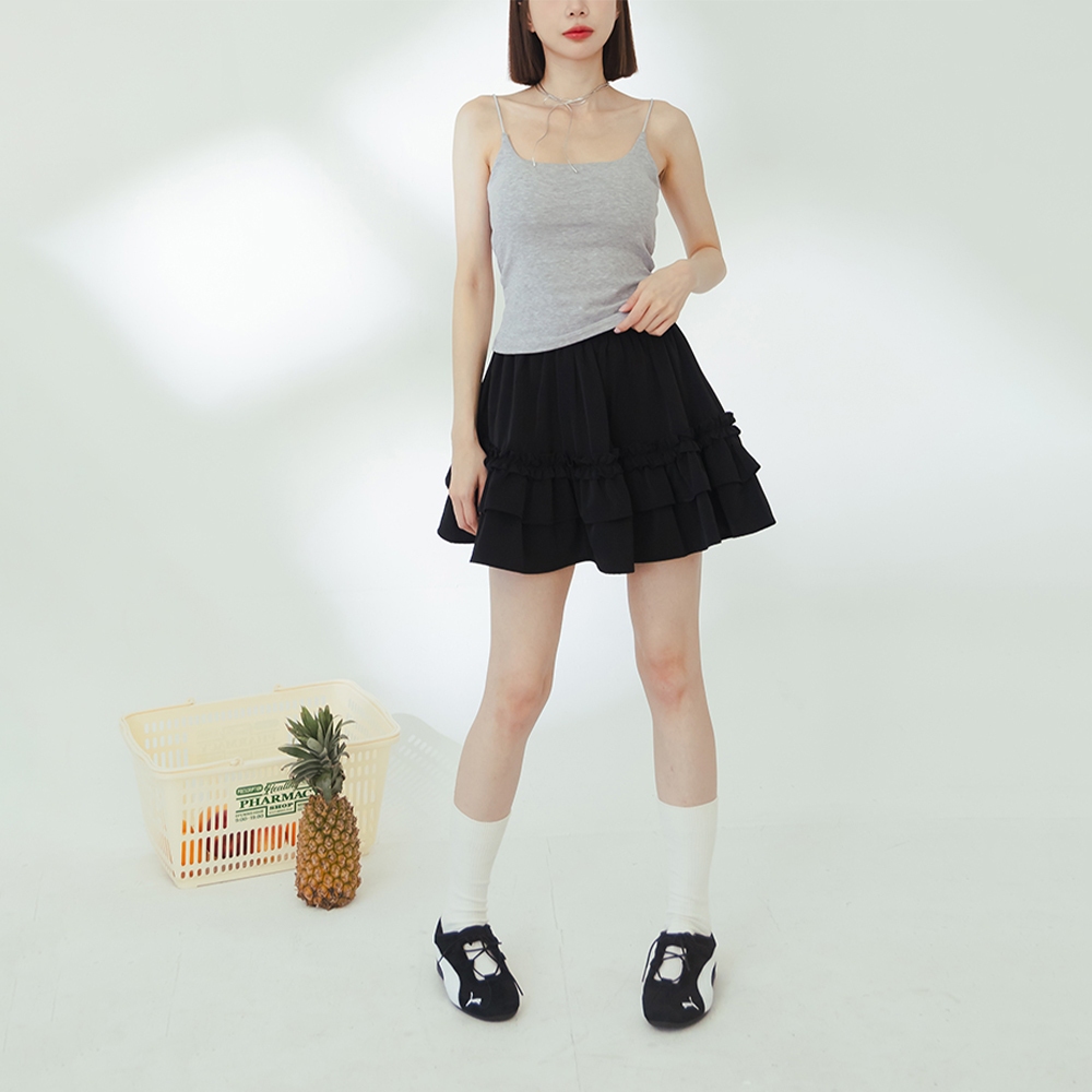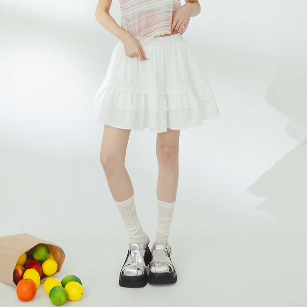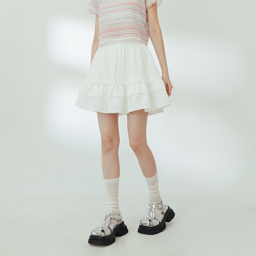 QUEENSHOP_ S 女裝 多層荷葉設計蛋糕短裙 兩色售 現+預 【03010887】黑|白QUEENSHOP