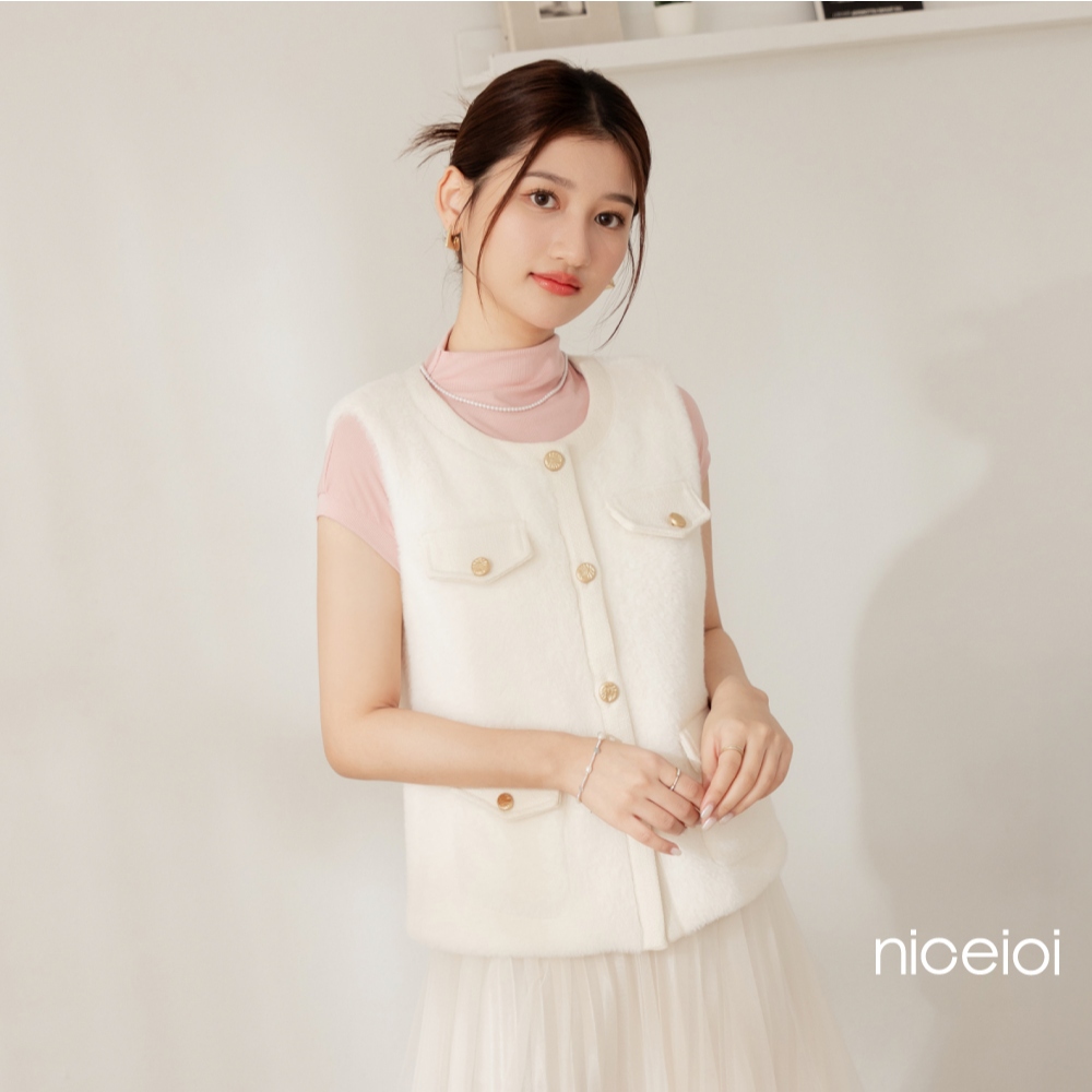 niceioi【特惠】背心外套 背心 小香風背心 米白色 [天鵝小香毛毛織紋背心外套] 女裝小香風背心外套 米色,S|小香風背心外套 米色,M|小香風背心外套 米色,L|小香風背心外套 米色,XLVestsniceioi 官方旗艦店