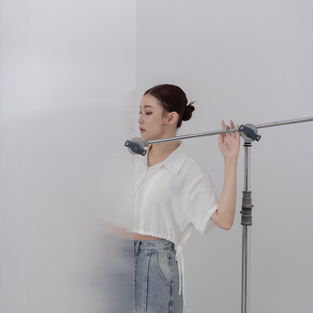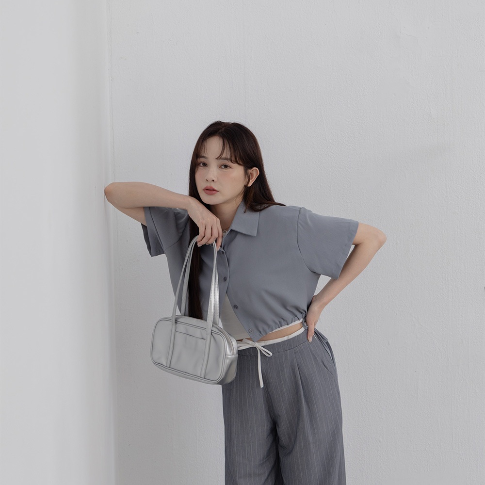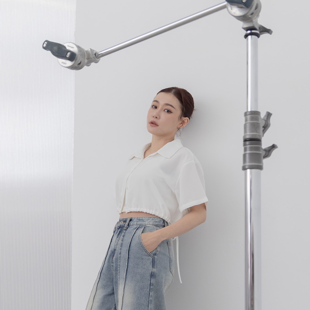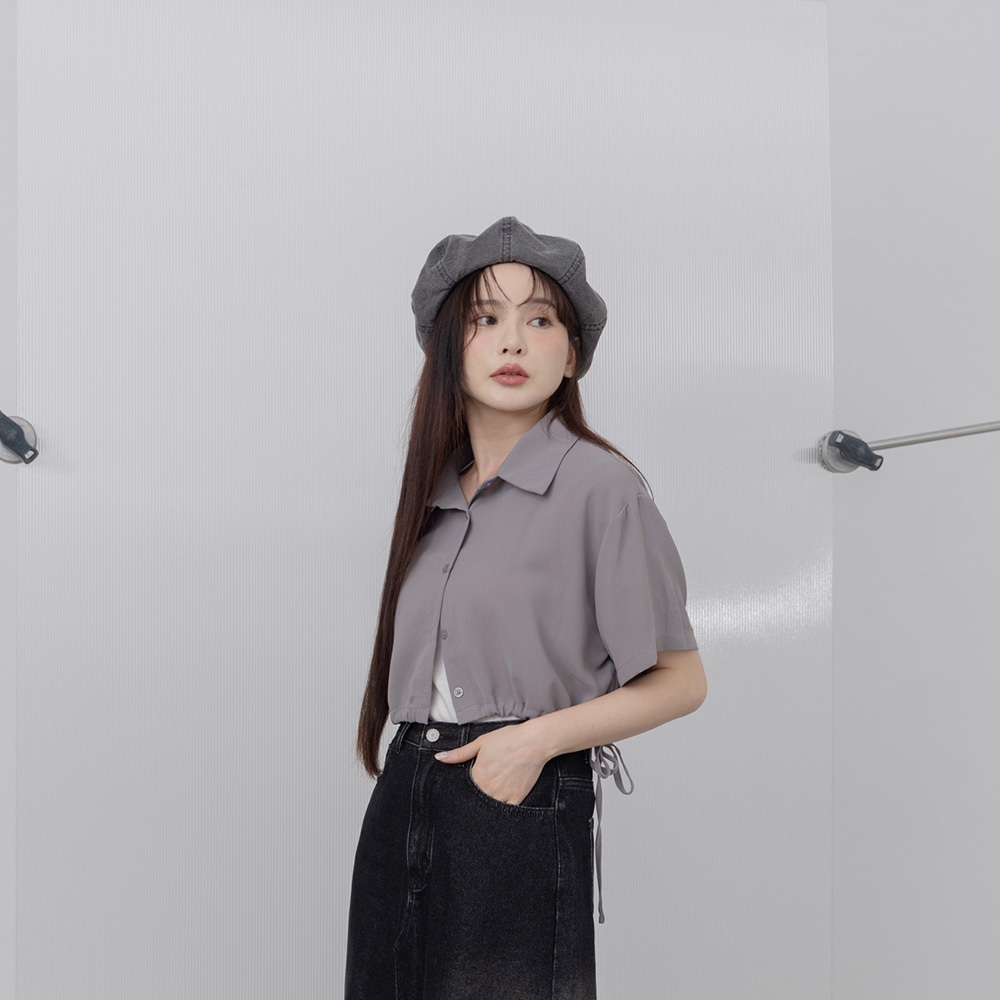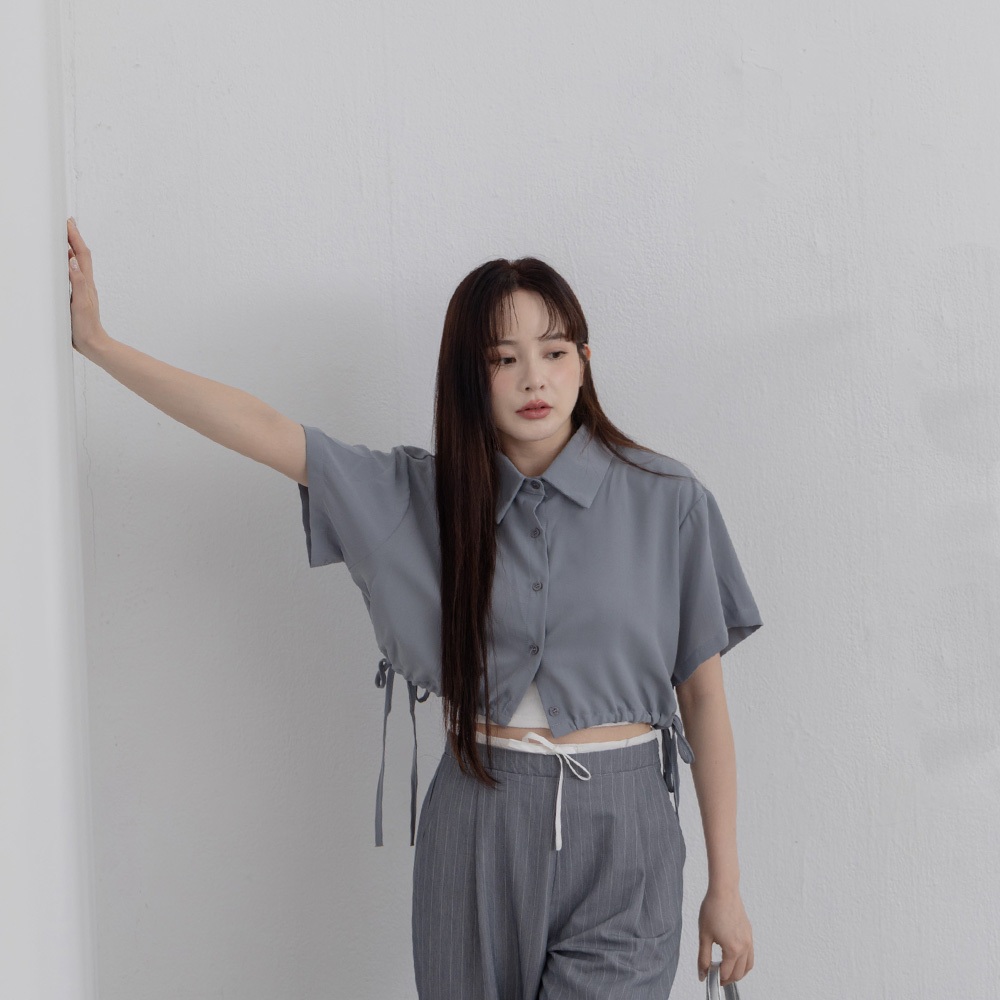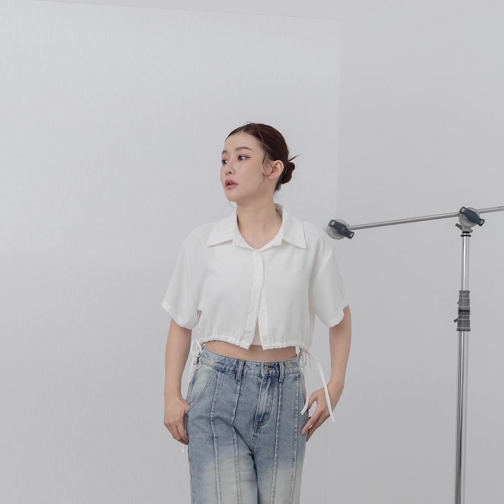 QUEENSHOP_ S 女裝 側抽繩綁帶設計短版短袖襯衫 三色售 現+預 【01025603】白|藍|深灰Shirts & BlousesQUEENSHOP