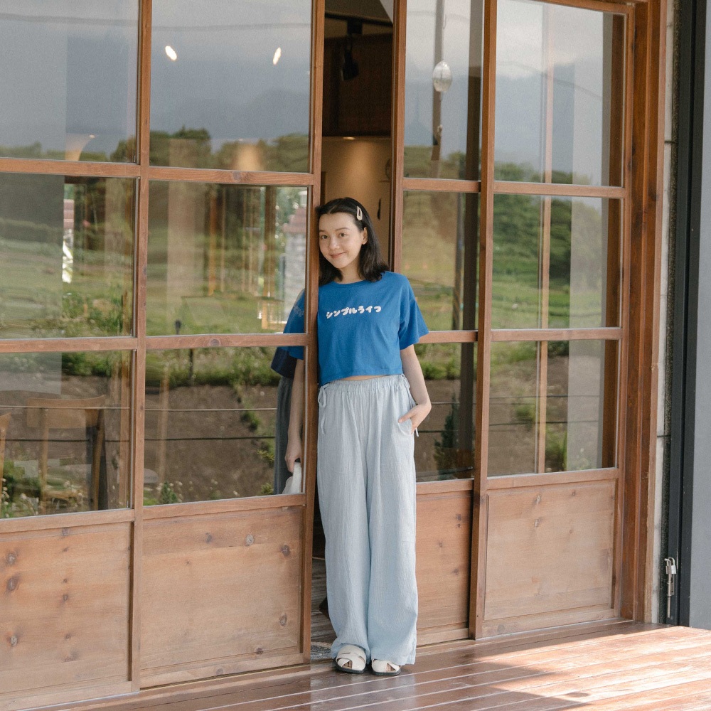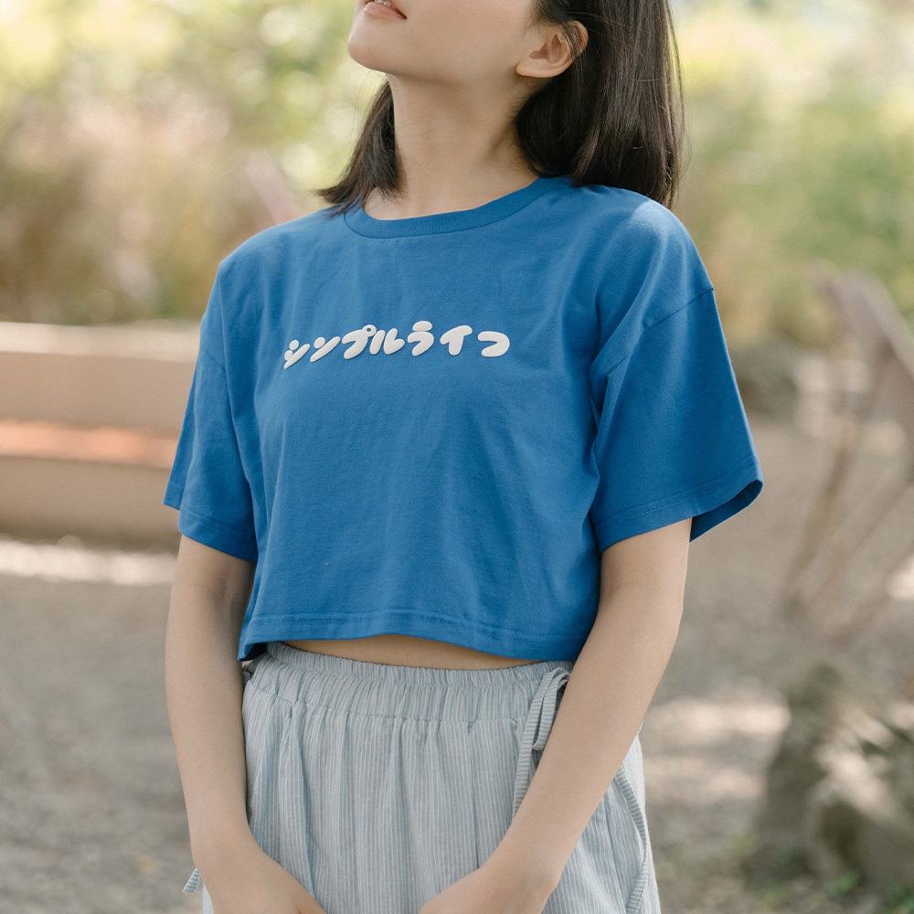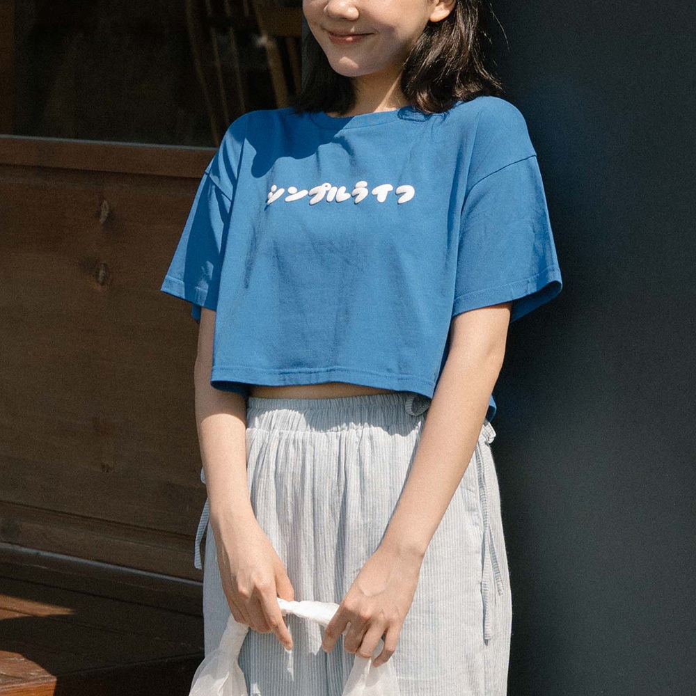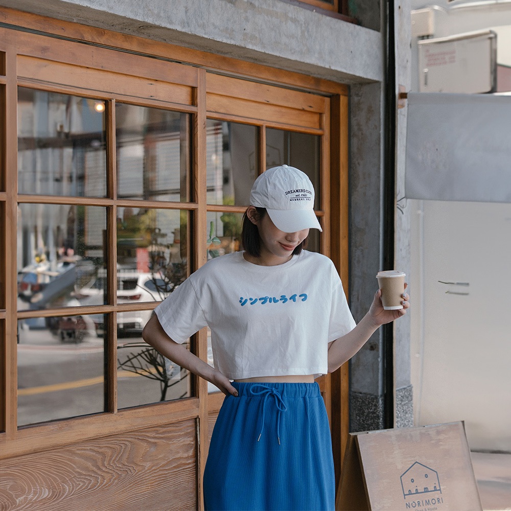 QUEENSHOP_ S 女裝 短袖 日文泡泡印字短版短袖上衣 兩色售 現+預 【01099063】白|藍T-shirtsQUEENSHOP