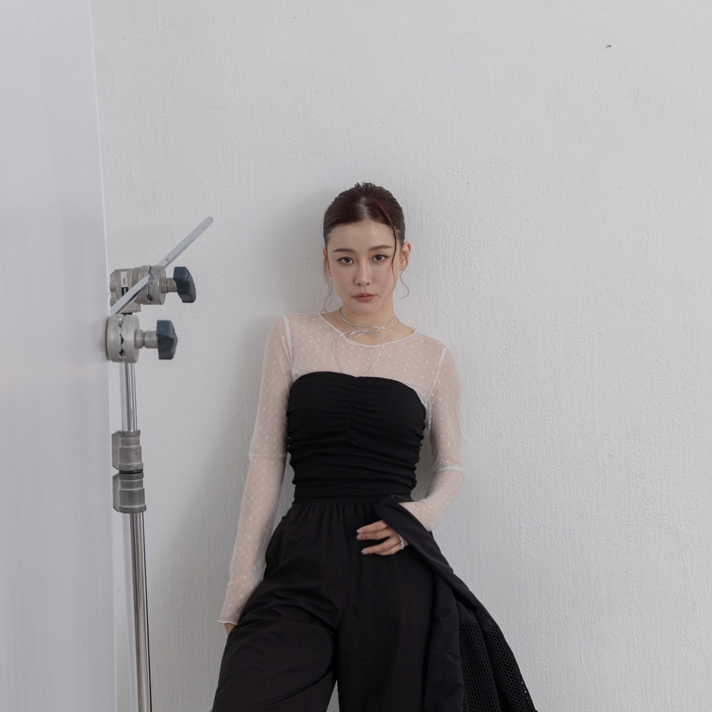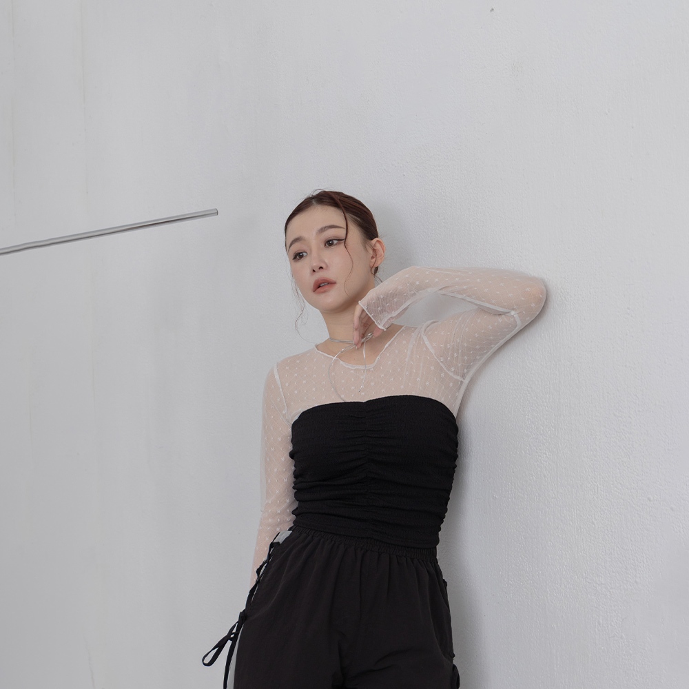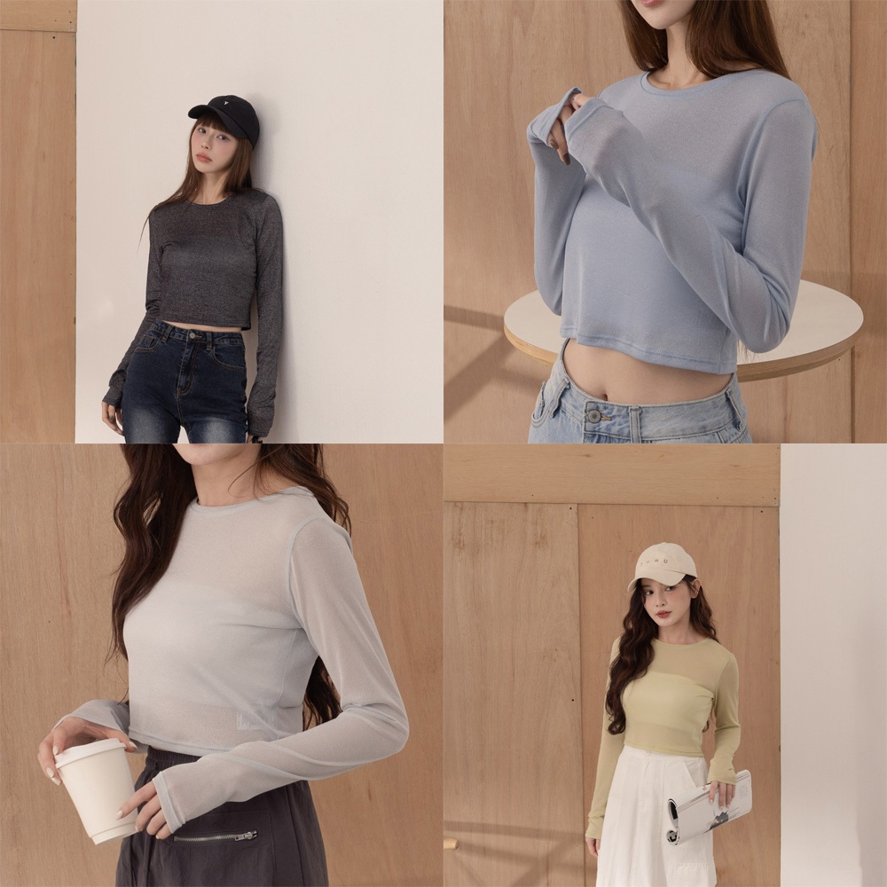 QUEENSHOP_ S 女裝 長袖 亮片光澤網紗透膚上衣 四色售 現+預 【01098849】黑|白|藍|黃綠OthersQUEENSHOP