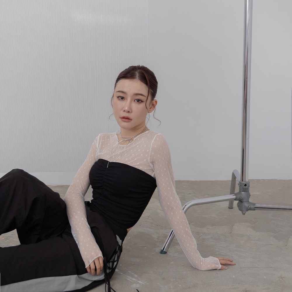 QUEENSHOP_ S 女裝 長袖 滿版緹花木耳邊透膚網紗上衣 三色售 現+預 【01099001】
