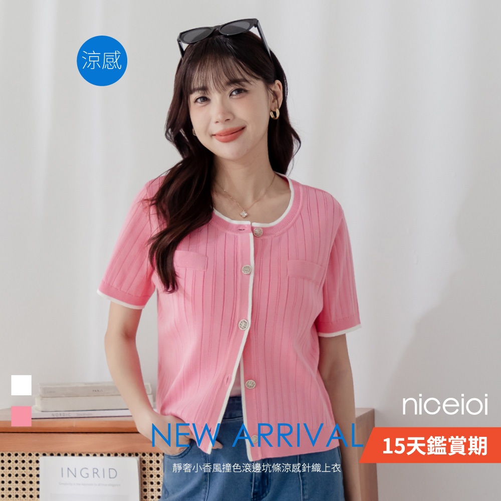 niceioi 涼感上衣 短袖 針織上衣 粉色 [靜奢小香風撞色滾邊坑條涼感針織上衣] 小香上衣 女裝小香風涼感上衣-白,L|小香風涼感上衣-白,XL|小香風涼感上衣-粉,S|小香風涼感上衣-粉,M|小香風涼感上衣-粉,L|小香風涼感上衣-粉,XL|小香風涼感上衣-白,S|小香風涼感上衣-白,Mniceioi 官方旗艦店