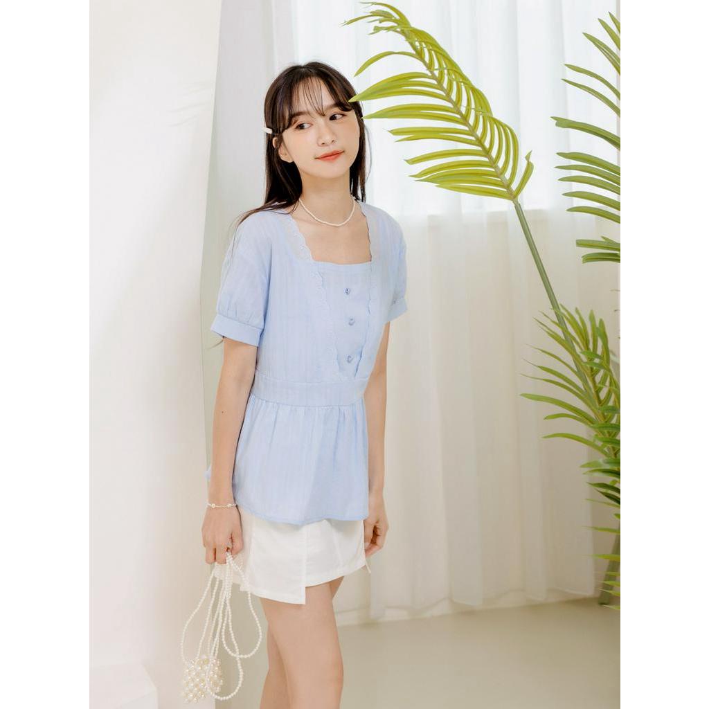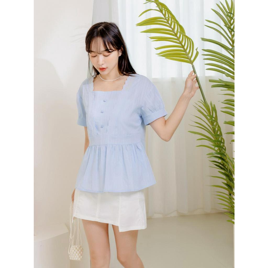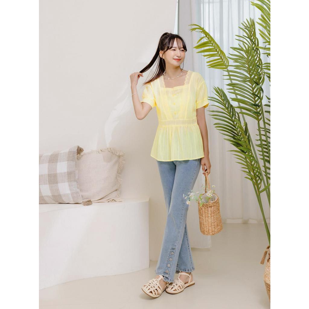 OB嚴選 小V臉.蕾絲方領純棉A字上衣 《AB18675》大尺碼/女裝/現貨黃,2L|霧藍,XL|黃,L|黃,XL|黃,3L|霧藍,S|霧藍,M|霧藍,L|霧藍,2L|霧藍,3L|黃,S|黃,MT-shirtsOB嚴選官方旗艦店