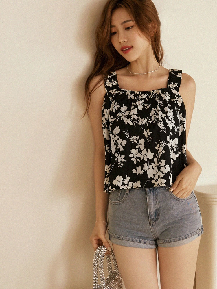 OB嚴選 純棉樹葉印花彈性肩帶短版上衣 《AB18750》現貨/女裝/時髦褐,L|褐,XL|褐,2L|黑,2L|黑,3L|褐,S|褐,M|褐,3L|黑,S|黑,M|黑,L|黑,XLT-shirtsOB嚴選官方旗艦店