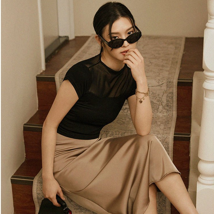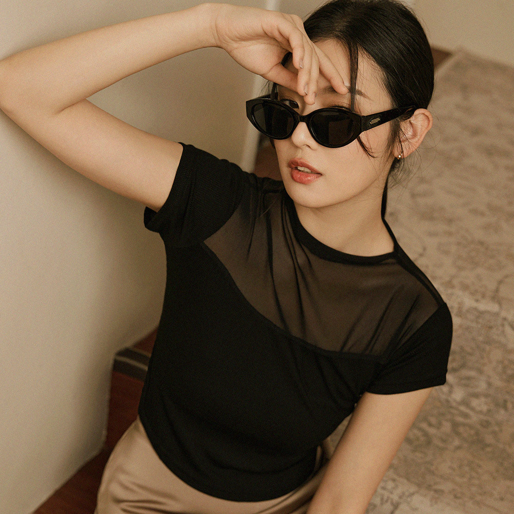 OB嚴選 透膚網紗拼接合身短袖上衣 《AB19812》時髦/大尺碼/現貨/女裝白,S|白,M|白,L|白,XL|白,2L|黑,XL|黑,2L|黑,3L|白,3L|黑,S|黑,M|黑,LT-shirtsOB嚴選官方旗艦店