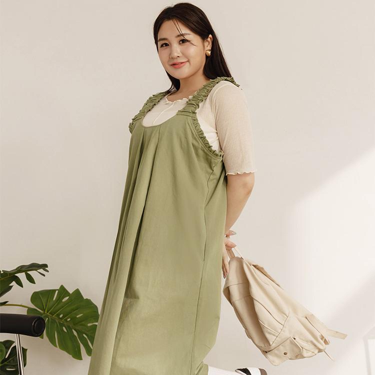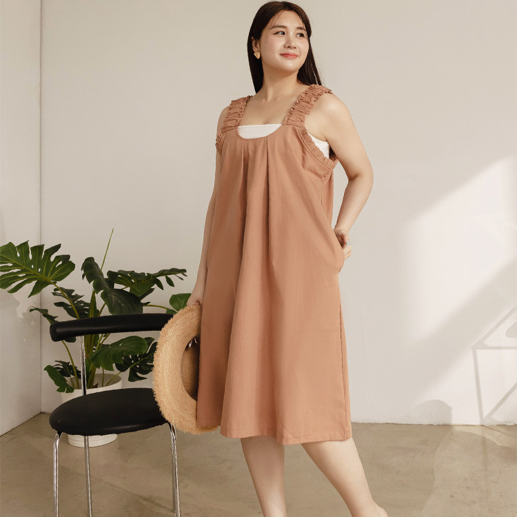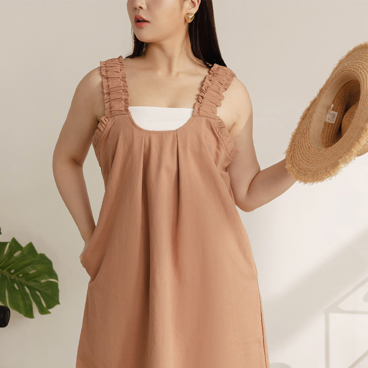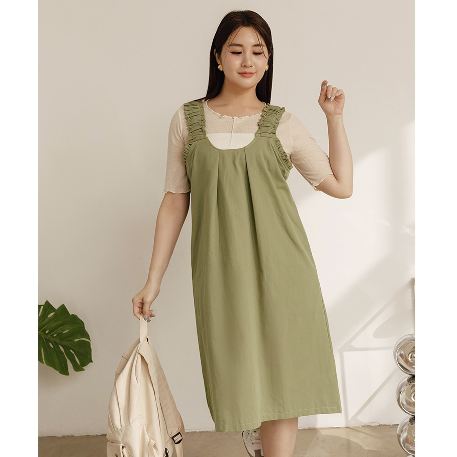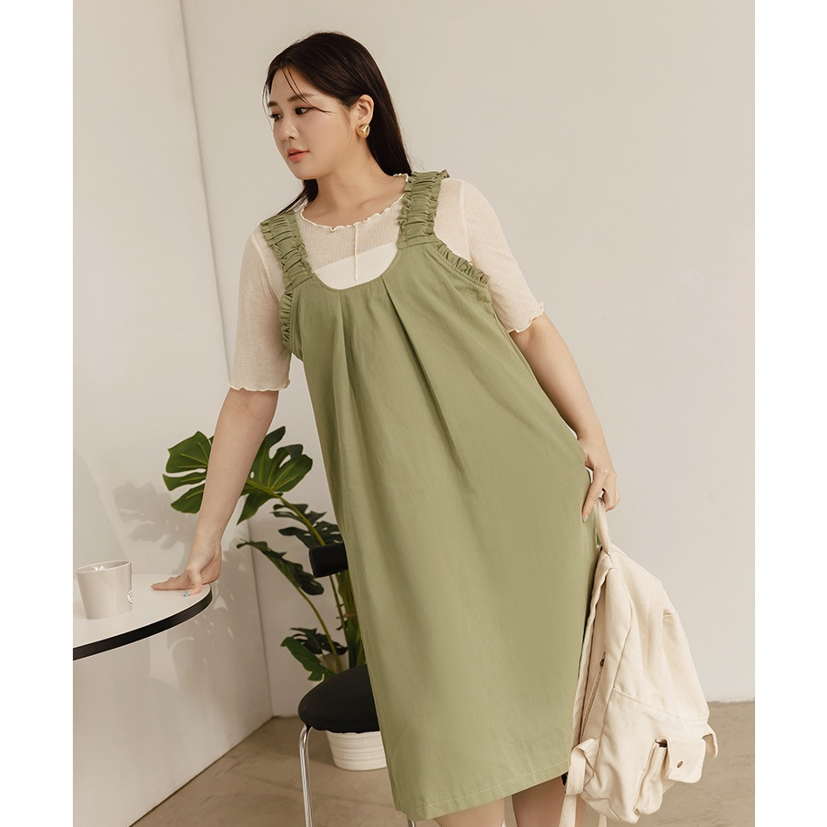OB嚴選 雲朵自訂款-荷葉肩帶車褶H字短洋裝 《DA10098》大尺碼/女裝/現貨灰綠,XL|灰綠,2L|灰綠,3L|磚紅,XL|磚紅,2L|磚紅,3LOB嚴選官方旗艦店