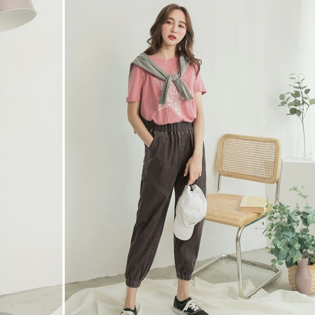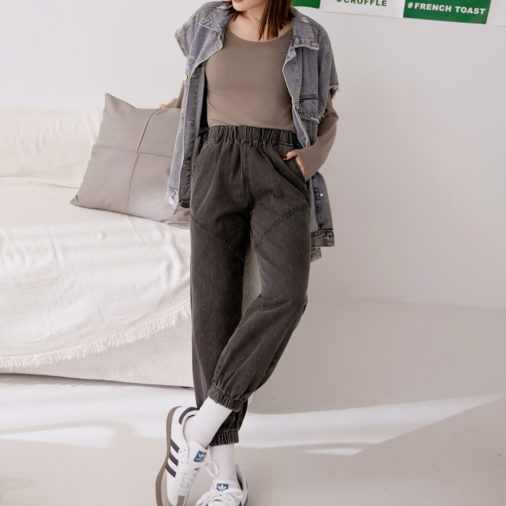 OB嚴選 高含棉收腰鬆緊街頭牛仔哈倫縮口褲 《BA5421》大尺碼/現貨/女裝黑灰,S|黑灰,M|黑灰,L|黑灰,XL|黑灰,2L|黑灰,3L|黑灰,4L|深藍,S|深藍,M|深藍,L|深藍,XL|深藍,2L|深藍,3L|深藍,4LPantsOB嚴選官方旗艦店