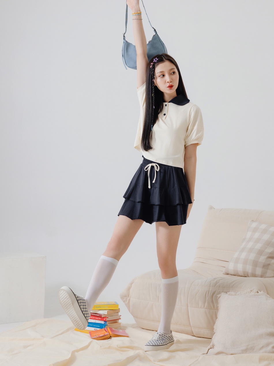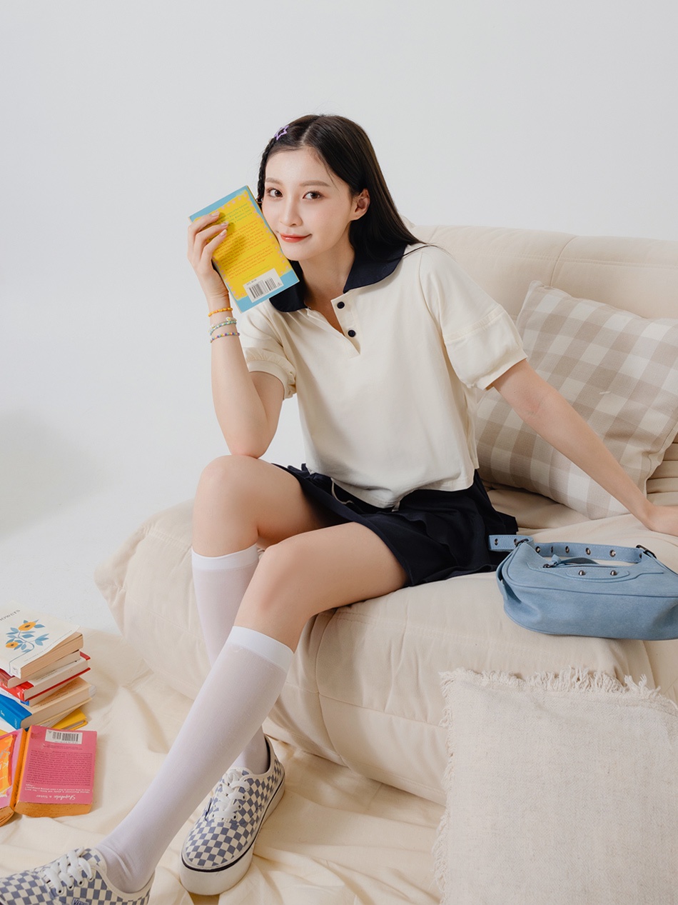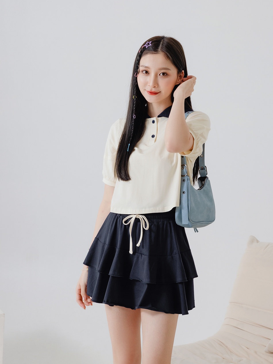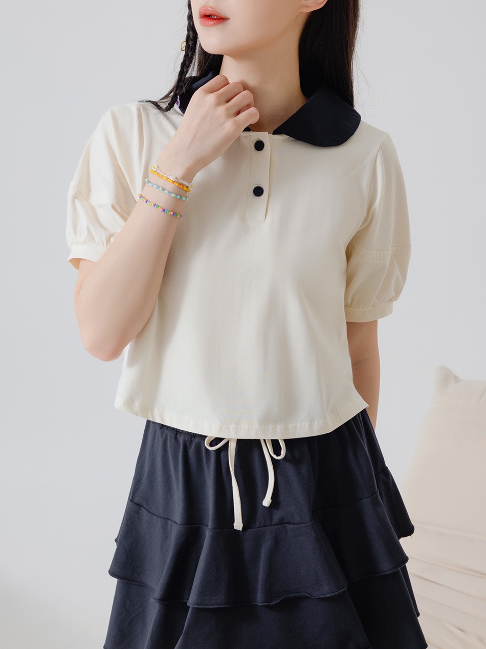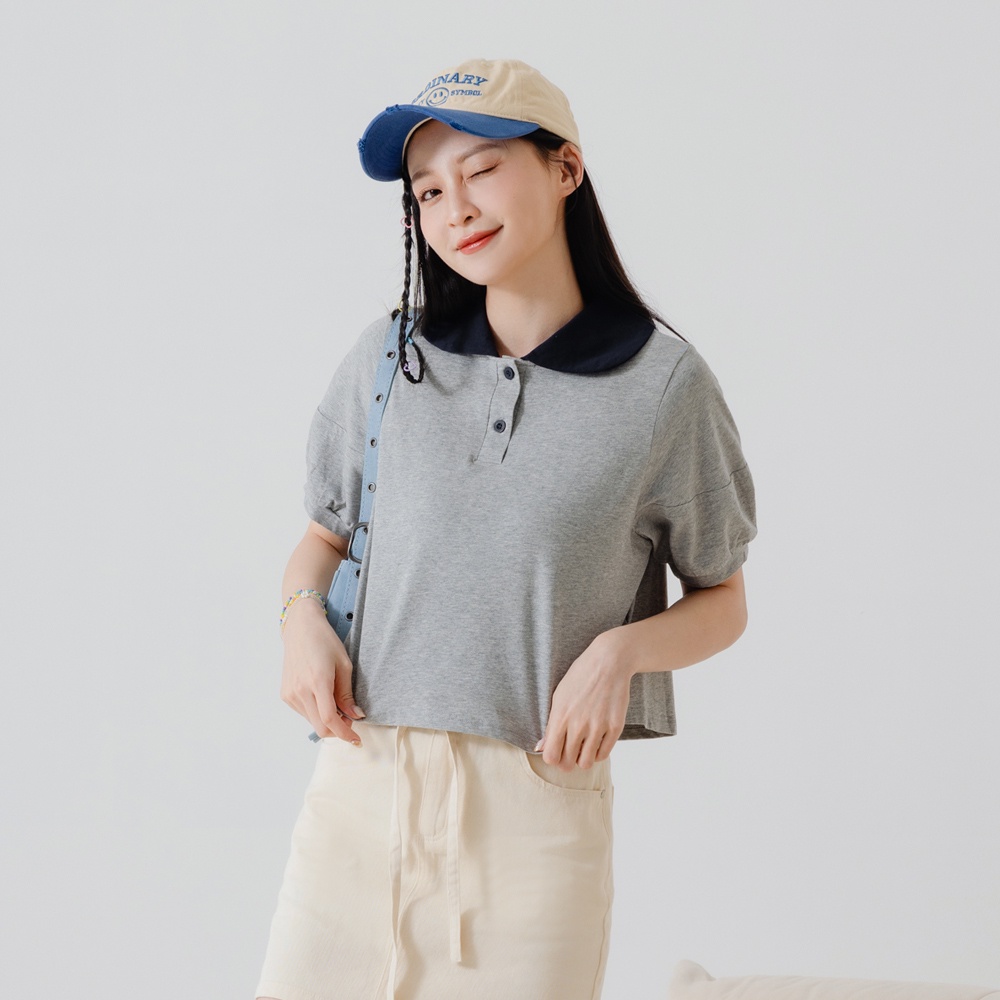 OB嚴選 涼感.絲光棉領片拋袖短版T恤上衣 《AB18643》大尺碼/現貨/女裝灰,XL|杏,S|灰,M|灰,L|杏,L|杏,XL|灰,S|杏,MT-shirtsOB嚴選官方旗艦店