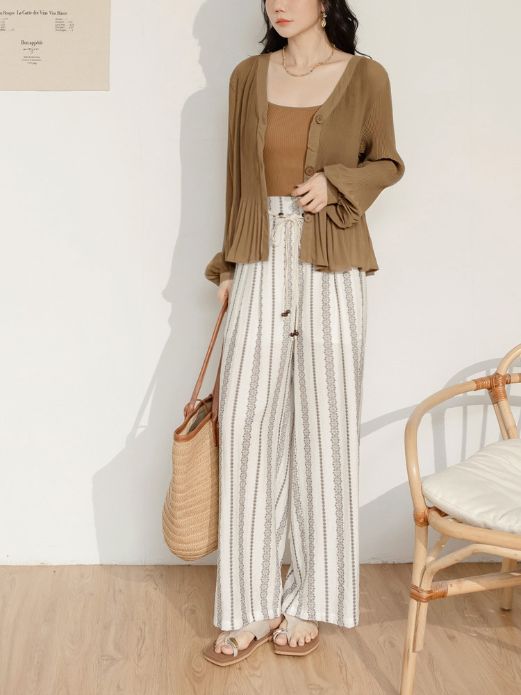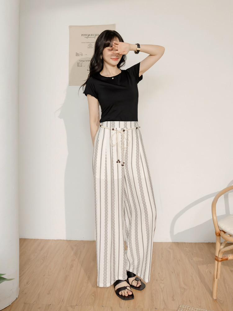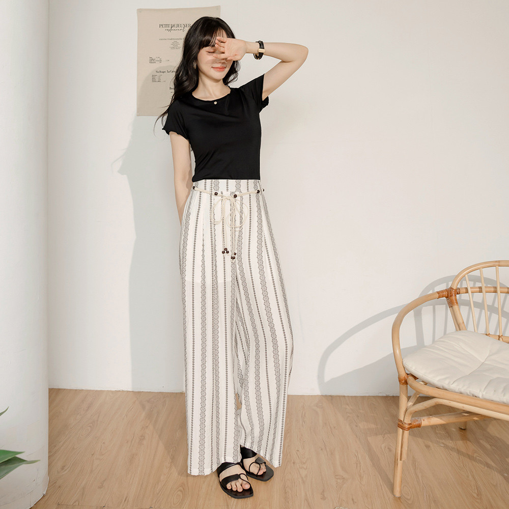 OB嚴選 棉麻感圖騰印花珠飾綁帶寬褲(附綁帶) 《BA7886》