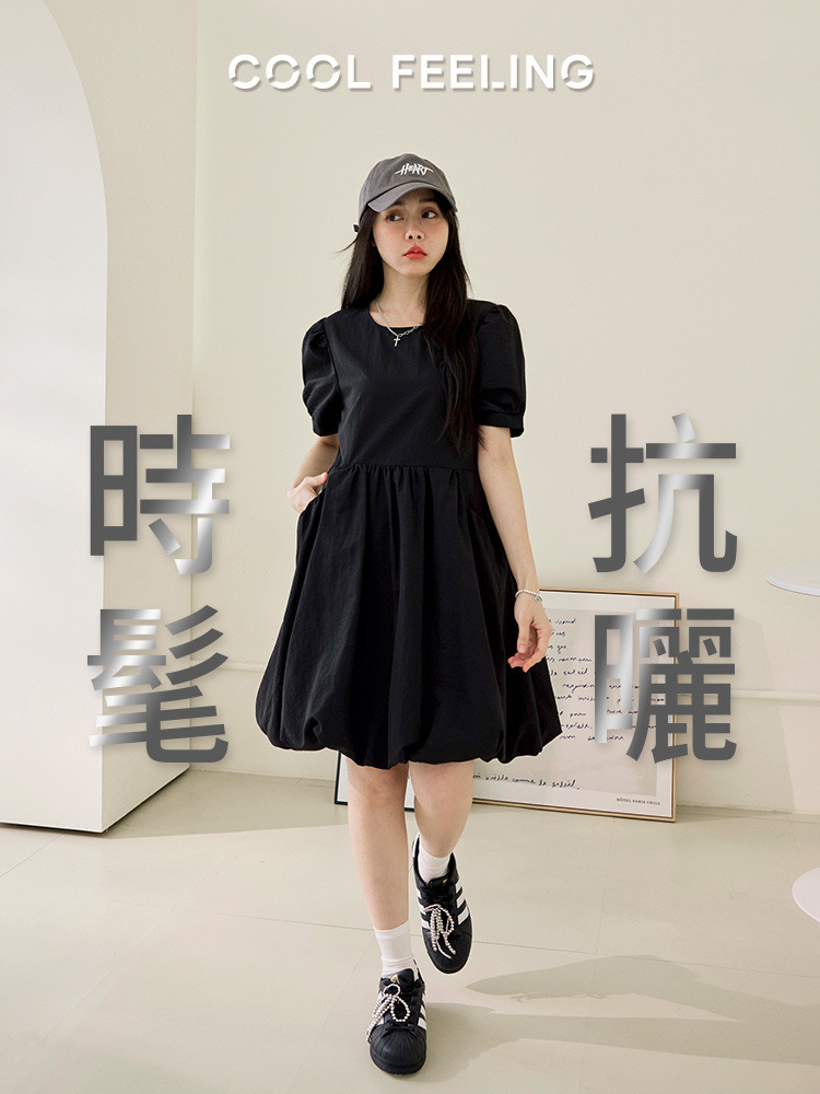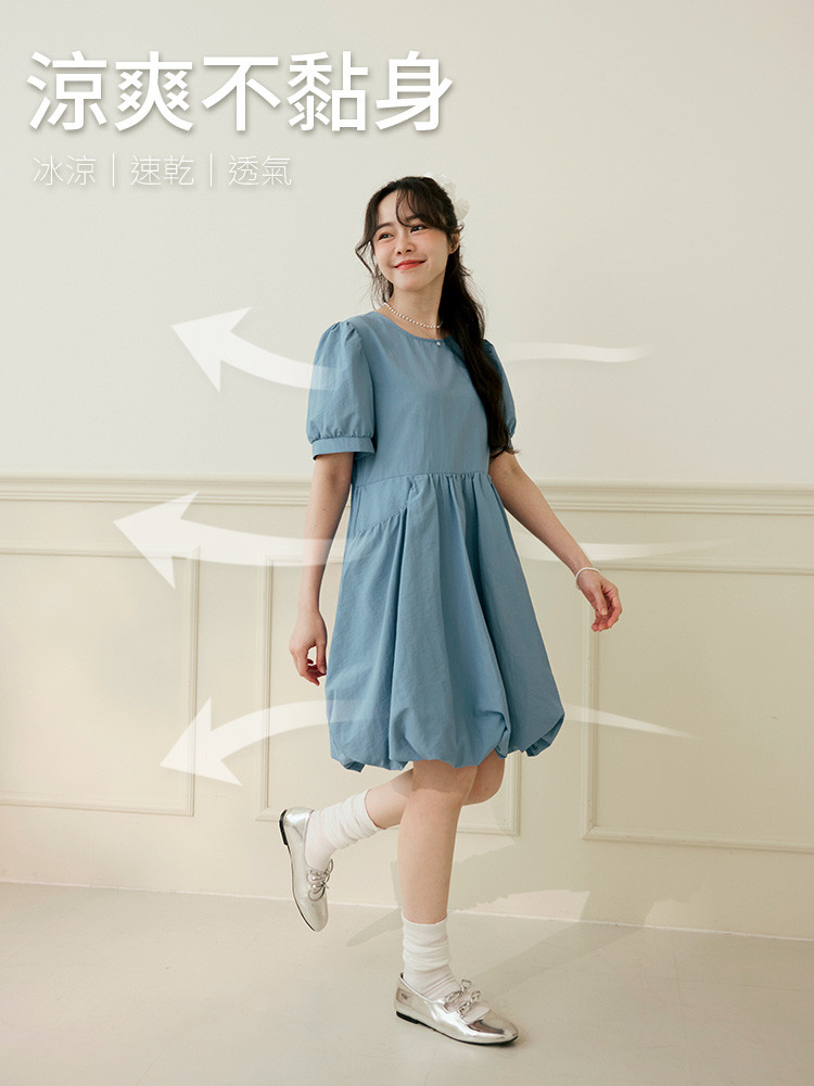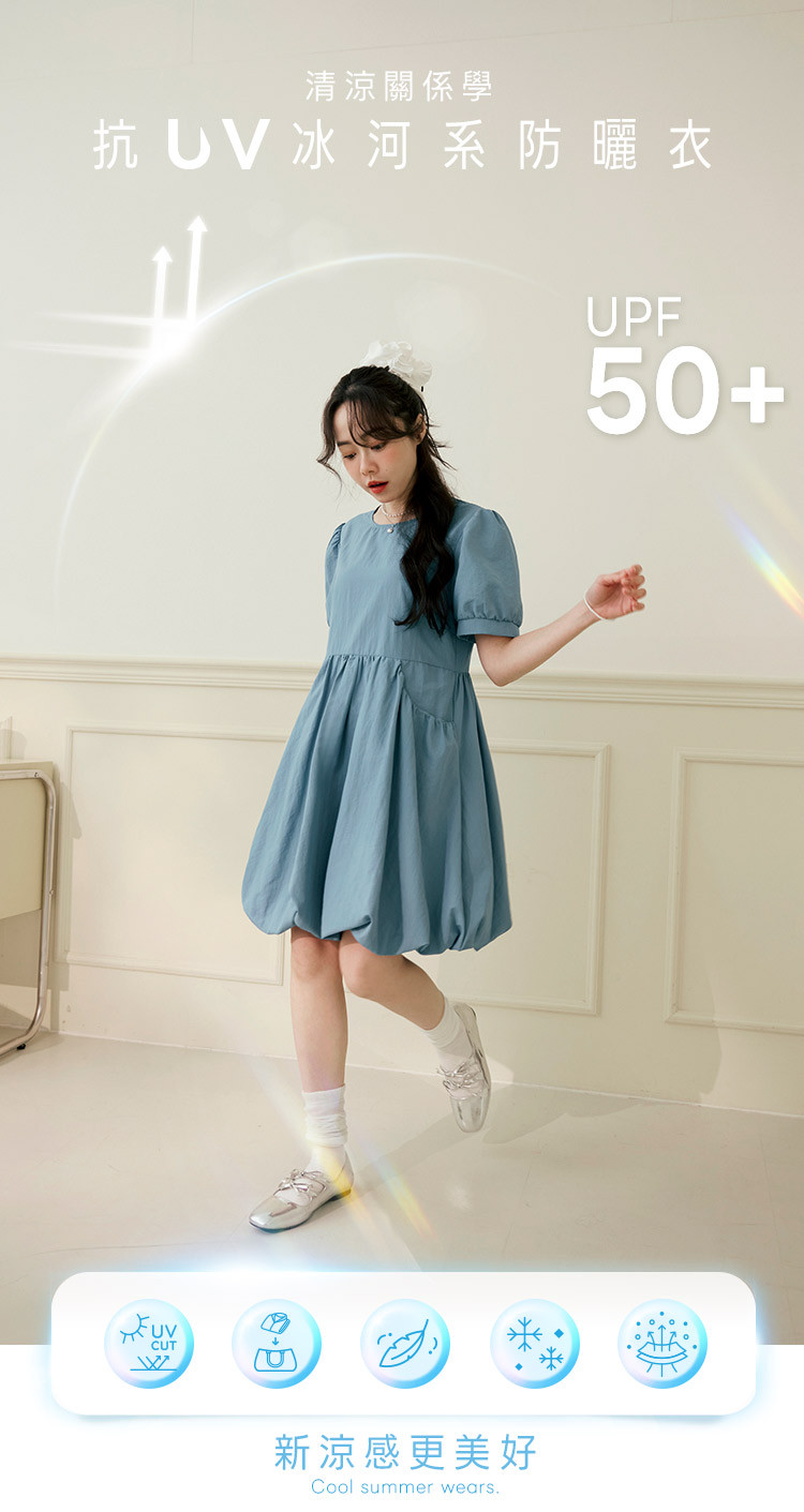 OB嚴選 涼感.抗UV澎澎袖冰河系防曬短洋裝 《DA10503》灰藍,S|灰藍,M|灰藍,L|灰藍,XL|灰藍,2L|黑,S|黑,M|黑,L|黑,XL|黑,2LOB嚴選官方旗艦店