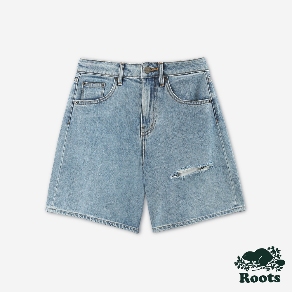 Roots女裝- 丹寧五分褲淺藍色,27|淺藍色,28|淺藍色,29|淺藍色,30|淺藍色,24|淺藍色,25|淺藍色,26ShortsRoots 官方旗艦店