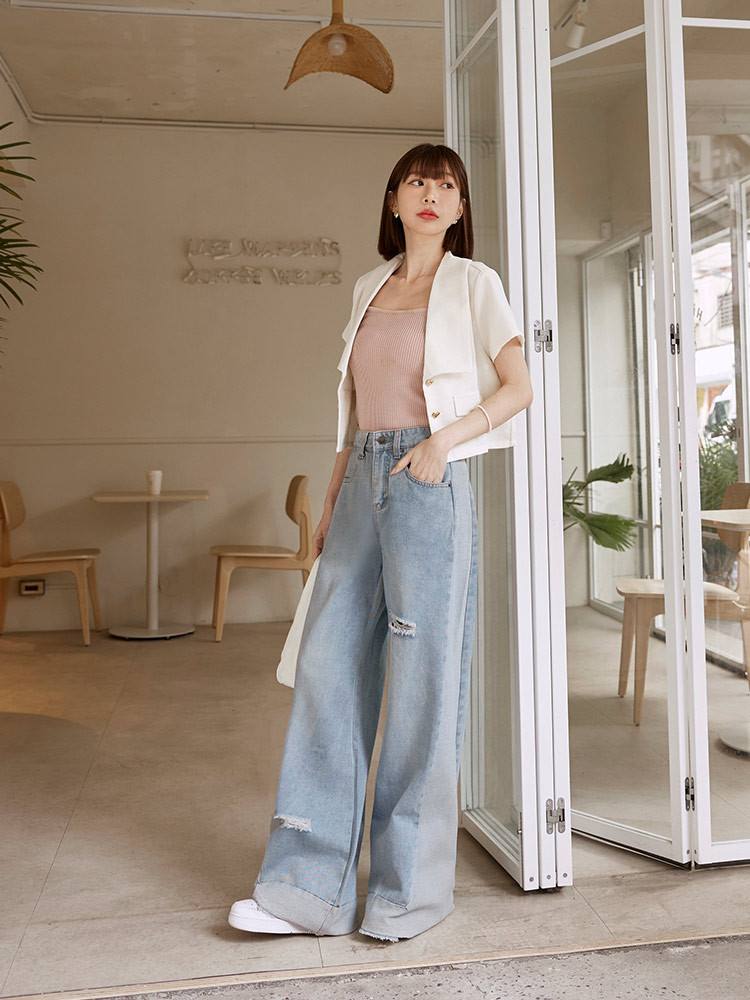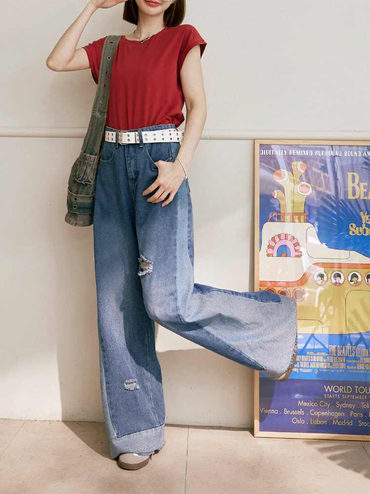 OB嚴選 純棉刷色拼接鬚邊刷破牛仔寬褲 《BA7721》淺丹寧藍,M|淺丹寧藍,L|淺丹寧藍,XL|淺丹寧藍,2L|淺丹寧藍,3L|淺丹寧藍,4L|淺丹寧藍,5L|深丹寧藍,M|深丹寧藍,L|深丹寧藍,XL|深丹寧藍,2L|深丹寧藍,3L|深丹寧藍,4L|深丹寧藍,5LPantsOB嚴選官方旗艦店