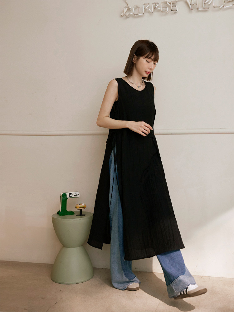 SO NICE 工裝風水洗感抽鬚圓領牛仔背心外套|都會時尚女裝【97545002】藍,34(XS)|藍,36(S)|藍,38(M)|藍,40(L)|藍,42(XL)VestsSO NICE 官方旗艦店