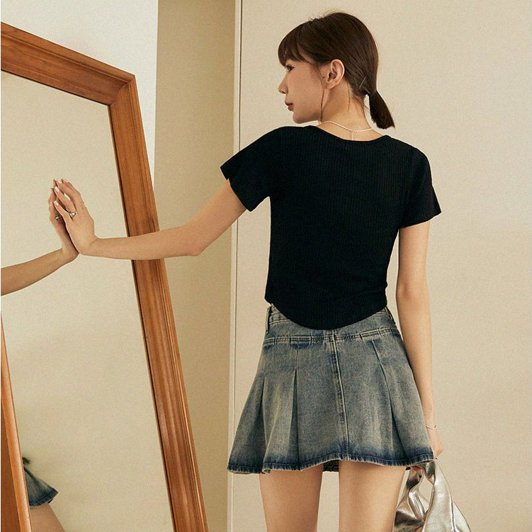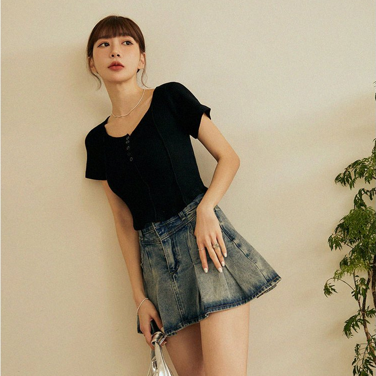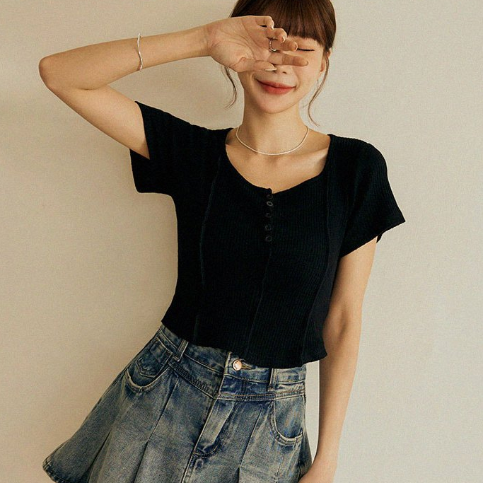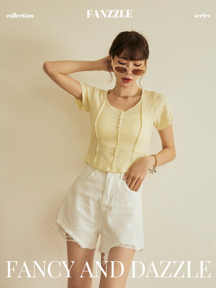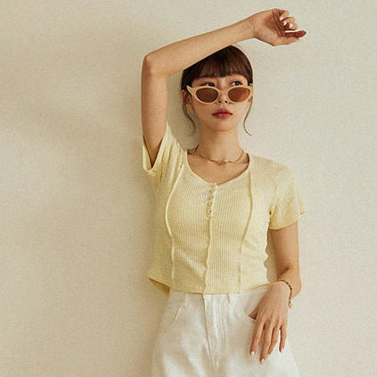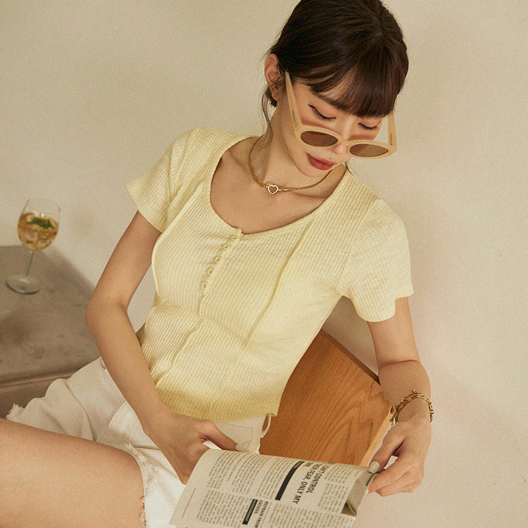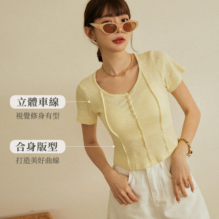 OB嚴選 彈性坑條立體車線半開襟合身短袖上衣 《AB19453》時髦/現貨/女裝黑,S|黑,M|黑,L|黑,XL|黑,2L|黑,3L|奶油黃,S|奶油黃,M|奶油黃,L|奶油黃,XL|奶油黃,2L|奶油黃,3LT-shirtsOB嚴選官方旗艦店