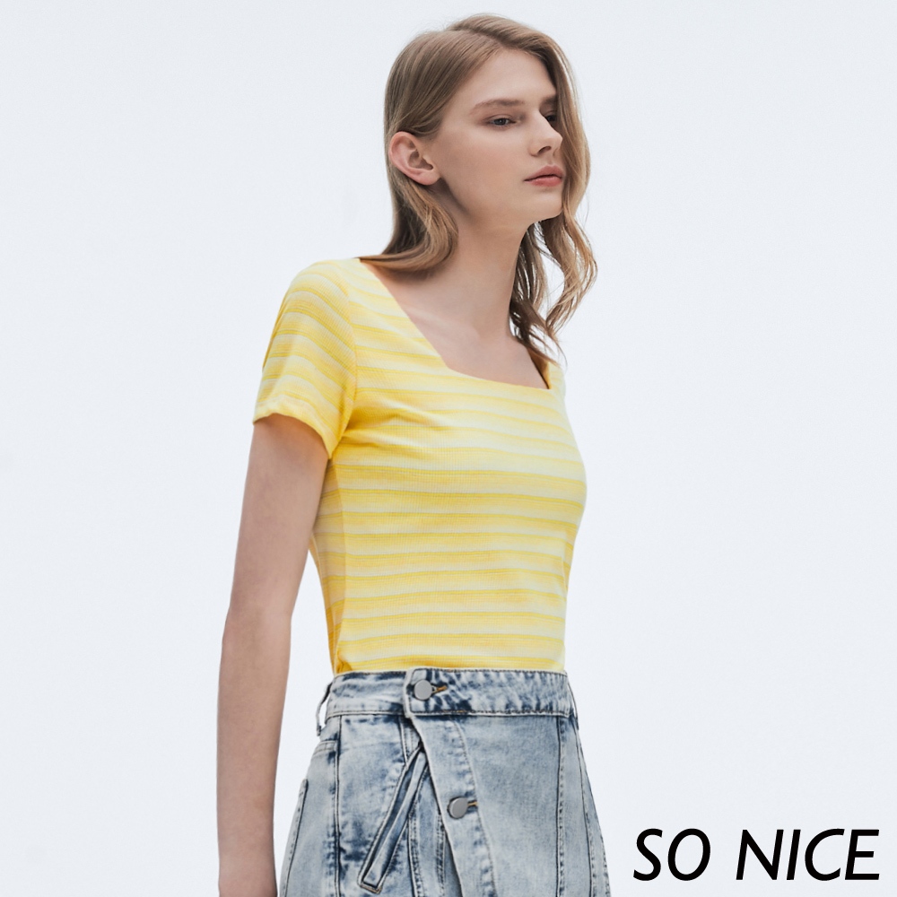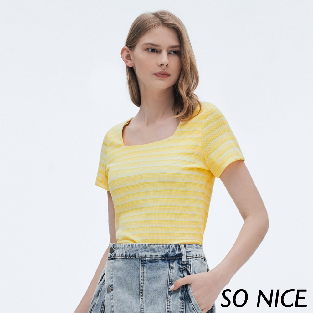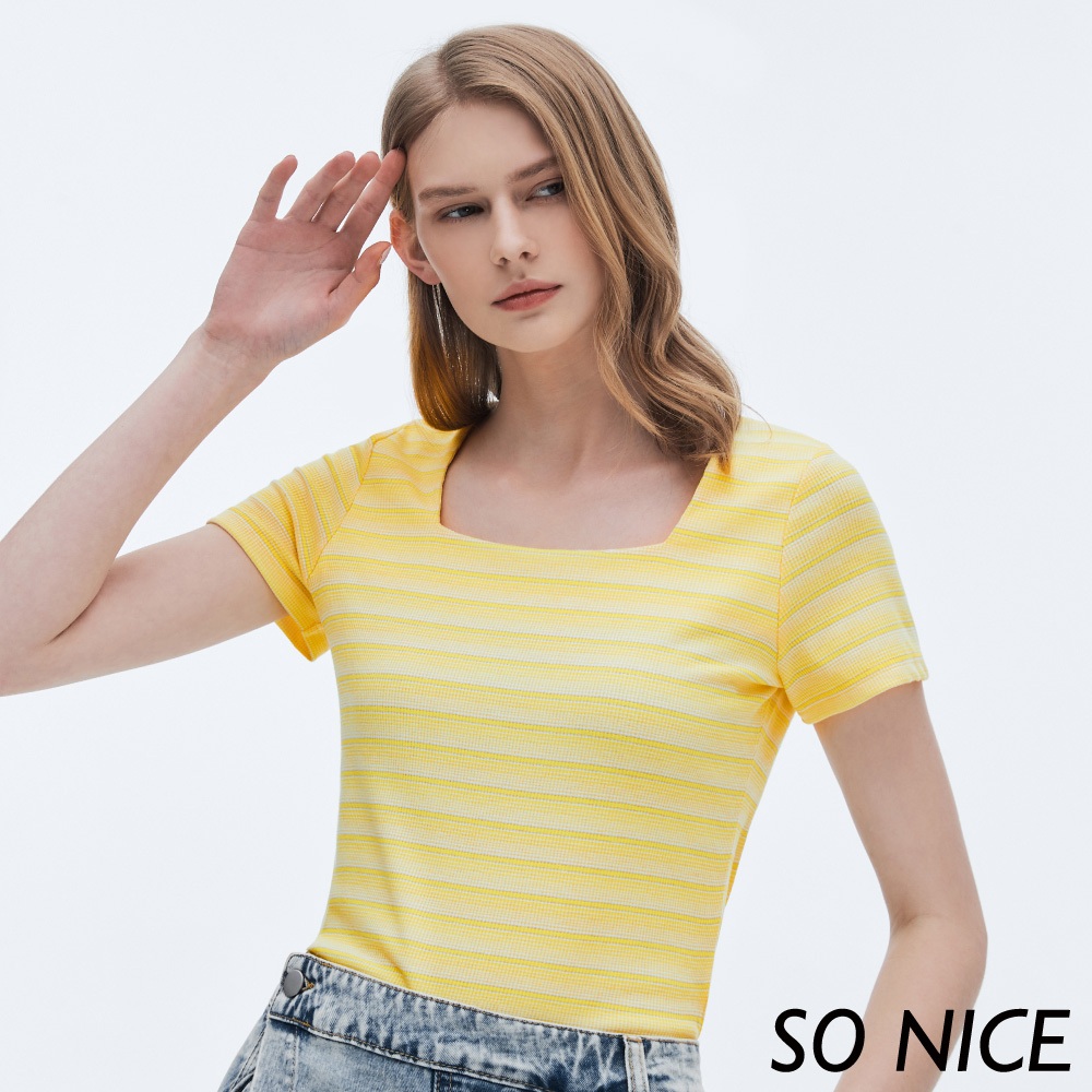SO NICE【特惠】條紋銀蔥方領上衣|黑條紋/黃條紋|【65331033】黑條紋,34(XS)|黃條紋,36(S)|黃條紋,38(M)|黑條紋,36(S)|黑條紋,38(M)|黑條紋,40(L)|黑條紋,42(XL)|黃條紋,34(XS)|黃條紋,40(L)|黃條紋,42(XL)T-shirtsSO NICE 官方旗艦店