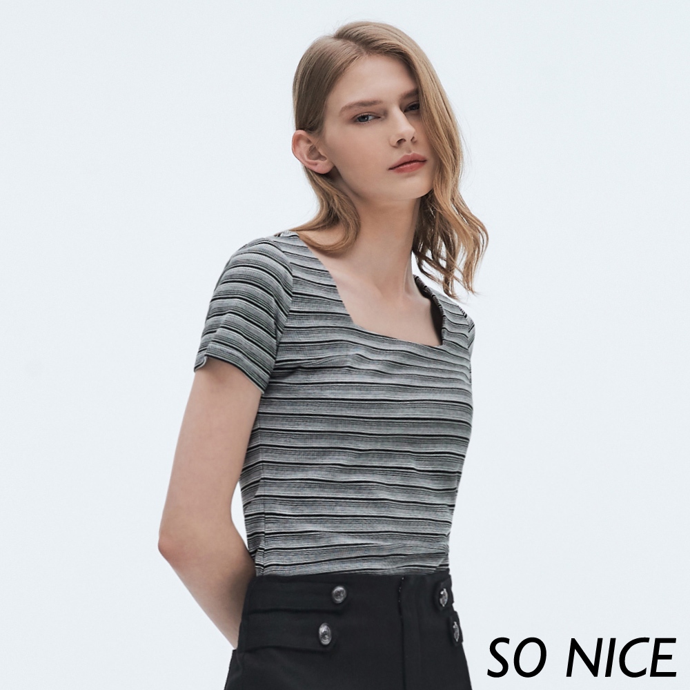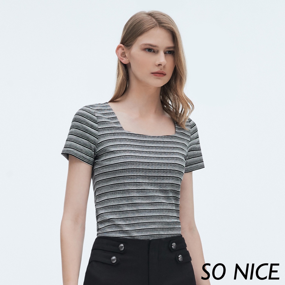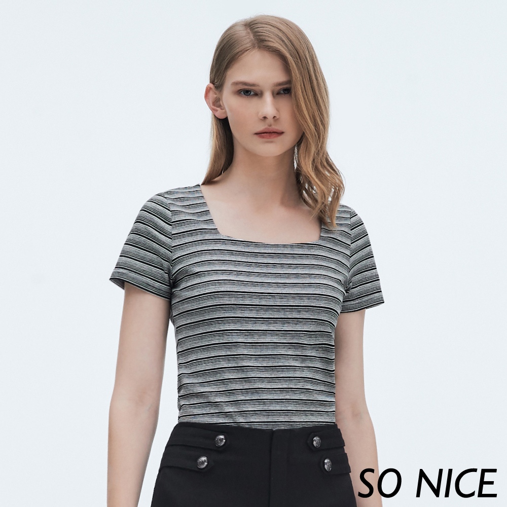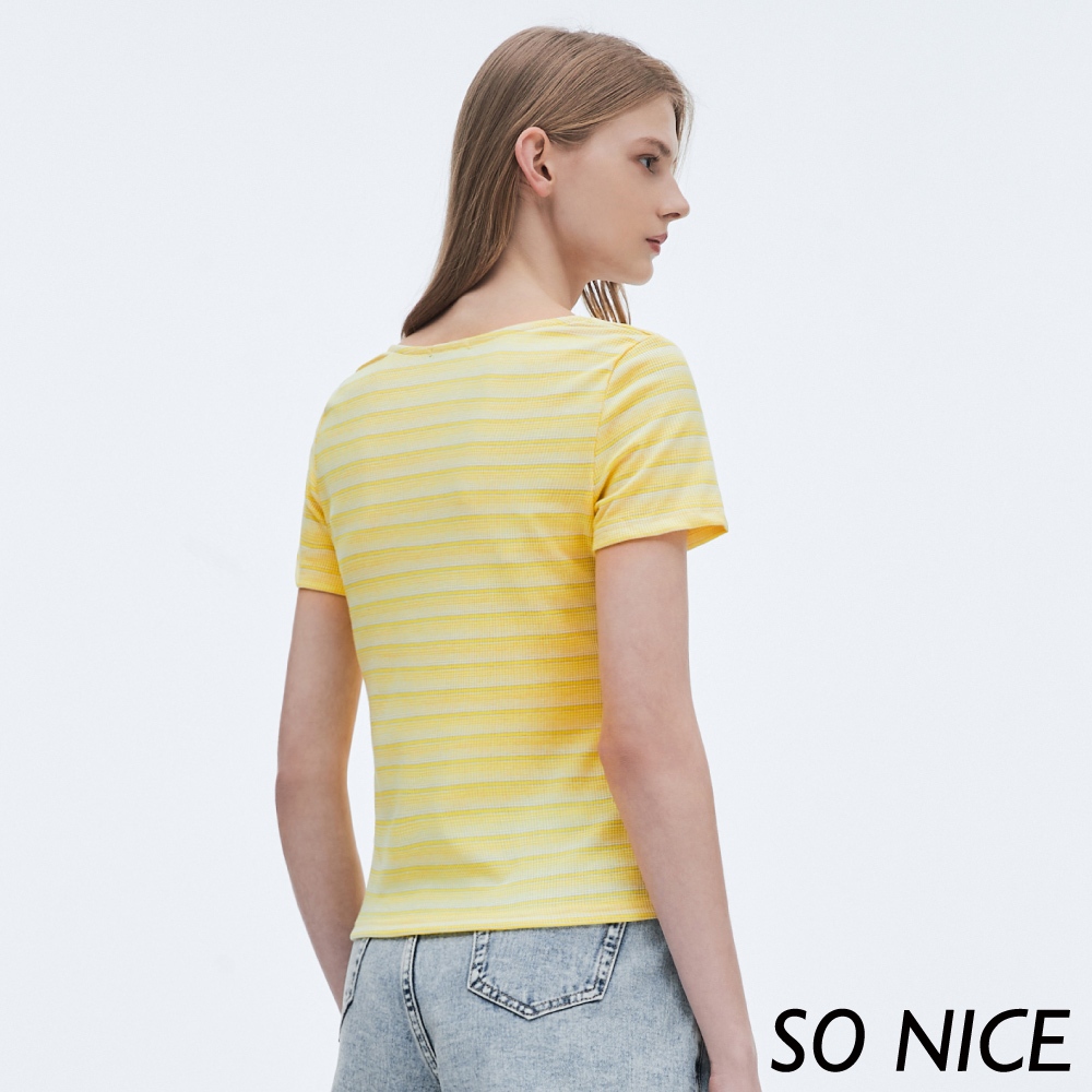 SO NICE【特惠】條紋銀蔥方領上衣|黑條紋/黃條紋|【65331033】黑條紋,34(XS)|黃條紋,36(S)|黃條紋,38(M)|黑條紋,36(S)|黑條紋,38(M)|黑條紋,40(L)|黑條紋,42(XL)|黃條紋,34(XS)|黃條紋,40(L)|黃條紋,42(XL)T-shirtsSO NICE 官方旗艦店