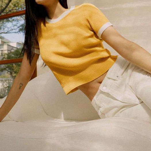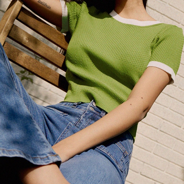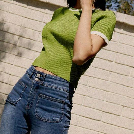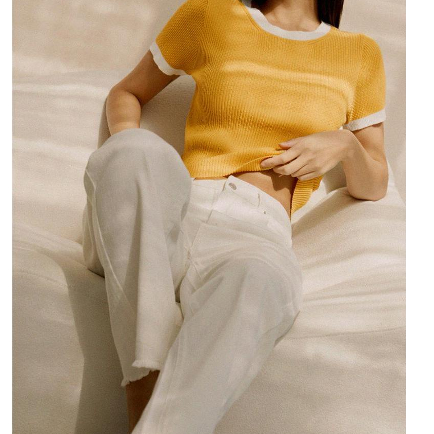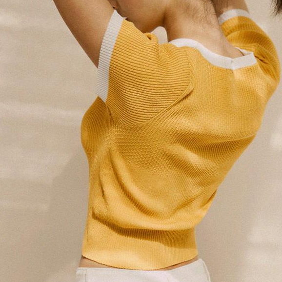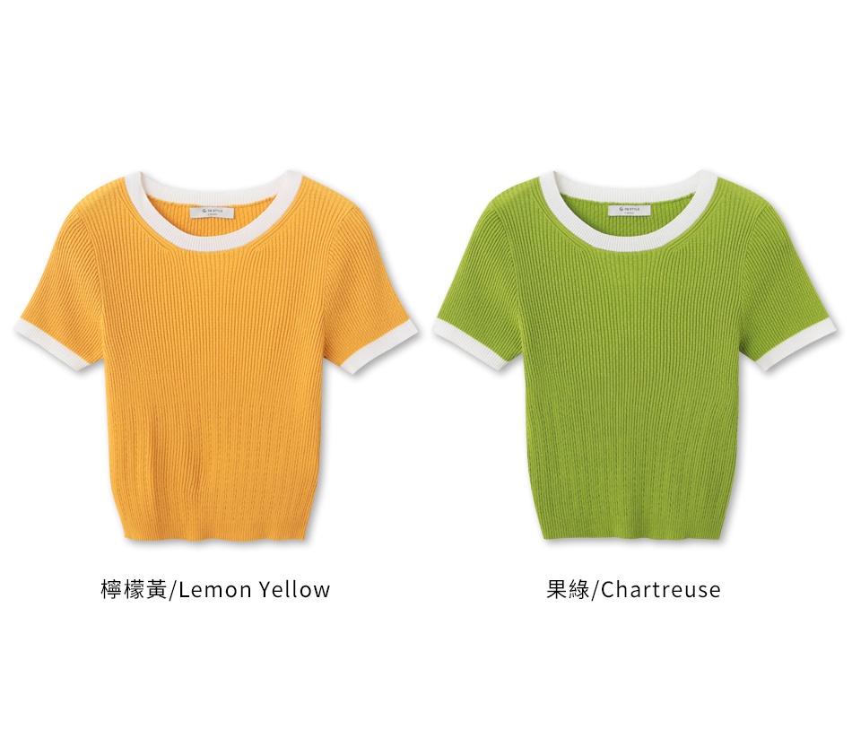 OB嚴選 立體針織撞色滾邊短袖短版上衣 《FA2751》現貨/女裝/時髦檸檬黃,S|檸檬黃,L|檸檬黃,XL|果綠,L|果綠,XL|檸檬黃,M|果綠,S|果綠,MOB嚴選官方旗艦店