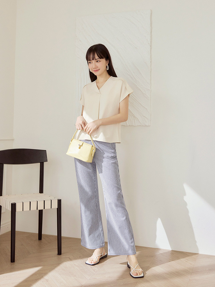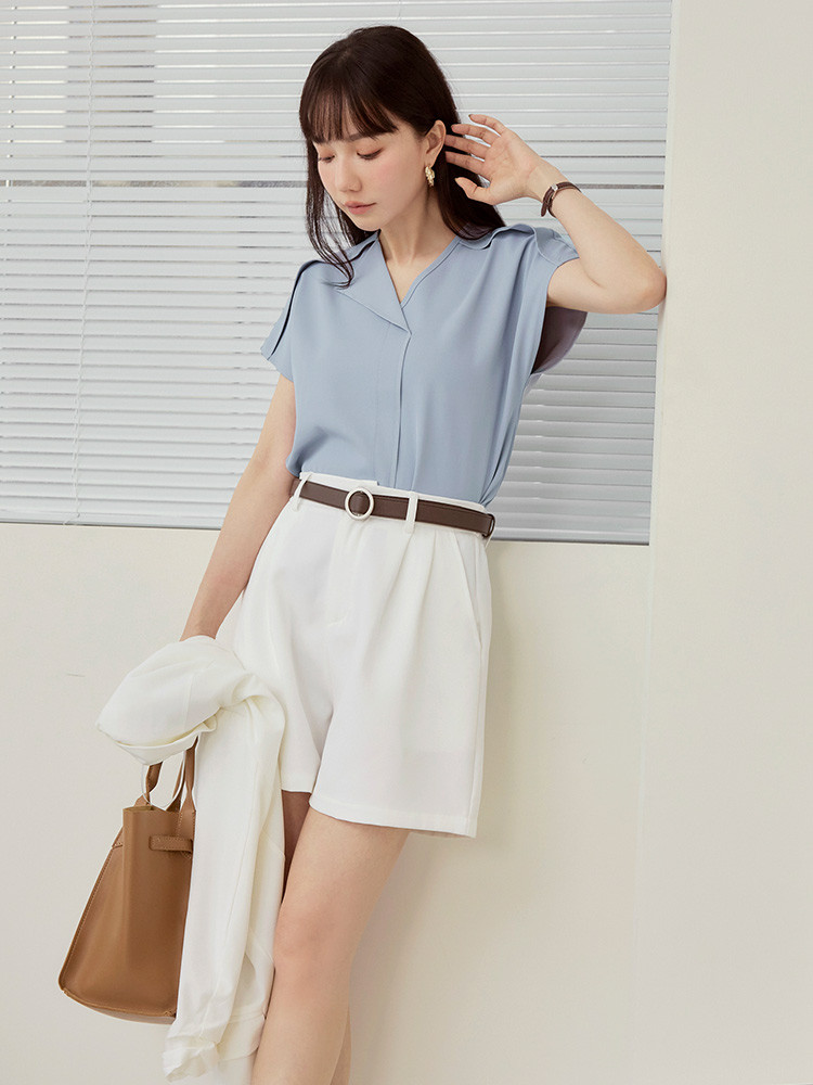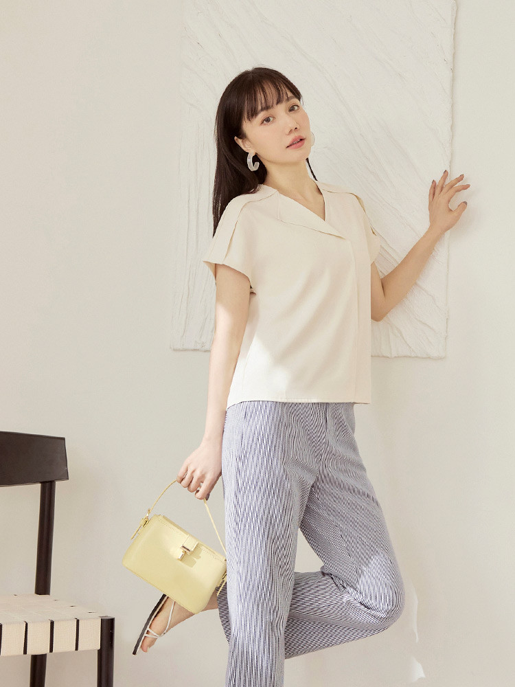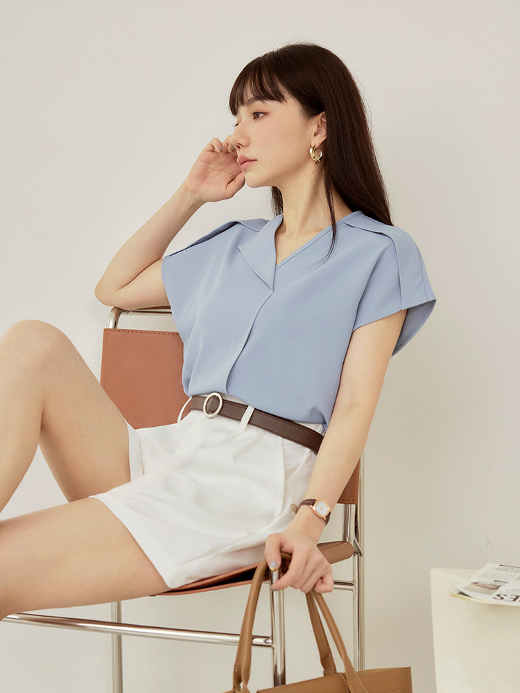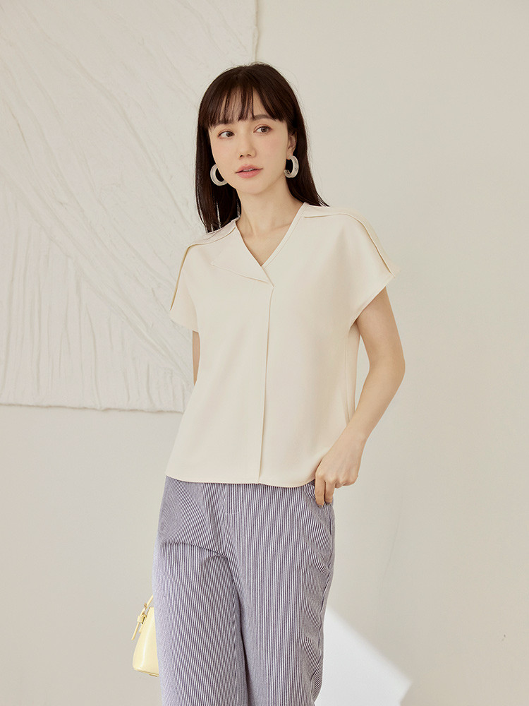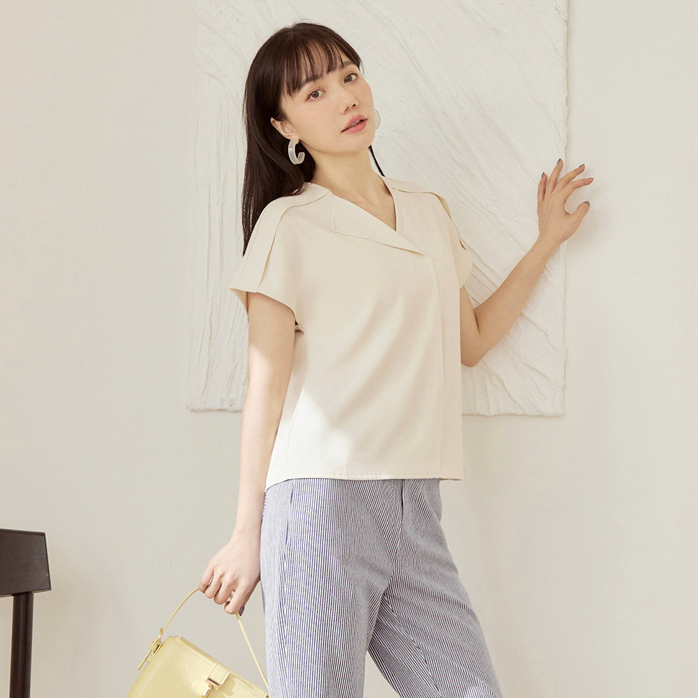 OB嚴選 不易皺特色V領肩片造型上衣 《AB20456》奶油米,S|奶油米,M|奶油米,L|奶油米,XL|奶油米,2L|奶油米,3L|霧藍,S|霧藍,M|霧藍,L|霧藍,XL|霧藍,2L|霧藍,3LT-shirtsOB嚴選官方旗艦店