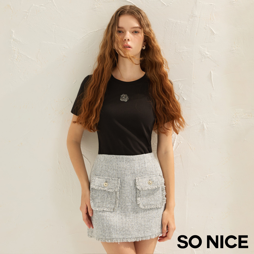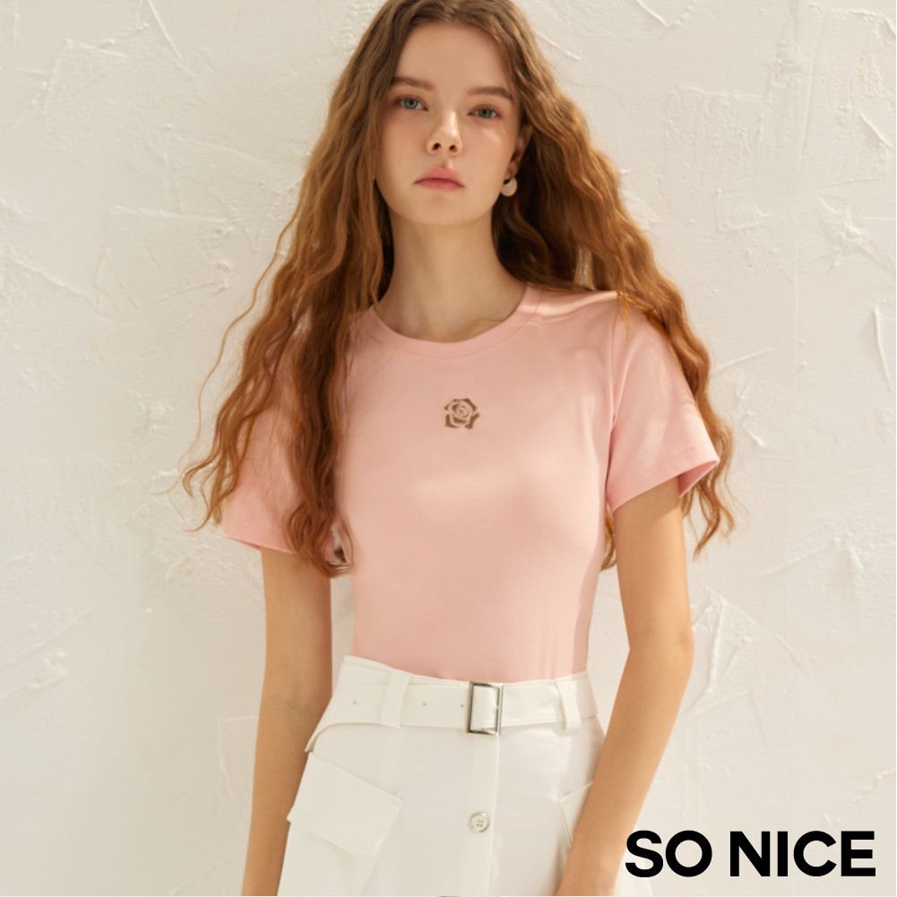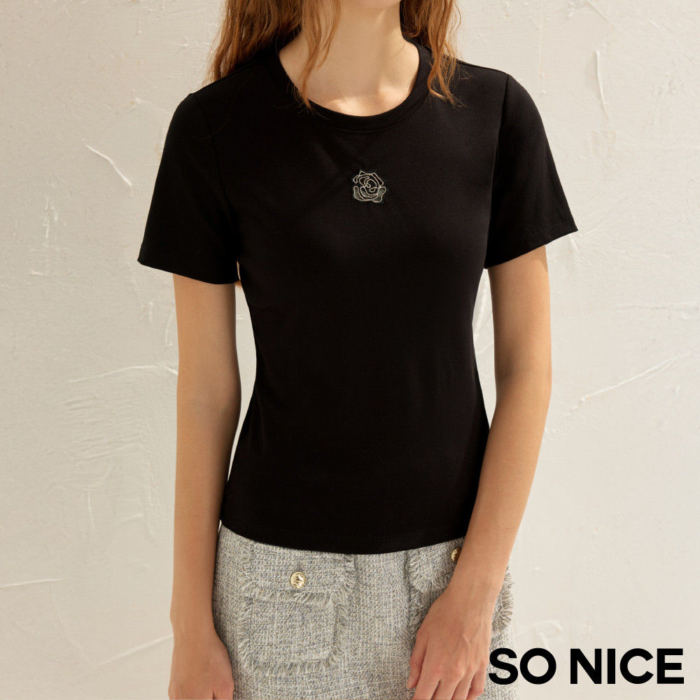 SO NICE小香風山茶花棉質彈力上衣|黑/粉|都會時尚女裝【68541003】粉,36(S)|粉,38(M)|黑,34(XS)|黑,38(M)|黑,42(XL)|粉,34(XS)|黑,36(S)|黑,40(L)|粉,40(L)|粉,42(XL)T-shirtsSO NICE 官方旗艦店