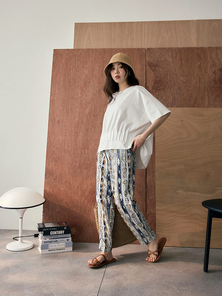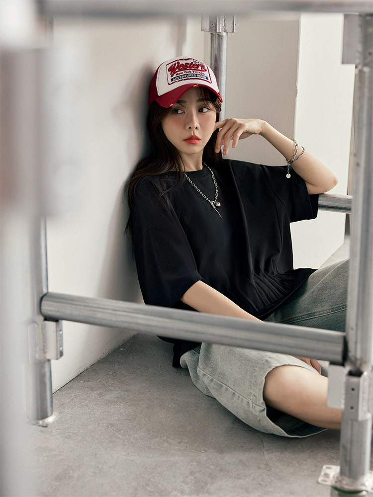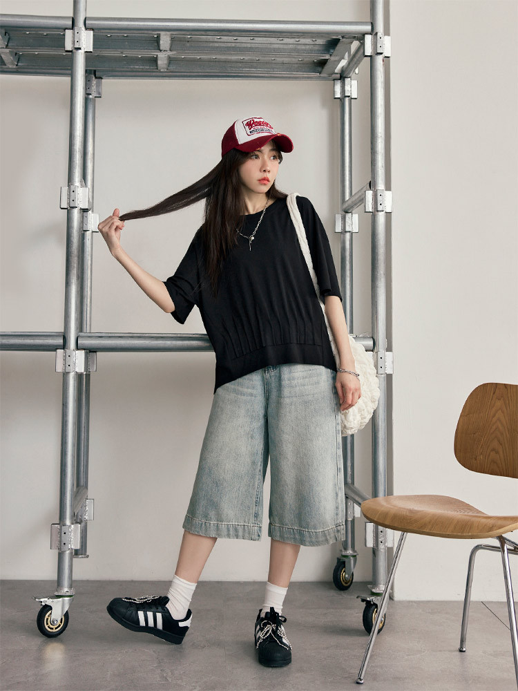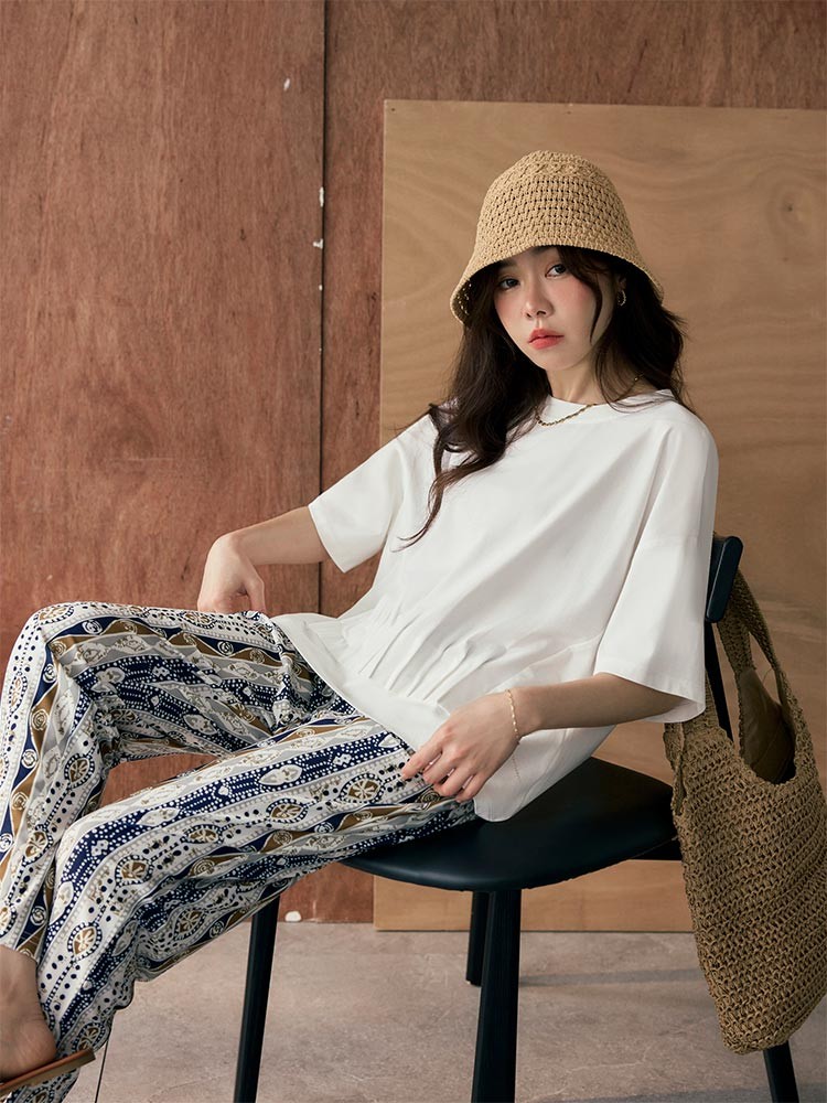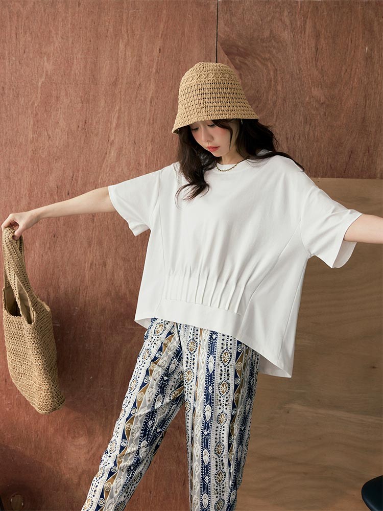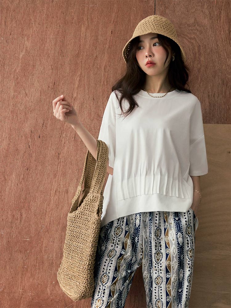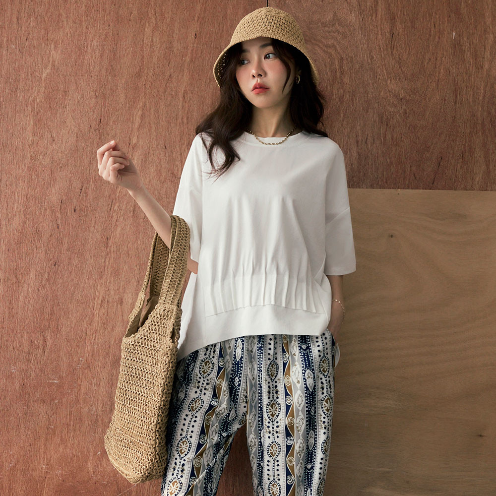 OB嚴選 造型壓褶前短後長寬鬆上衣 《AB20297》白,F|白,3L|黑,F|黑,3LT-shirtsOB嚴選官方旗艦店