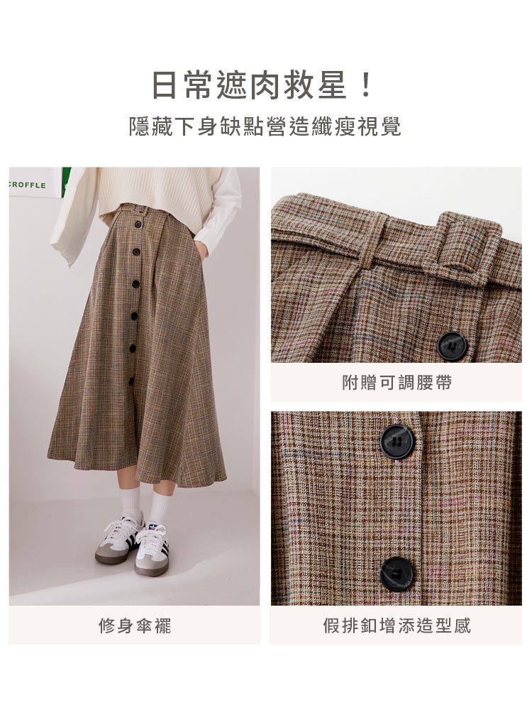 OB嚴選 氣質配色格紋後鬆緊半身裙(附腰帶) 《CA1863》大尺碼/女裝/現貨咖格,S|咖格,M|咖格,L|咖格,XL|咖格,2L|咖格,3L|黑格,S|黑格,M|黑格,L|黑格,XL|黑格,2L|黑格,3LOB嚴選官方旗艦店