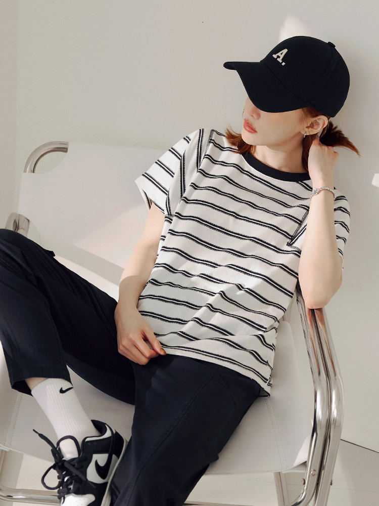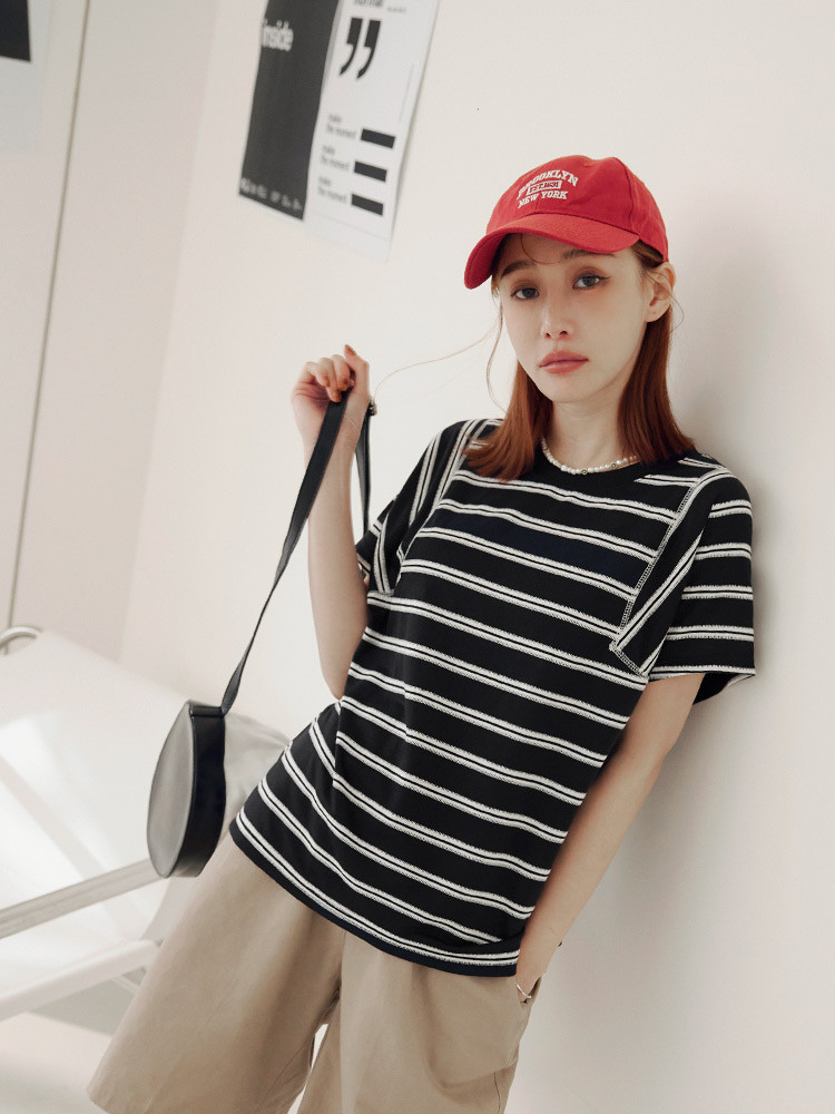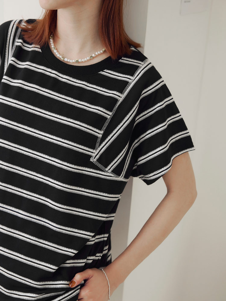 OB嚴選 親膚條紋拼接設計寬鬆上衣 《AB19335》白,2L|白,3L|黑,M|黑,L|黑,XL|黑,2L|黑,3L|草綠,M|草綠,L|草綠,XL|草綠,2L|草綠,3L|白,M|白,L|白,XLT-shirtsOB嚴選官方旗艦店