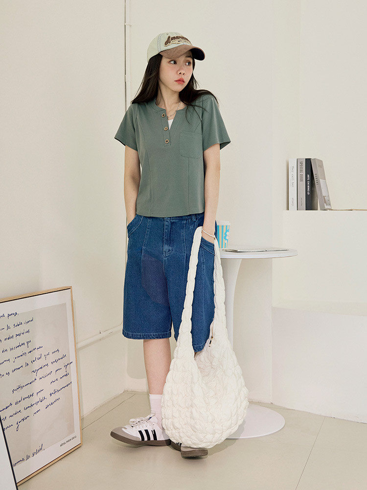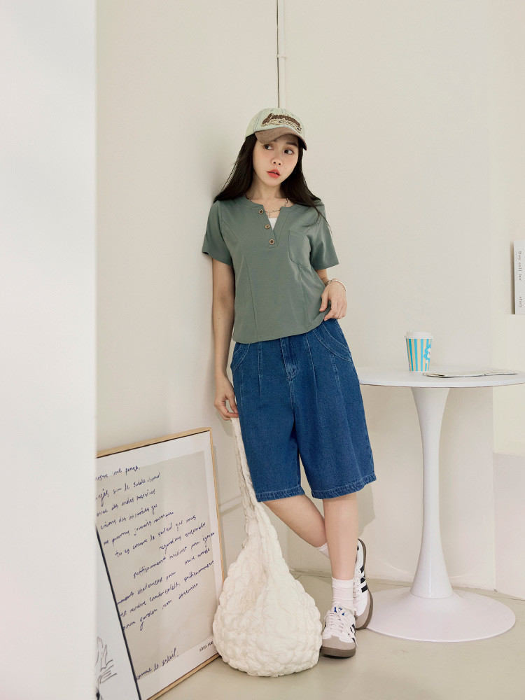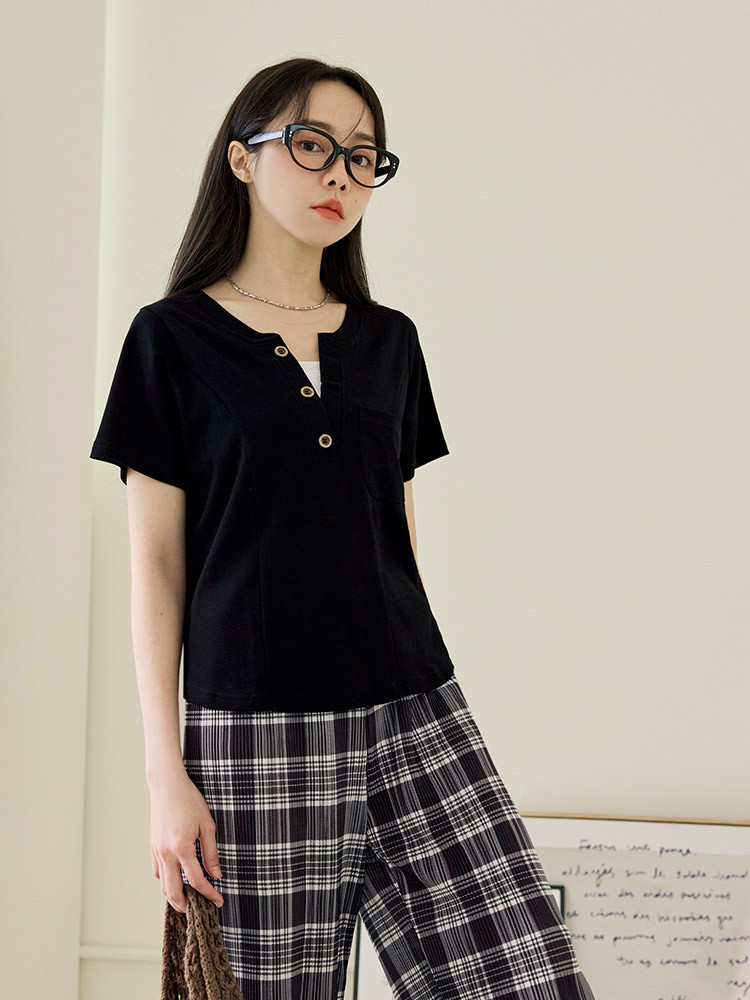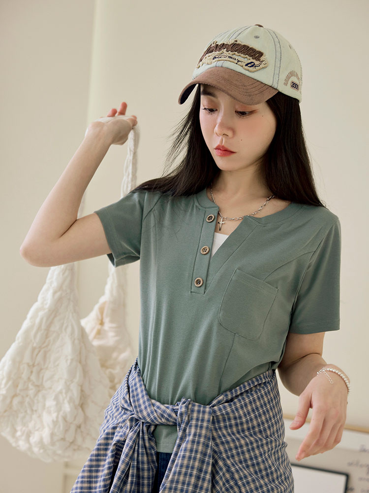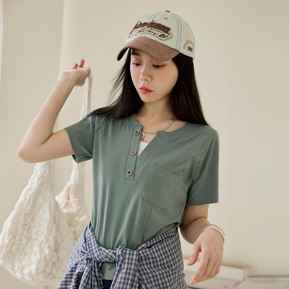 OB嚴選 排釦小V領公主線剪接短袖上衣 《AB20393》灰綠,S|灰綠,M|灰綠,L|灰綠,XL|灰綠,2L|灰綠,3L|灰綠,4L|黑,S|黑,M|黑,L|黑,XL|黑,2L|黑,3L|黑,4LT-shirtsOB嚴選官方旗艦店