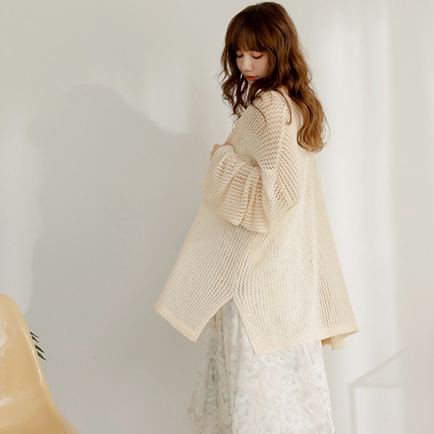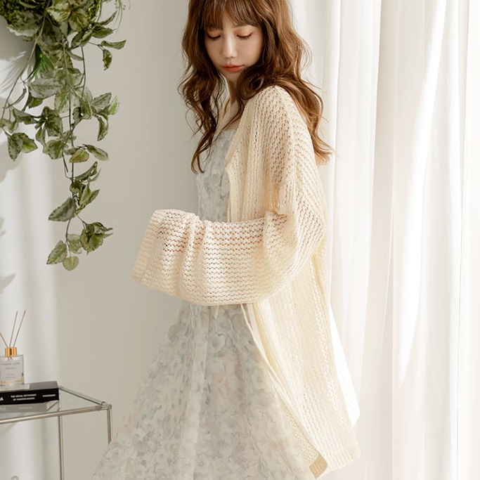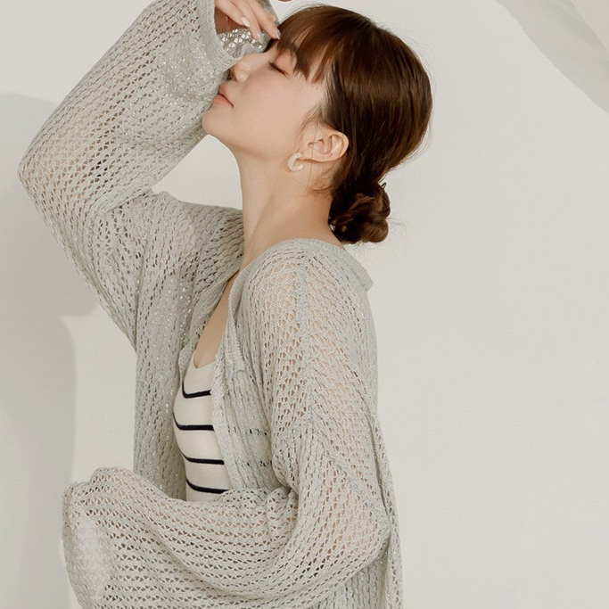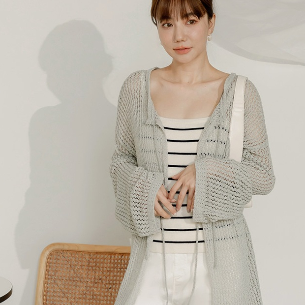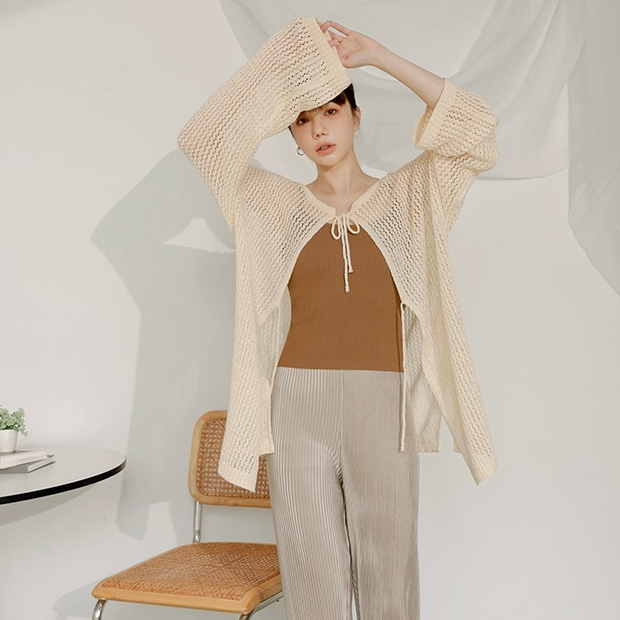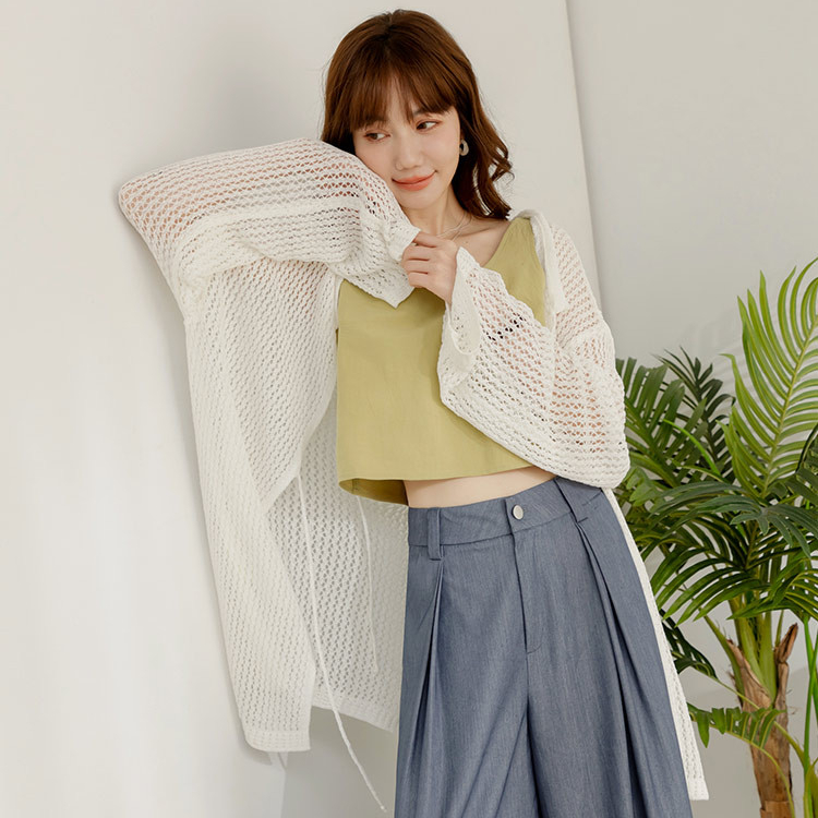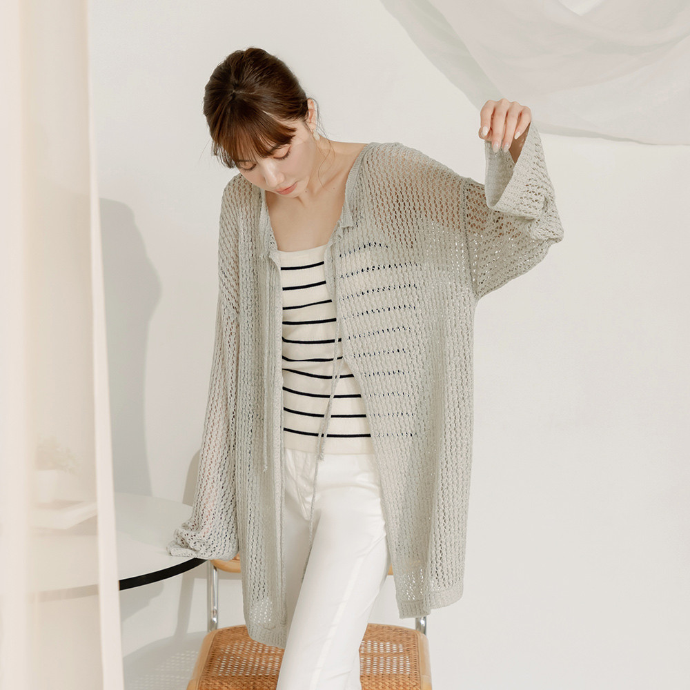 OB嚴選 細緻洞洞針織綁帶上衣外罩 《FA3110》大尺碼/女裝/現貨白,2L|灰,2L|杏,2L|黑,2LOB嚴選官方旗艦店