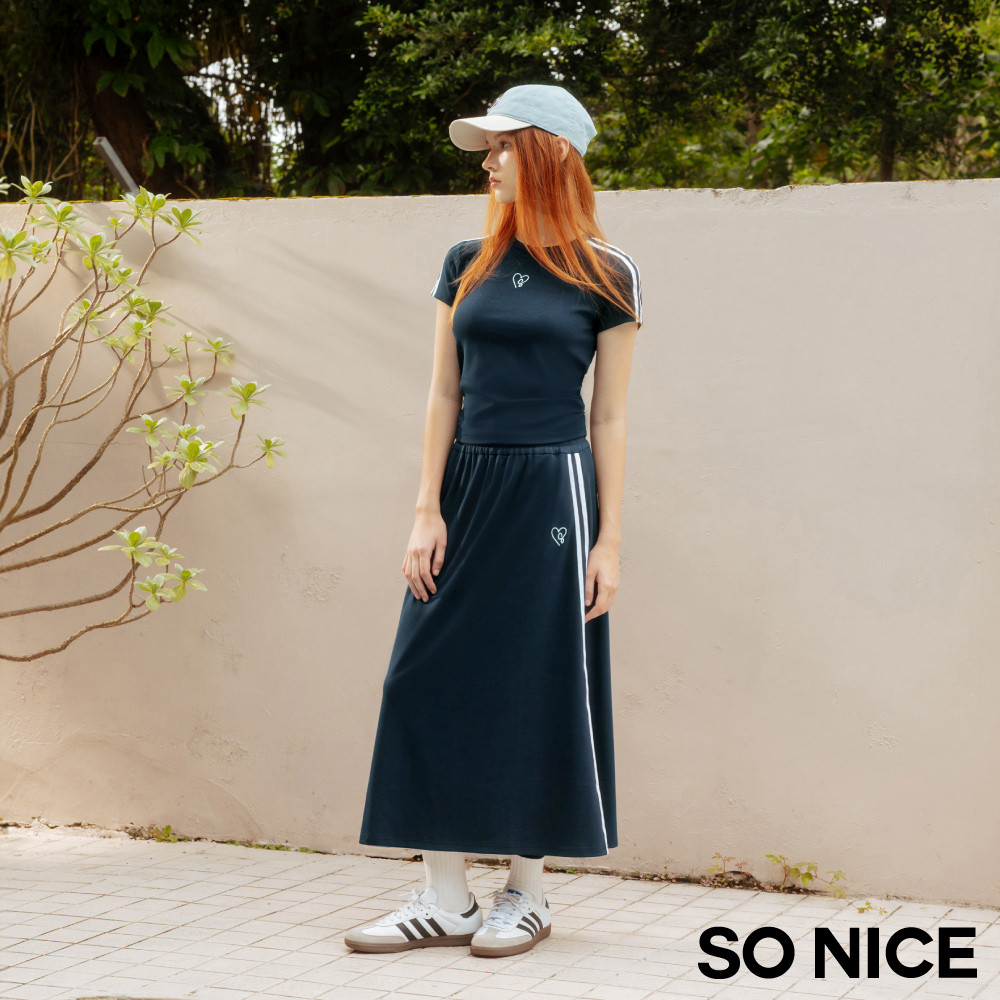 SO NICE【美白冰紗系列】撞色織帶愛心腰間抽皺修身抗曬涼感上衣|都會時尚女裝【65531010】深藍,34(XS)|深藍,36(S)|深藍,38(M)|深藍,40(L)|深藍,42(XL)T-shirtsSO NICE 官方旗艦店
