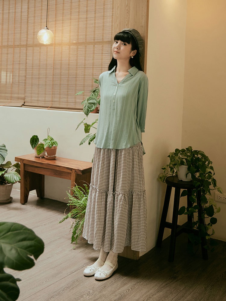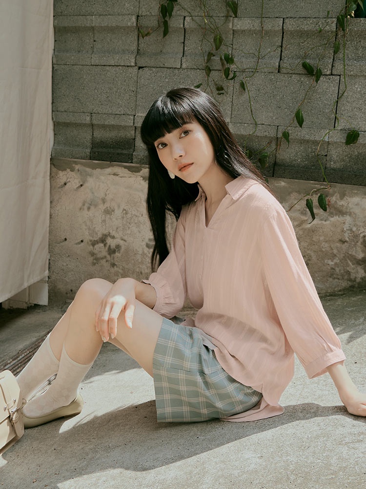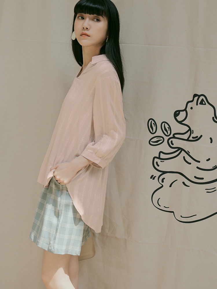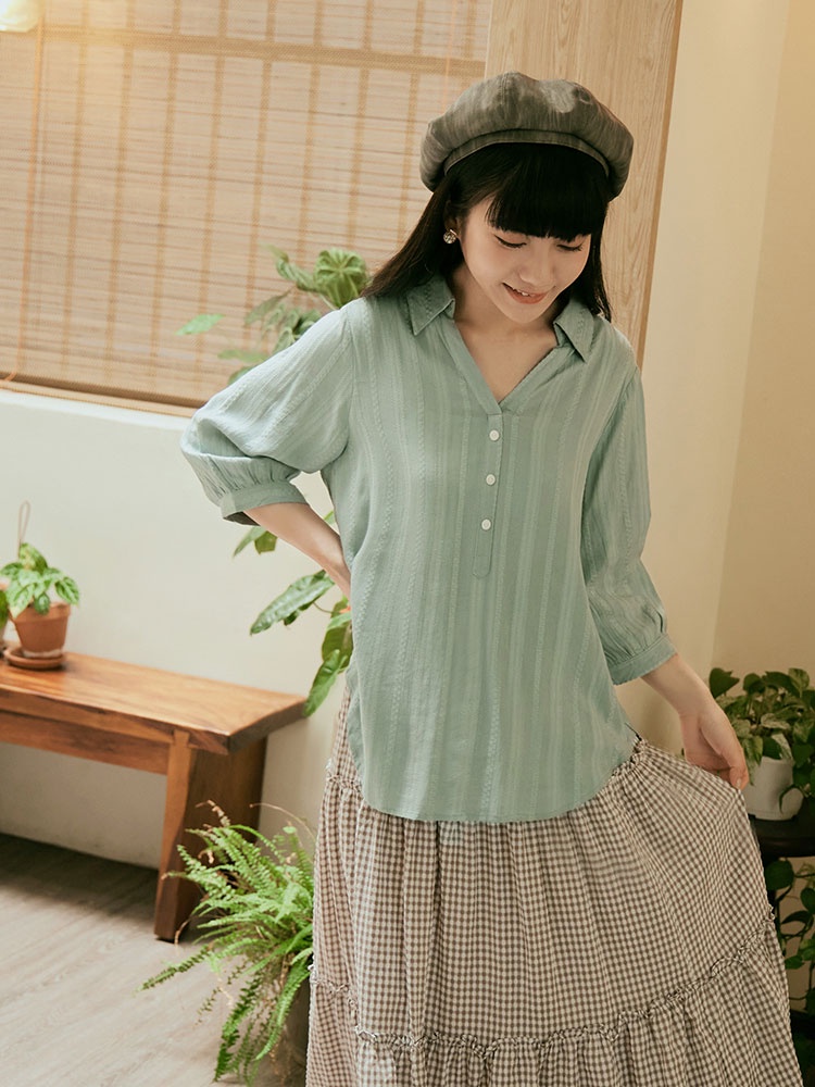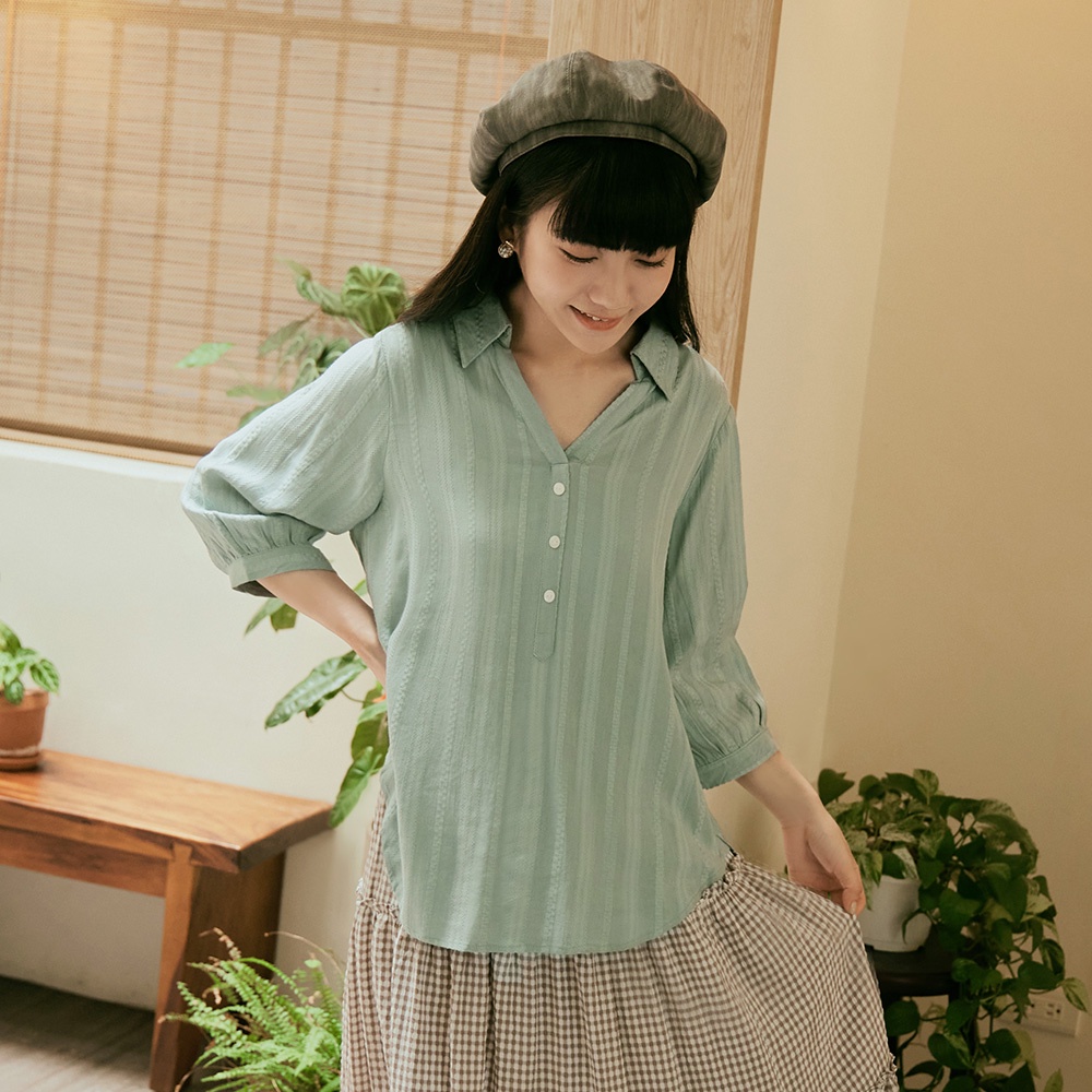 OB嚴選 寬鬆立體織紋緹花開襟V領七分袖襯衫上衣 《AB18994》日系/大尺碼/現貨/女裝裸粉,M|湖水綠,L|裸粉,L|裸粉,XL|裸粉,2L|裸粉,3L|湖水綠,M|湖水綠,XL|湖水綠,2L|湖水綠,3LShirts & BlousesOB嚴選官方旗艦店