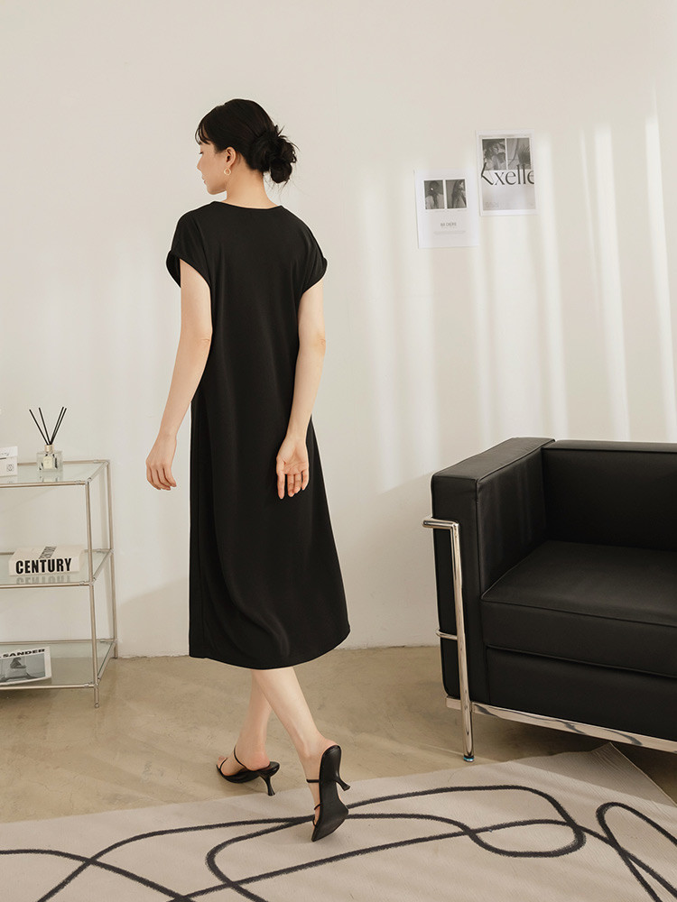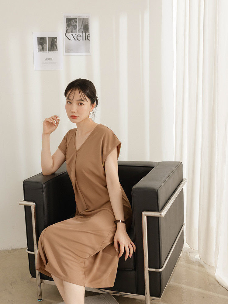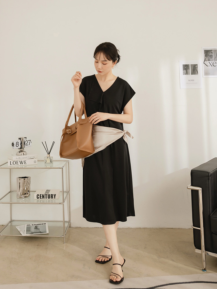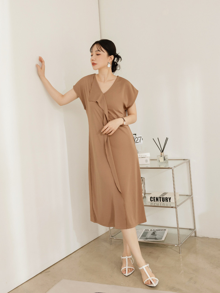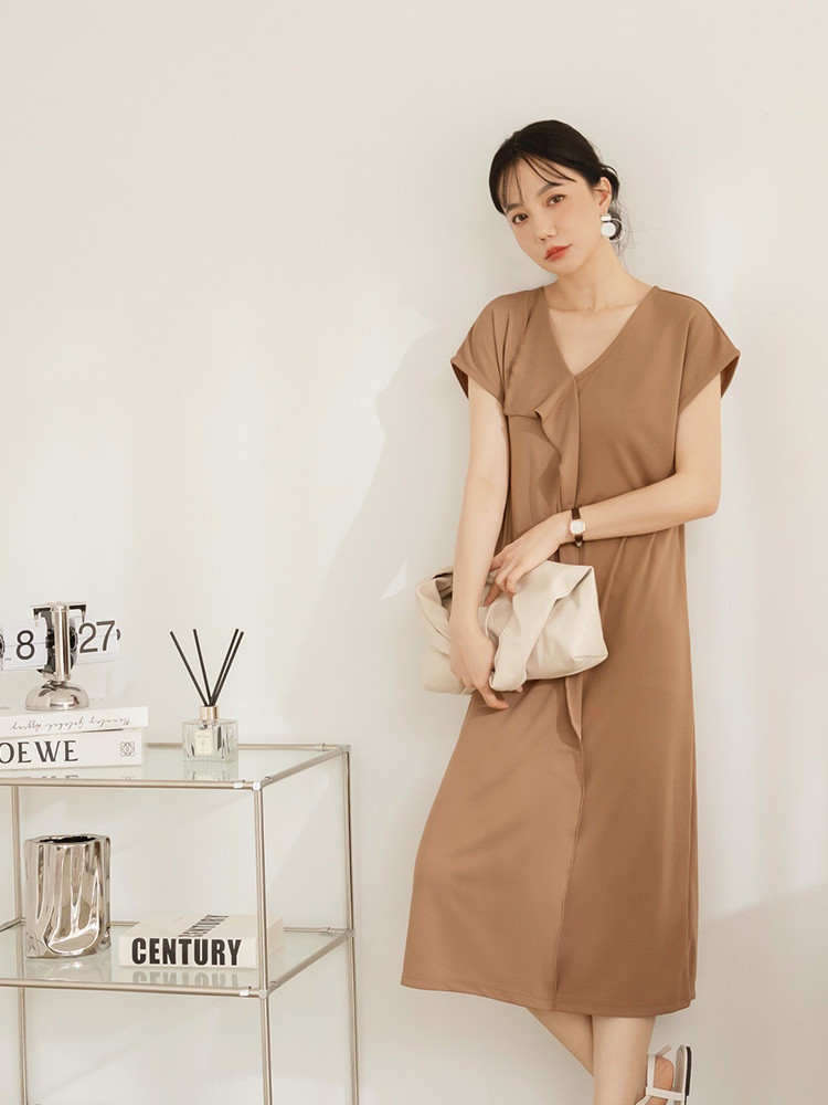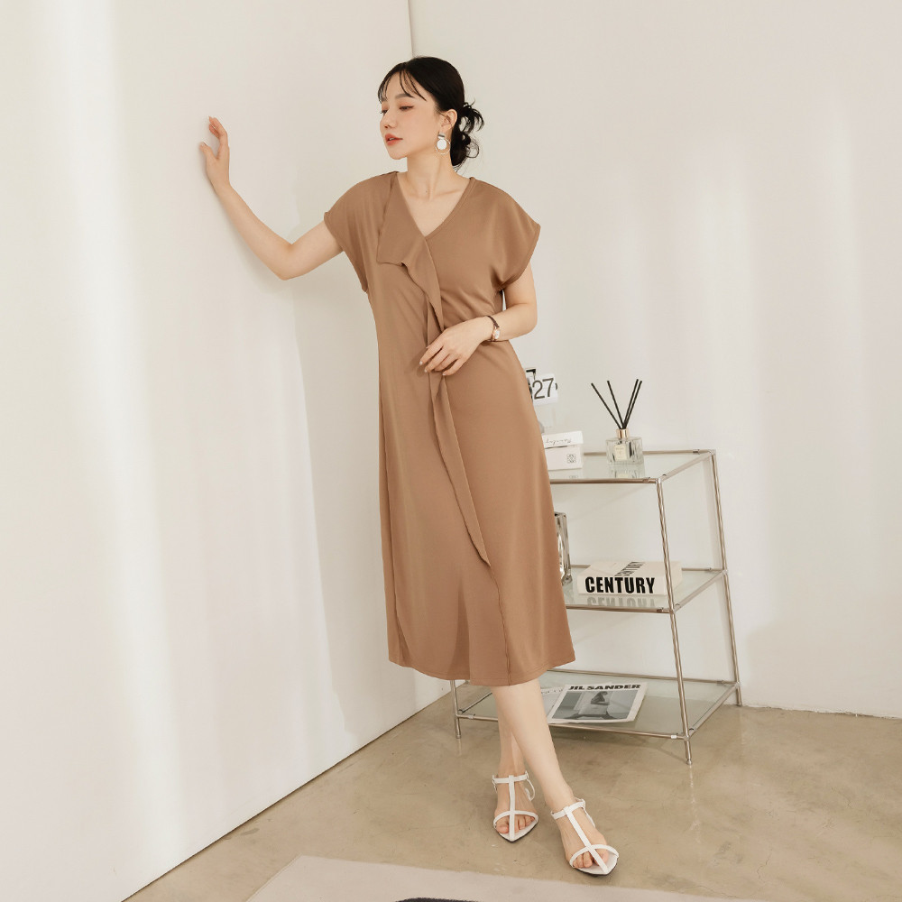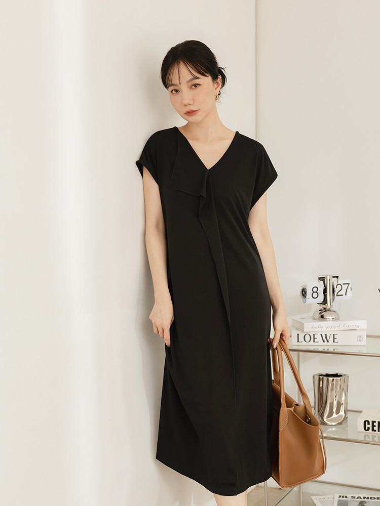 OB嚴選 不易皺V領荷葉片造型洋裝 《DA10527》黑,M|黑,L|黑,XL|黑,2L|黑,3L|咖啡,M|咖啡,L|咖啡,XL|咖啡,2L|咖啡,3LOB嚴選官方旗艦店
