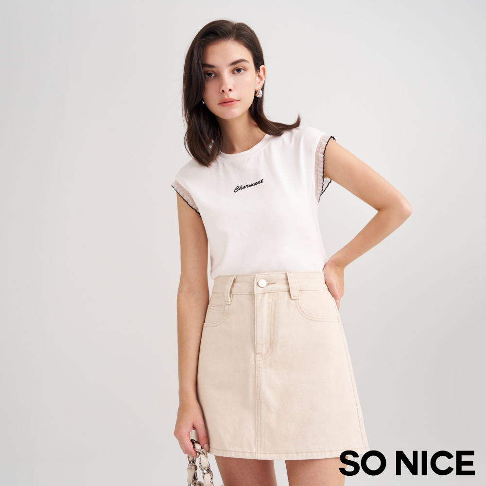 SO NICE【特惠】牛仔短裙 短裙 a字裙 杏色 [簡約A字棉質牛仔短裙]【29443003】杏,42(XL)|杏,34(XS)|杏,36(S)|杏,38(M)|杏,40(L)SO NICE 官方旗艦店