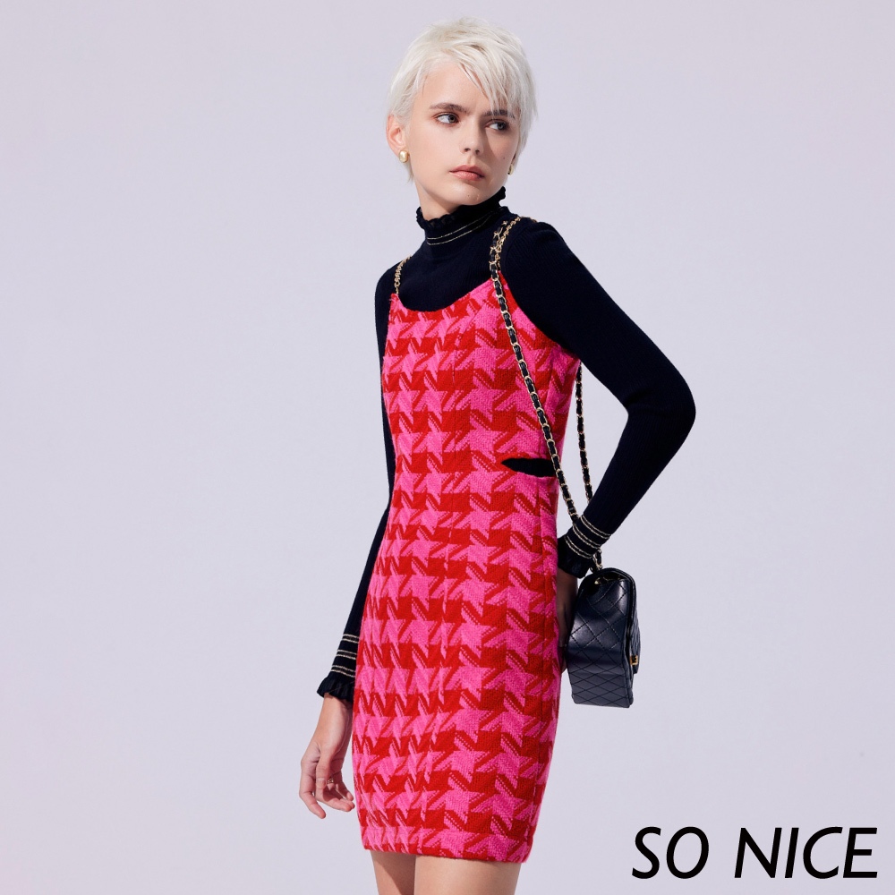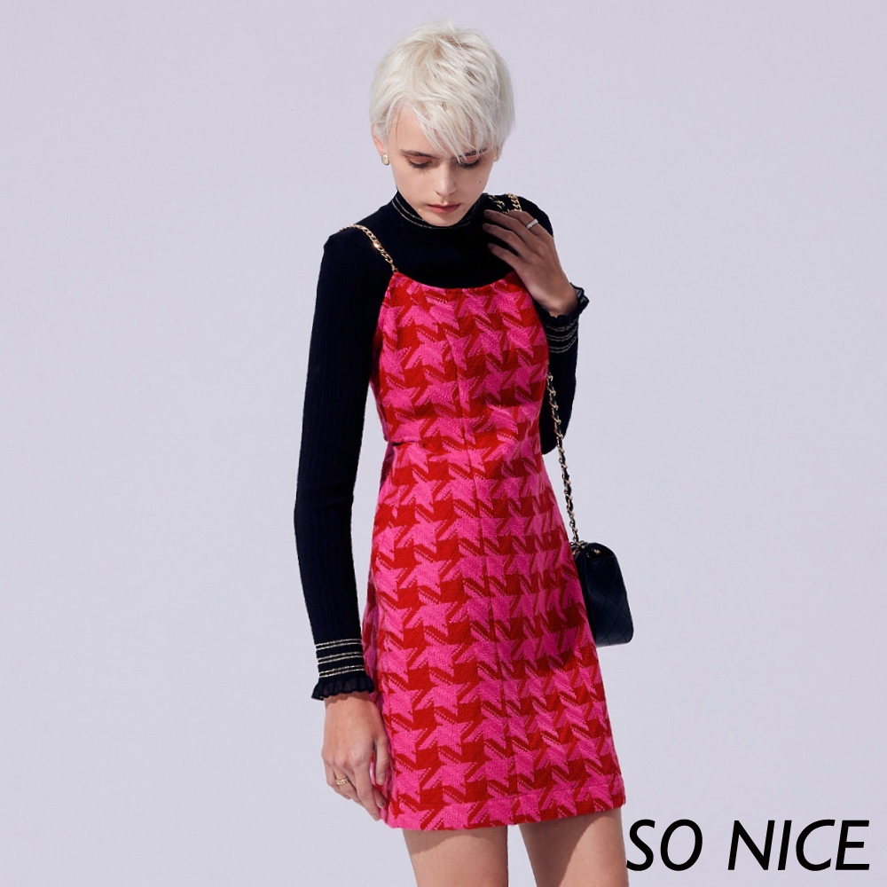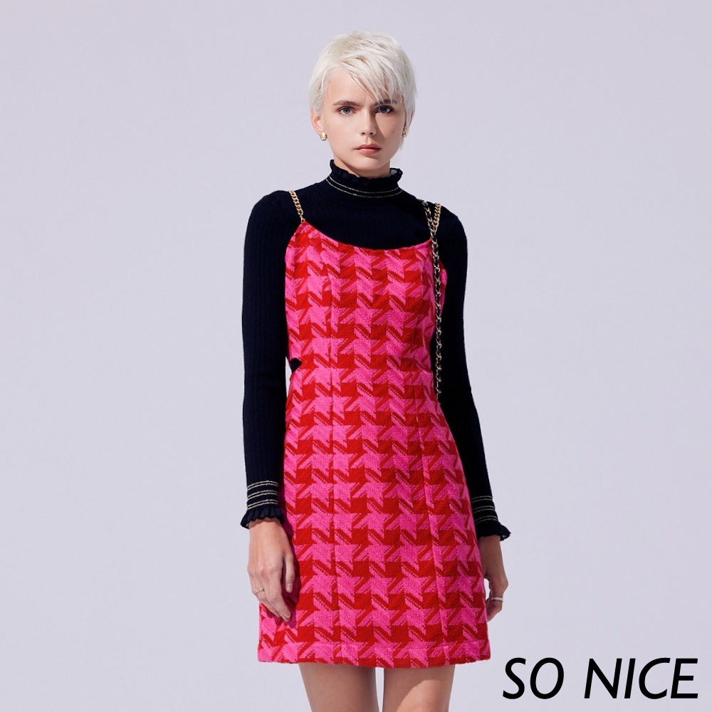SO NICE【特惠】桃紅千鳥格毛呢細肩帶洋裝|都會時尚女裝 【75344036】桃紅,36(S)|桃紅,38(M)|桃紅,42(XL)|桃紅,34(XS)Maternity DressesSO NICE 官方旗艦店